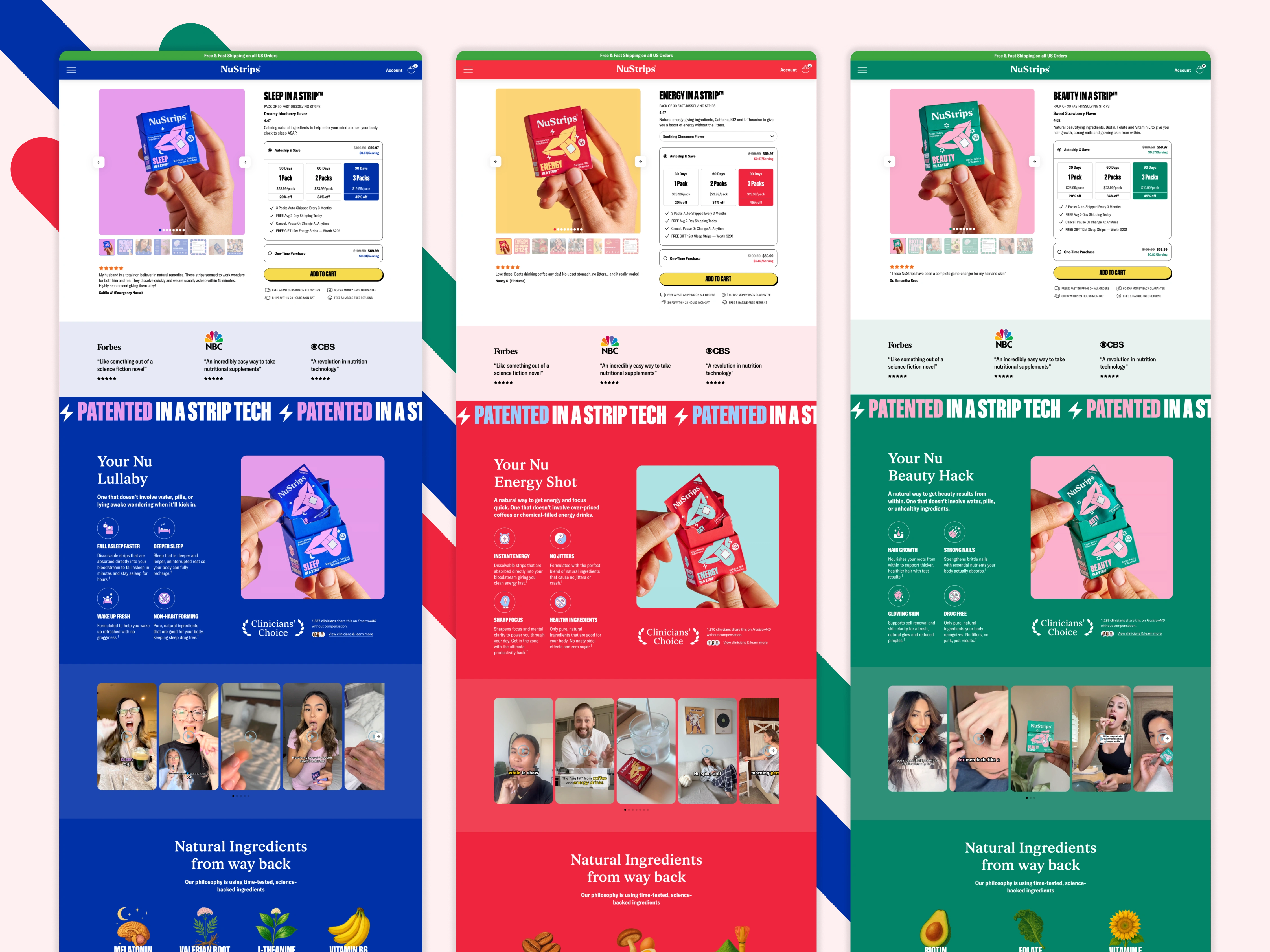 Developed NuStrips homepage and product landing pages in Replo, focused on high-conversion design, performance, and brand storytelling.