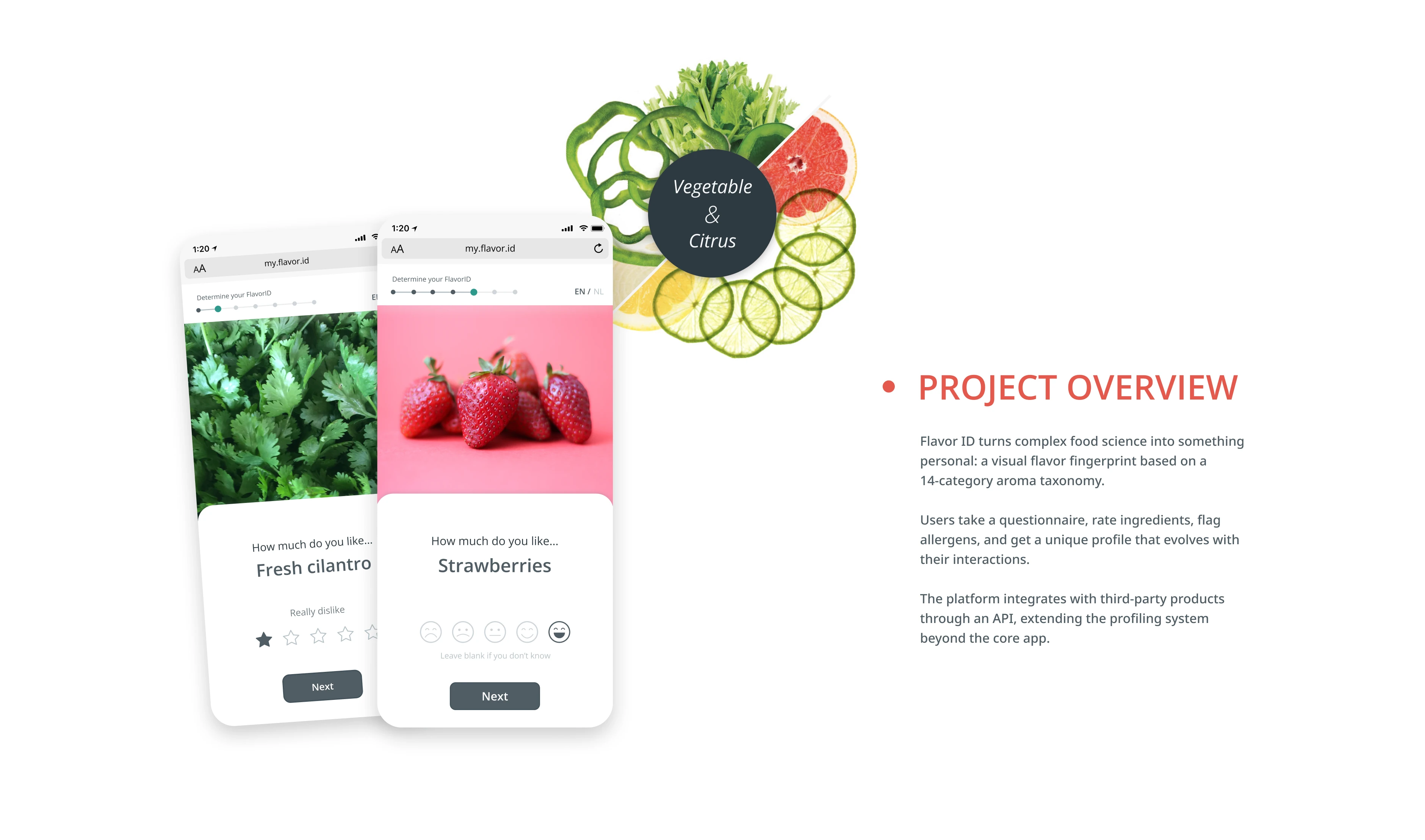 Complex flavor science into an intuitive consumer product. Designed the full experience from onboarding through personalized flavor profile visualization.