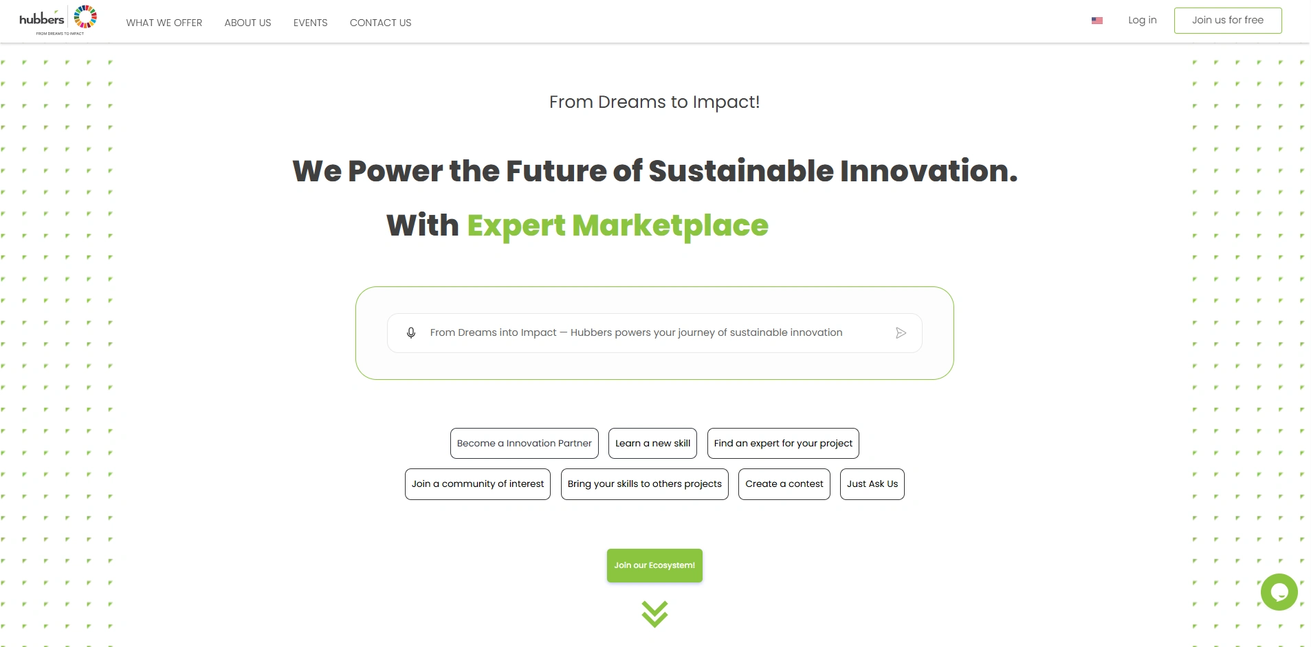 Hubbers is a global entrepreneurial community focused on building sustainable and impactful products. The platform connects experts, producers, and investors, enabling them to collaborate through activities such as competitions, lectures, courses, and events. Members can network, share knowledge, and create new products or services within a dynamic ecosystem.