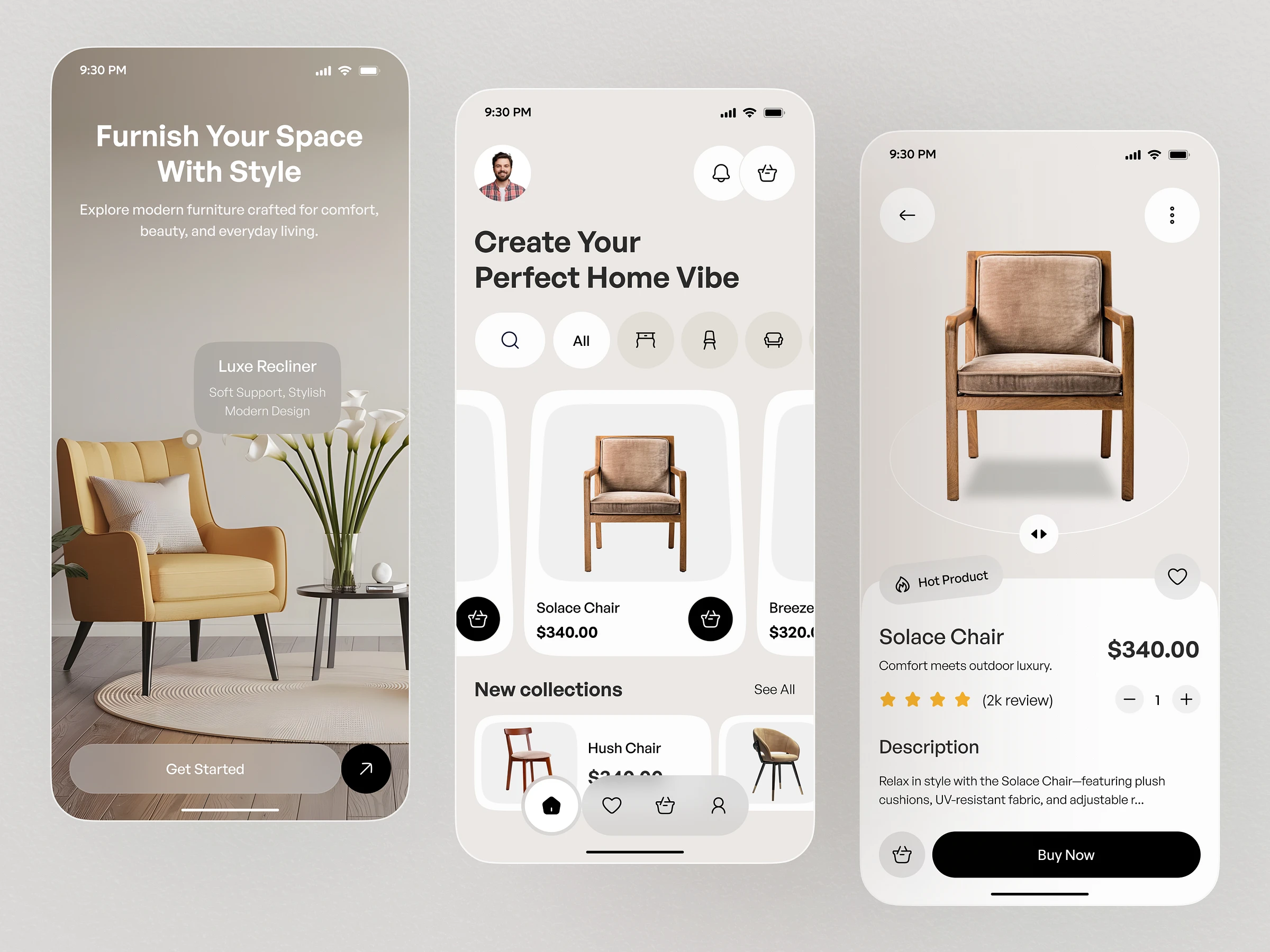 Explore a premium Furniture App UI designed to transform the way users browse, personalize, and shop modern home furnishings. This concept features a clean layout, smooth navigation, AR-powered previews, and smart filtersâenhancing the mobile shopping experience. Perfect for home dĂ©cor lovers, interior designers, and online furniture retailers looking for intuitive and elegant digital solutions.