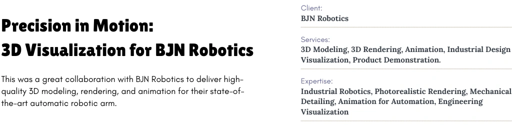 This advanced industrial robot combines precision engineering with innovative technology to streamline automation processes. Abir meticulously designed the 3D model to reflect the technical details and functional features of the robotic arm, ensuring every element was visually accurate and true to the brand’s vision. The rendering showcased a vibrant and professional environment that highlighted the arm’s modern design and engineering excellence. Additionally, an immersive animation was created to demonstrate the robotic arm’s capabilities, motion range, and operational efficiency.