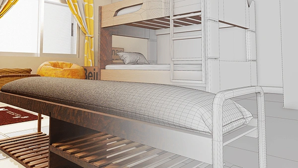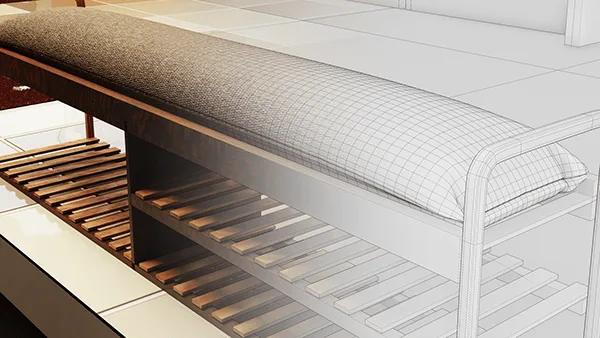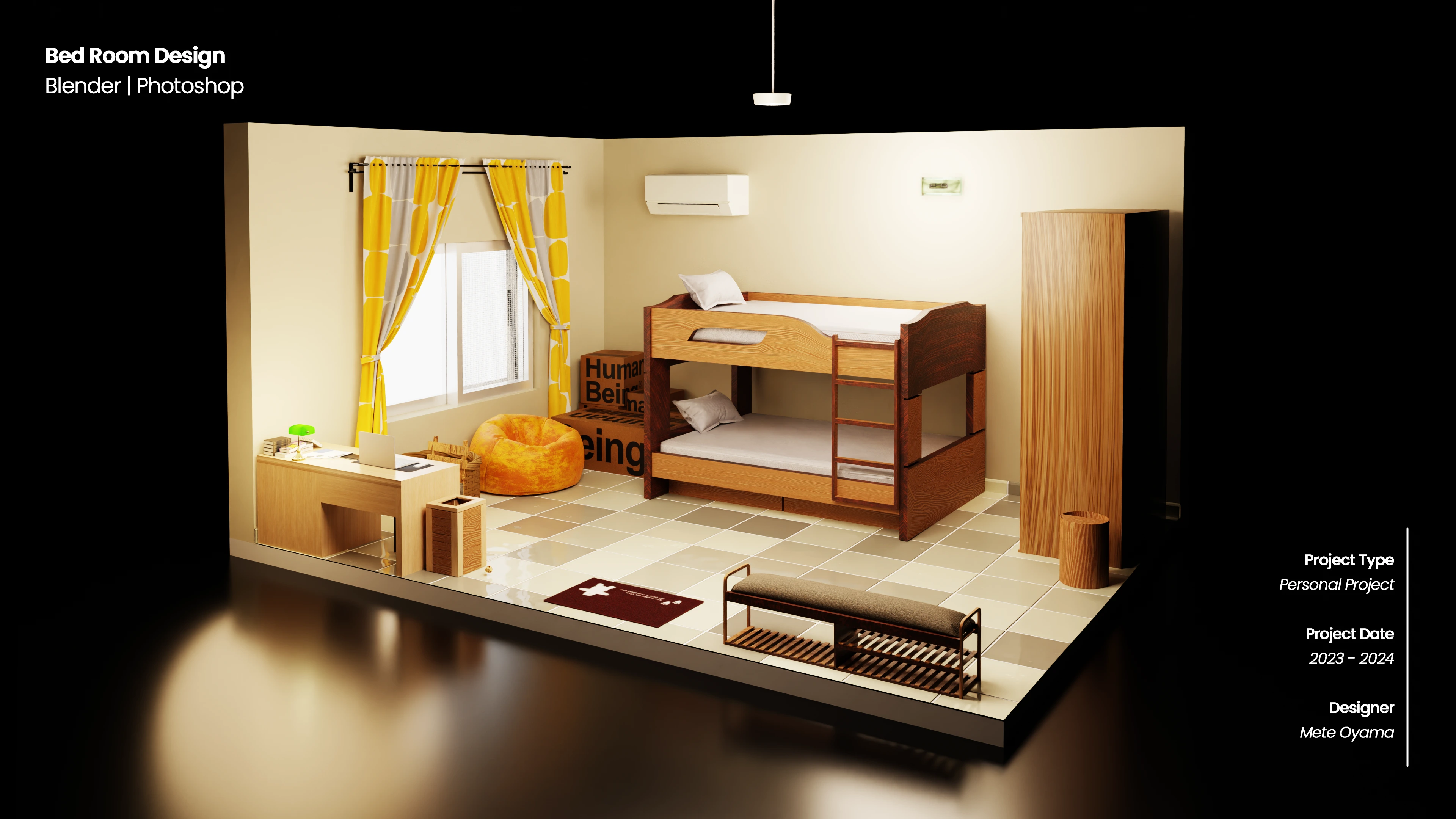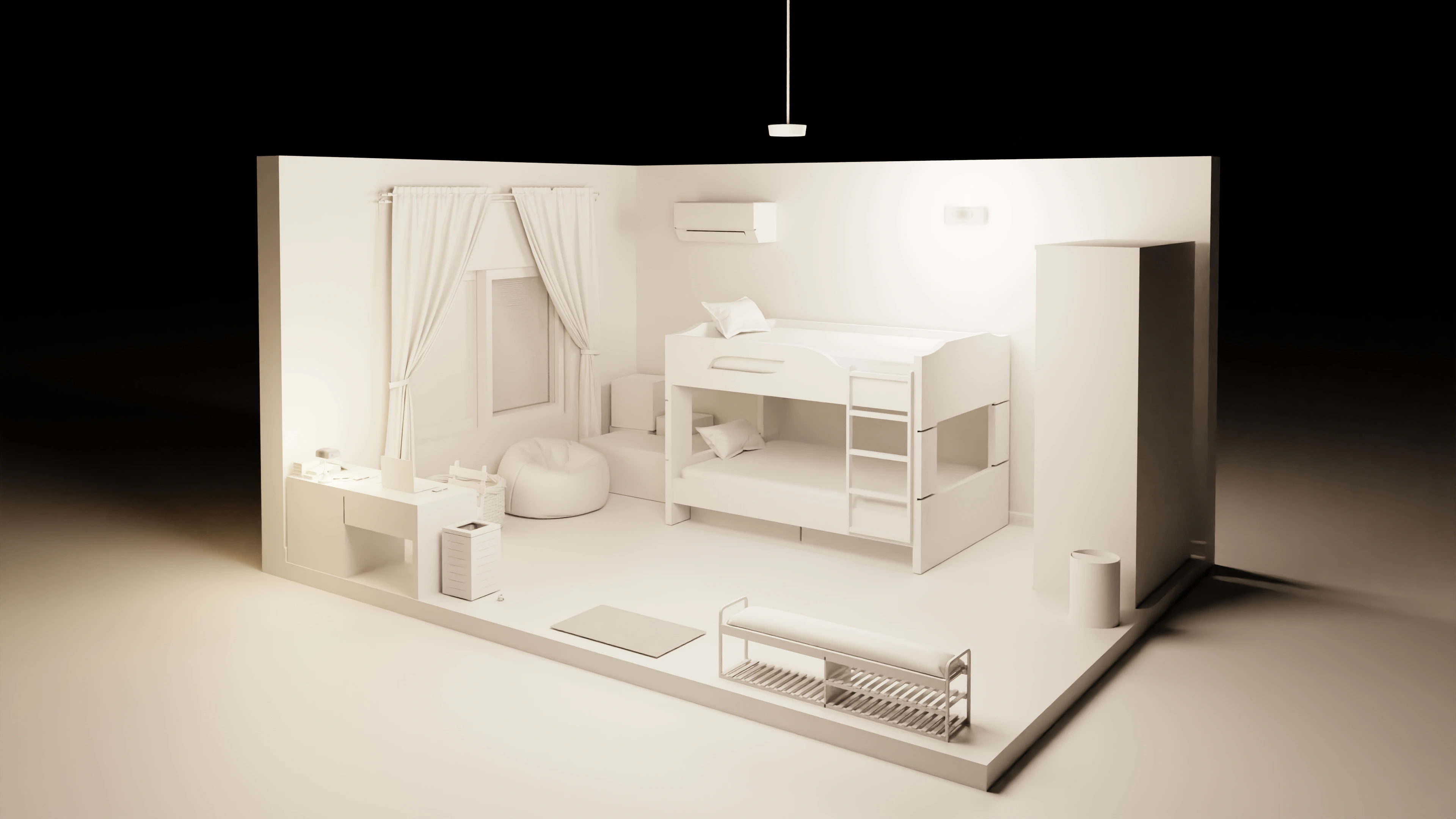 Modeled from scratch in Blender, this isometric bedroom blends minimalism and warmth.