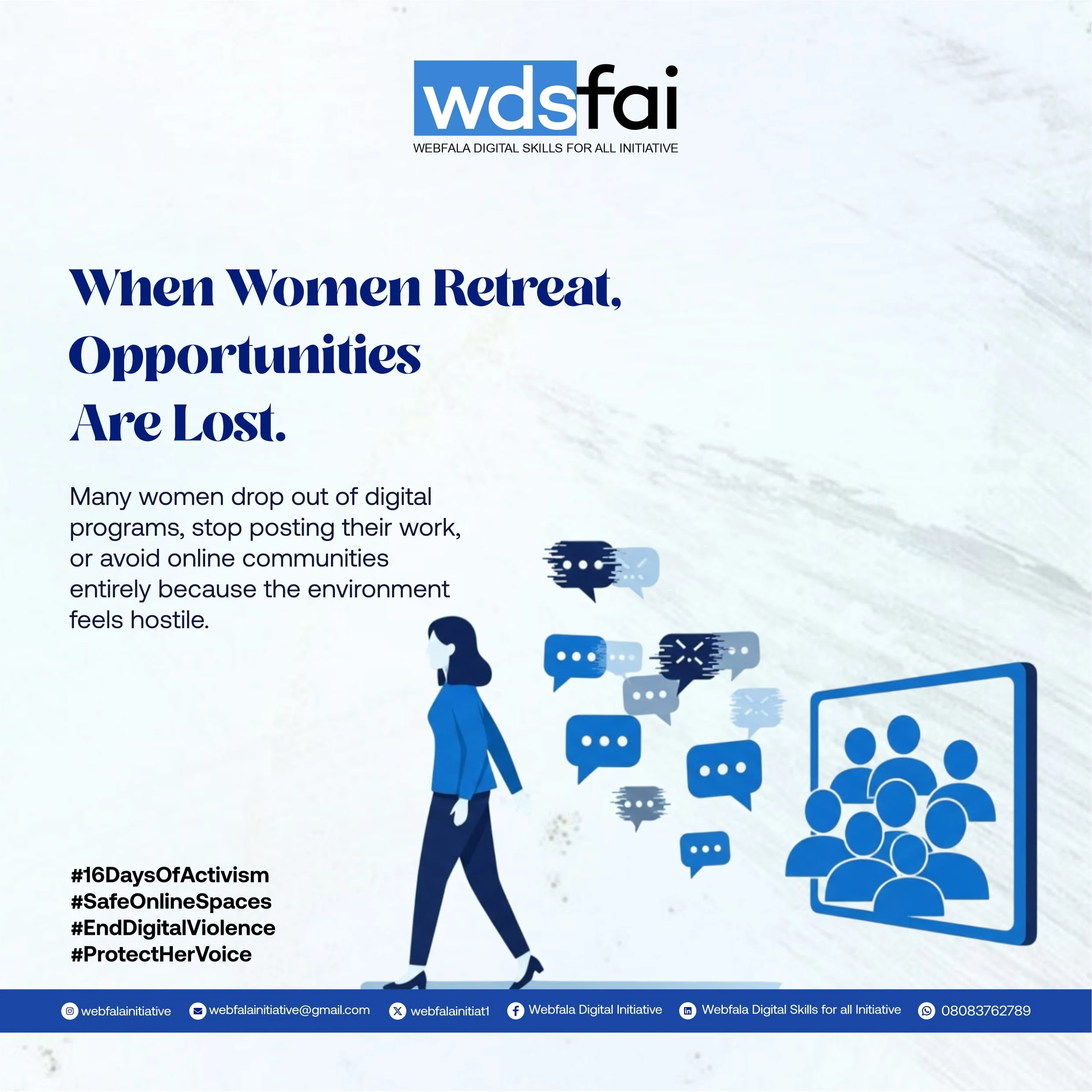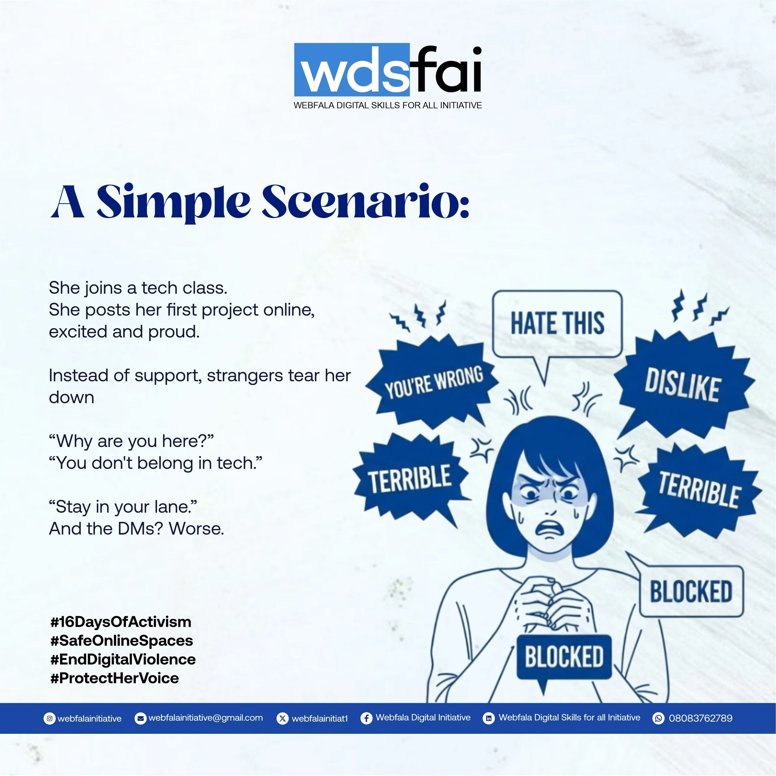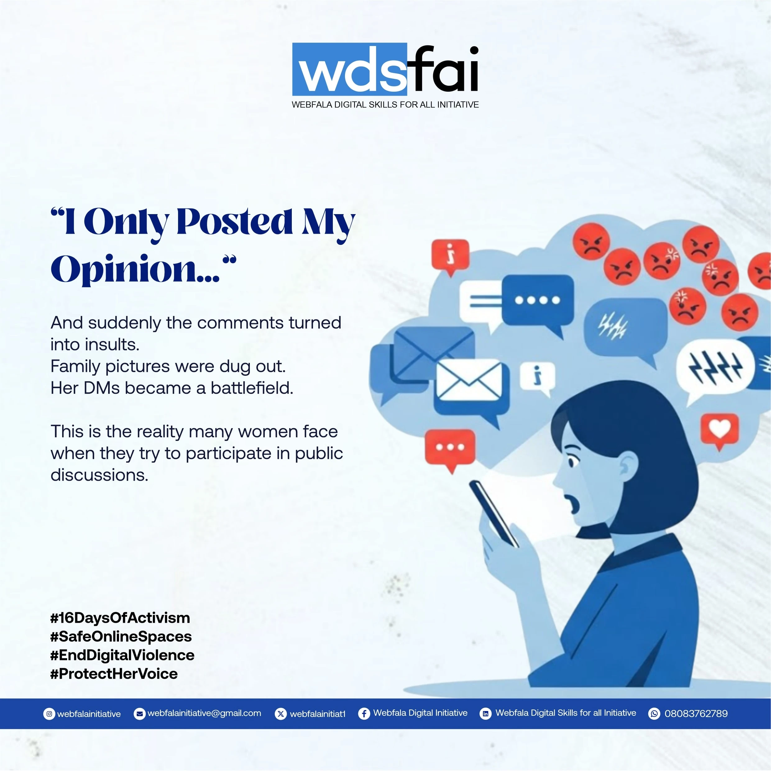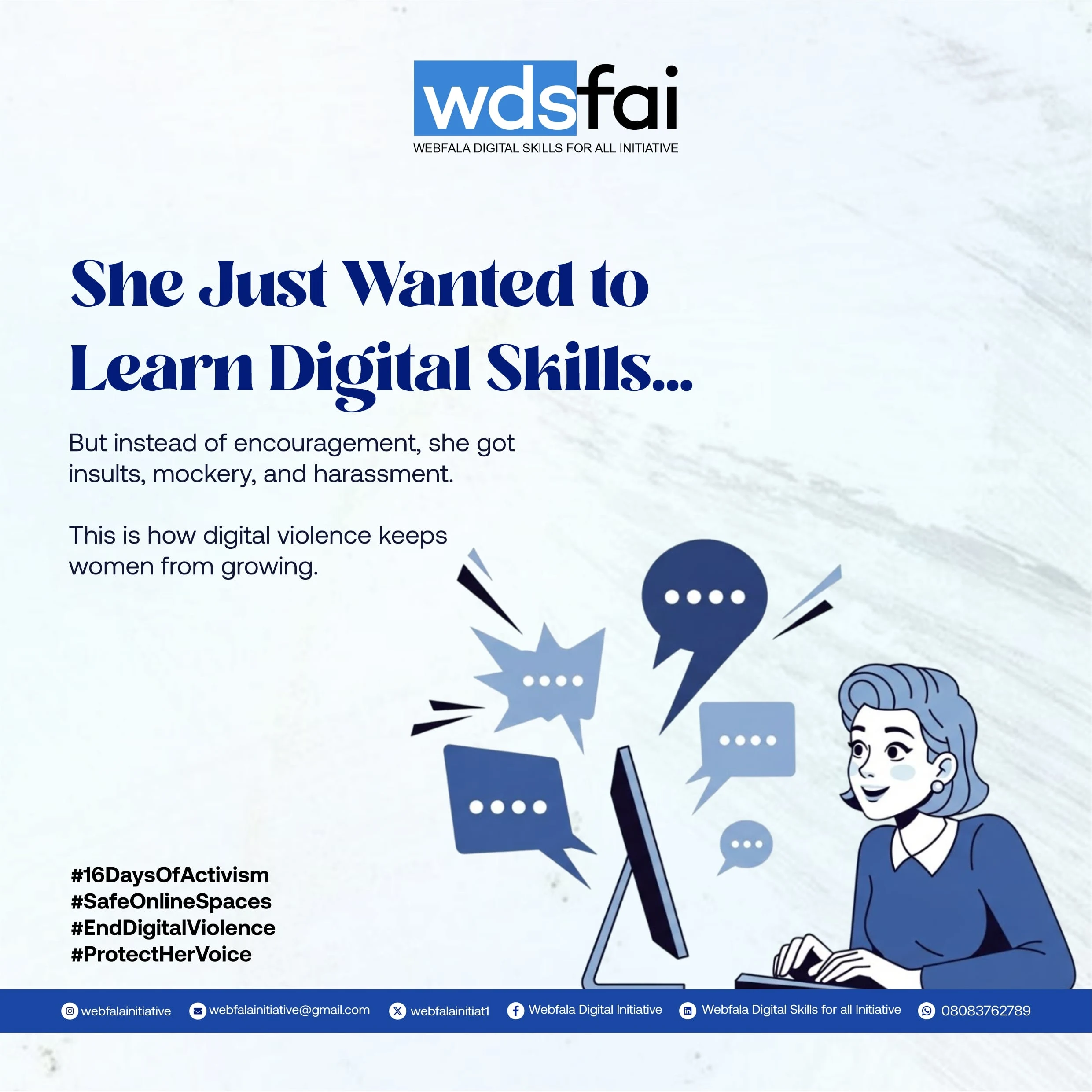 The flyers successfully communicated the campaign message and drew public attention to gender-based violence awareness. They were used across social media platforms, online communities, and print, contributing to the initiative’s visibility and engagement during the 16-day campaign.