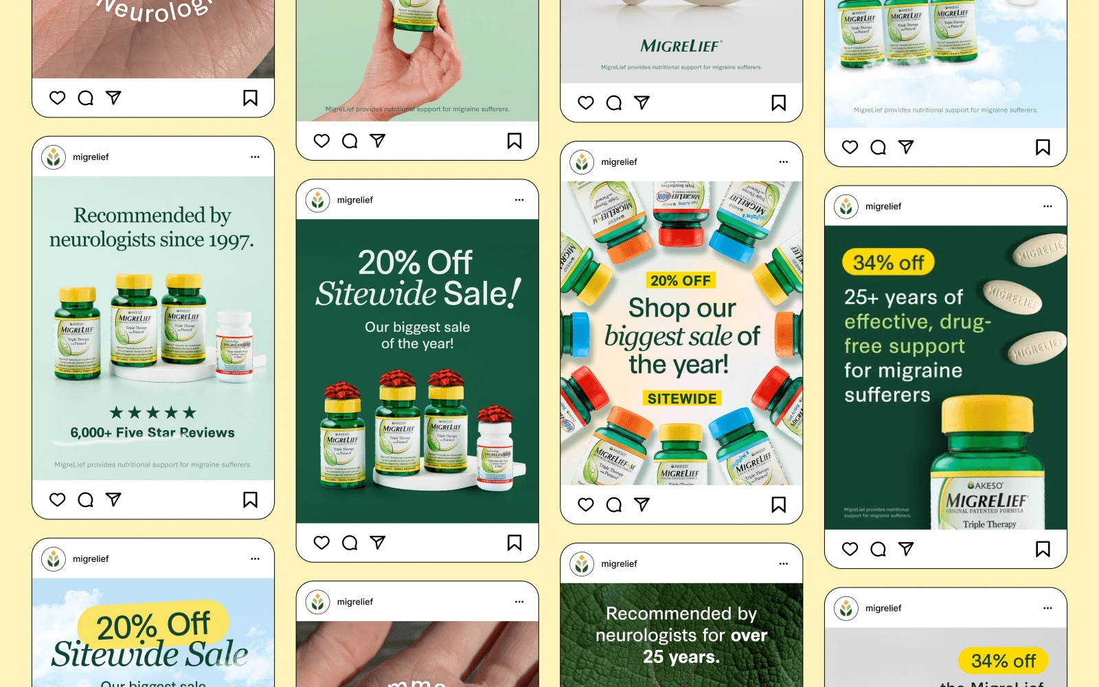 UGC-style Meta ads using lifestyle footage and motion to position MigreLief as a trusted, approachable solution for migraine sufferers.