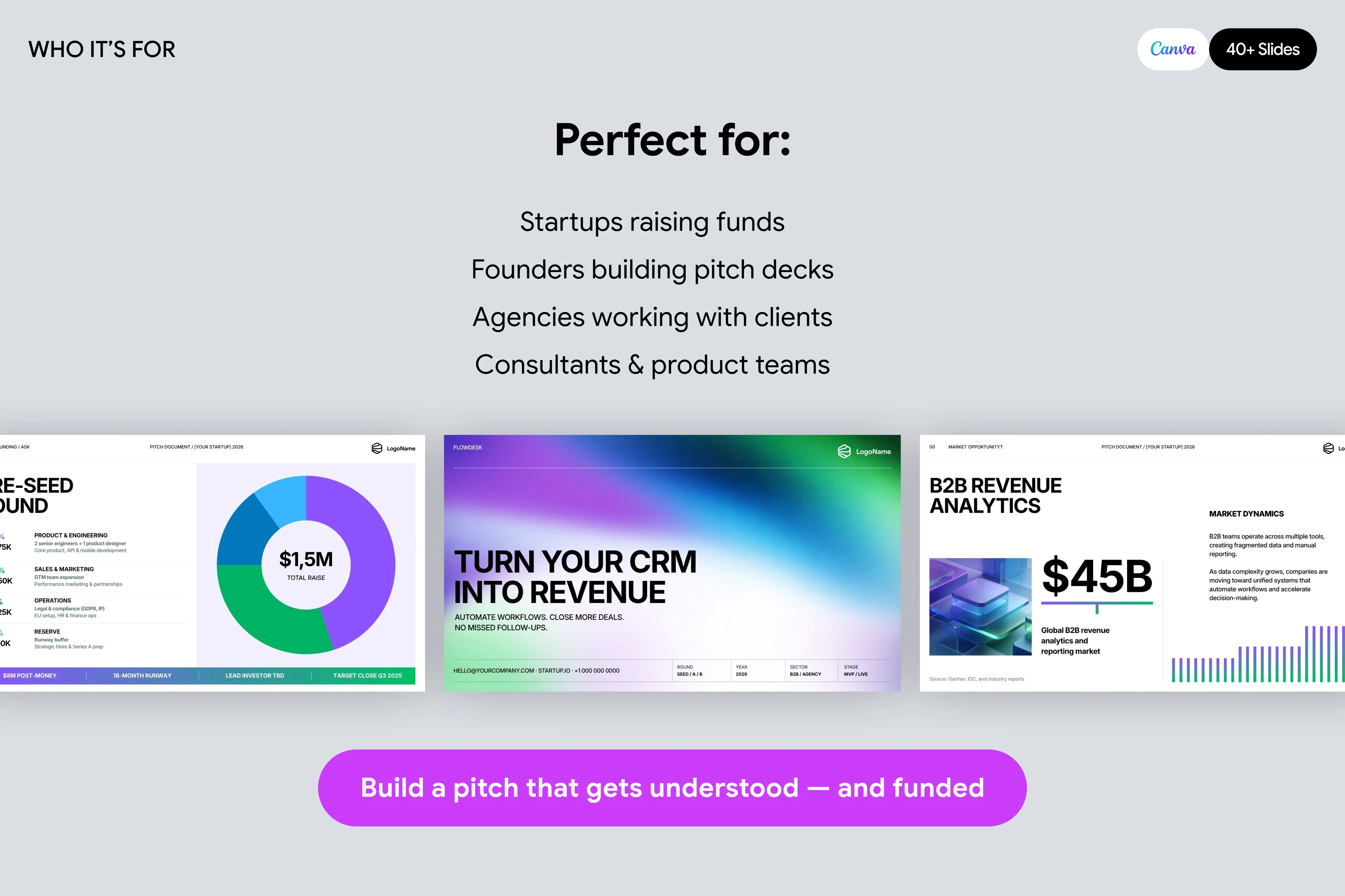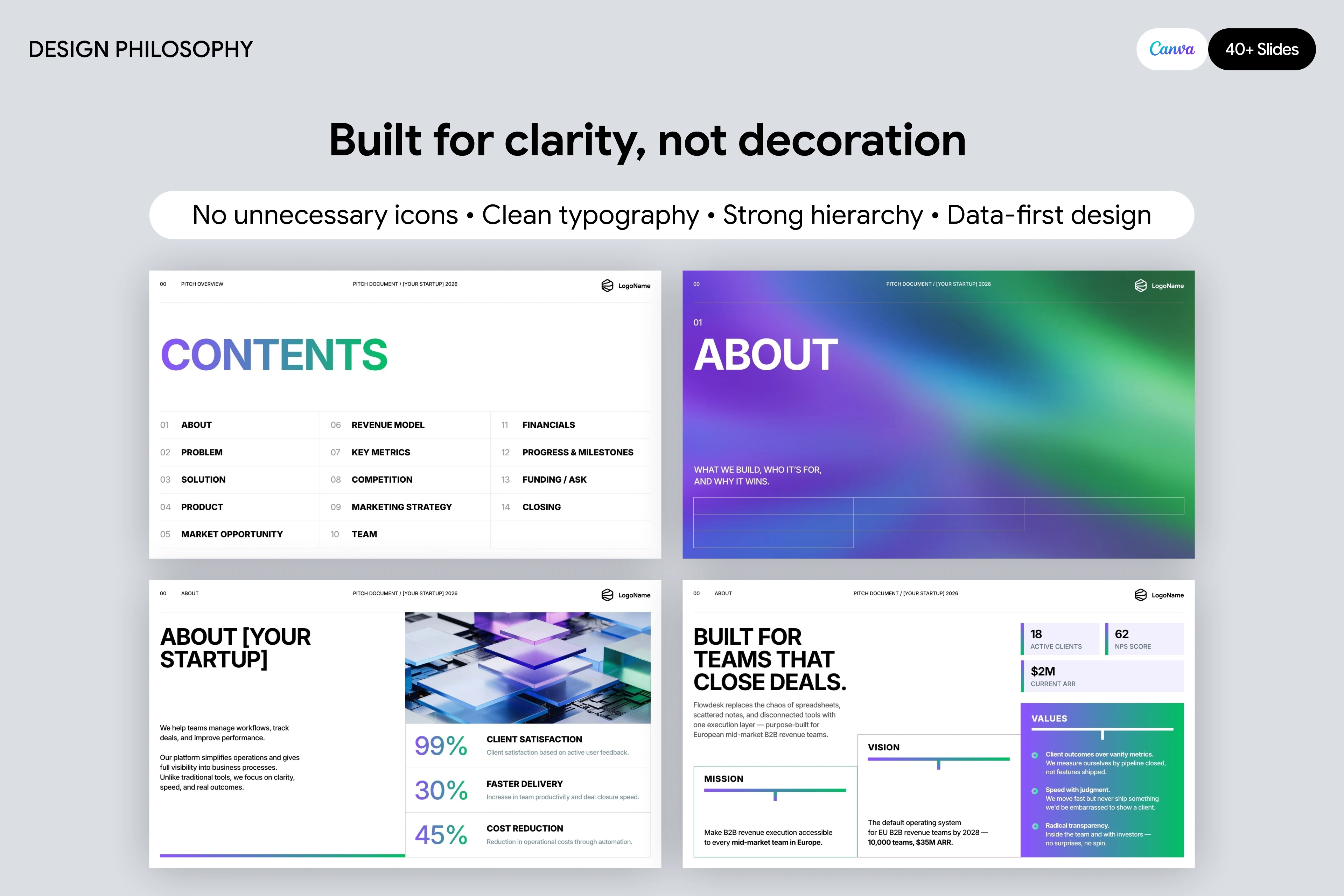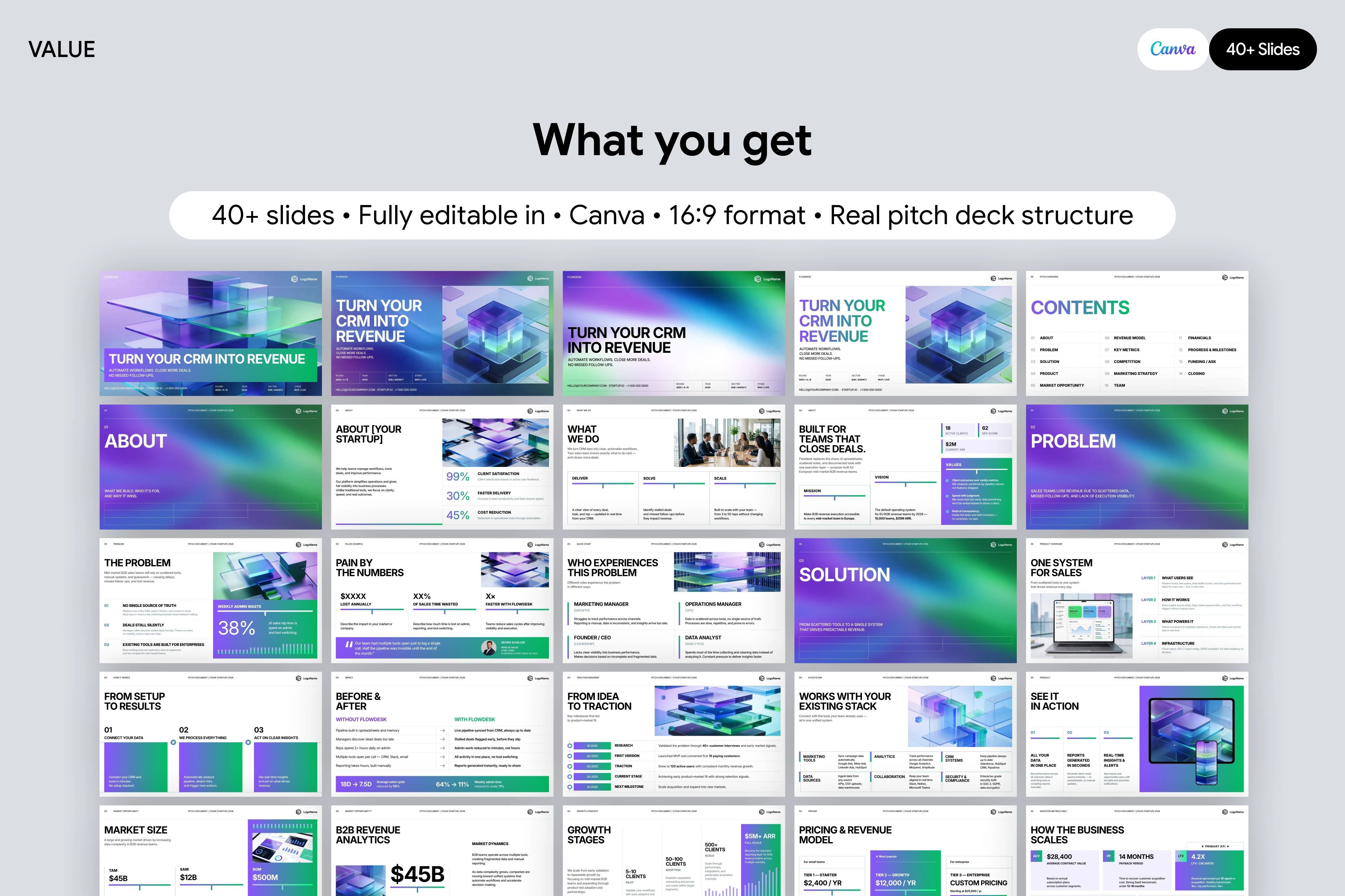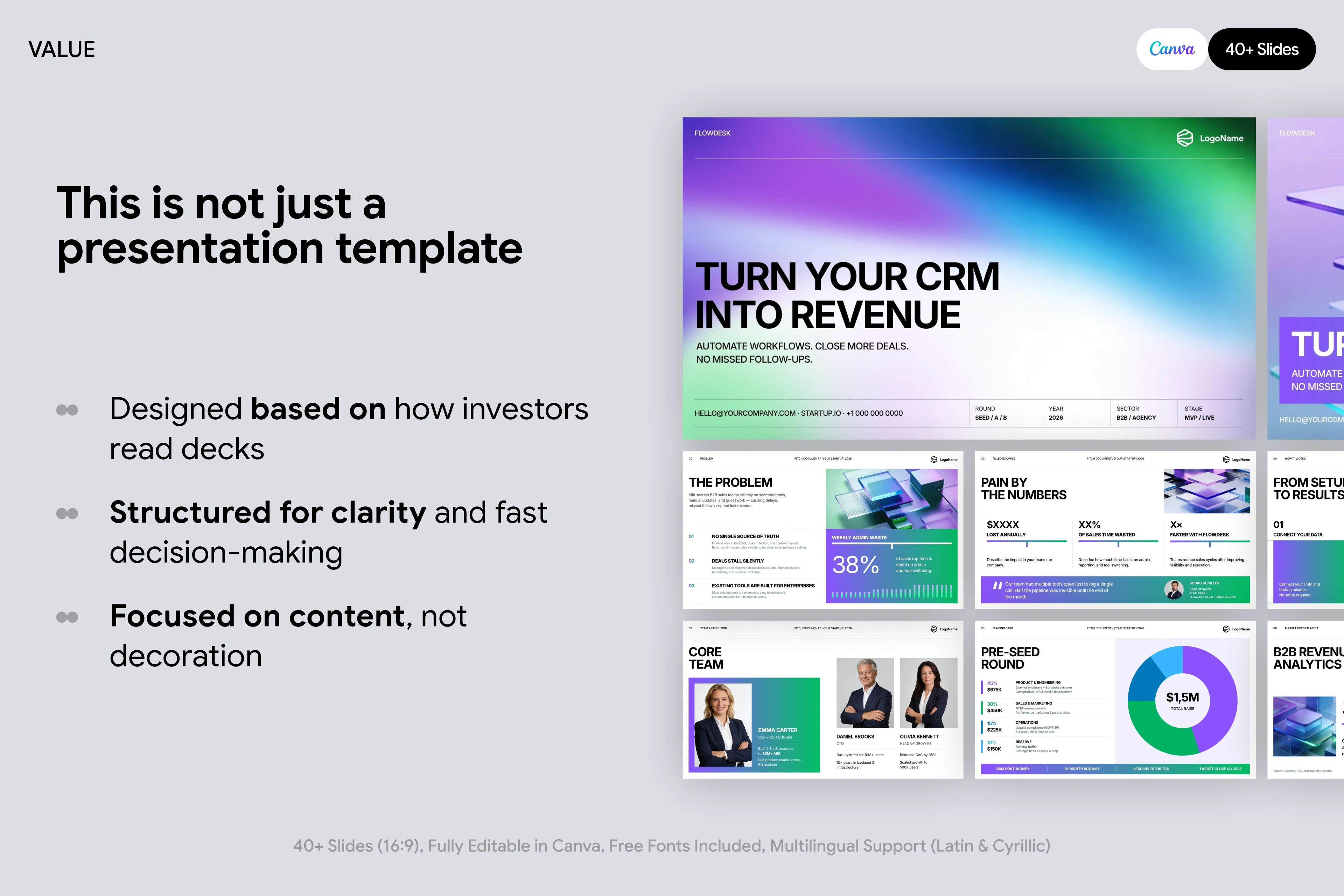 Investor-ready pitch deck template designed to present ideas clearly, communicate value, and help startups attract funding.