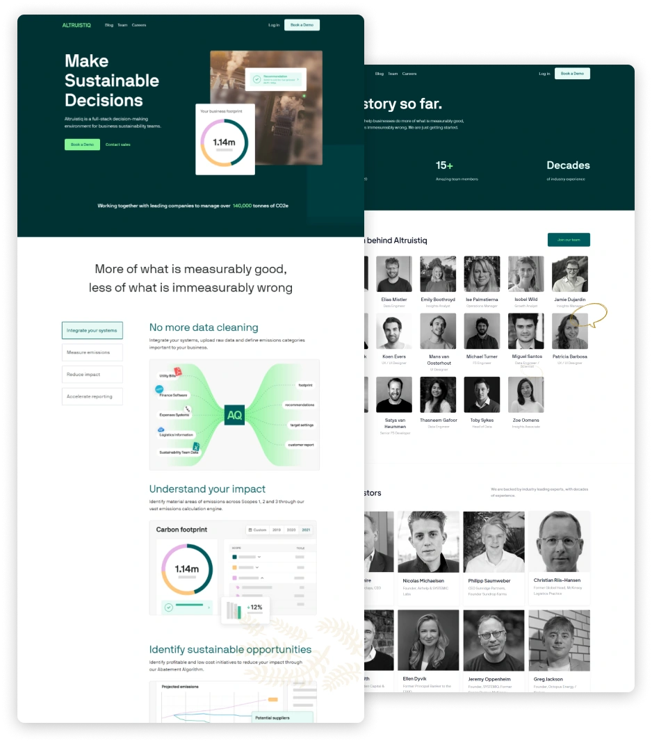 Altruistiq are an environmental SaaS company on a mission to help businesses do more of what is measurably good and less of what is immesureably wrong. They use AI to suggest ways of reducing one's footprint in the world.