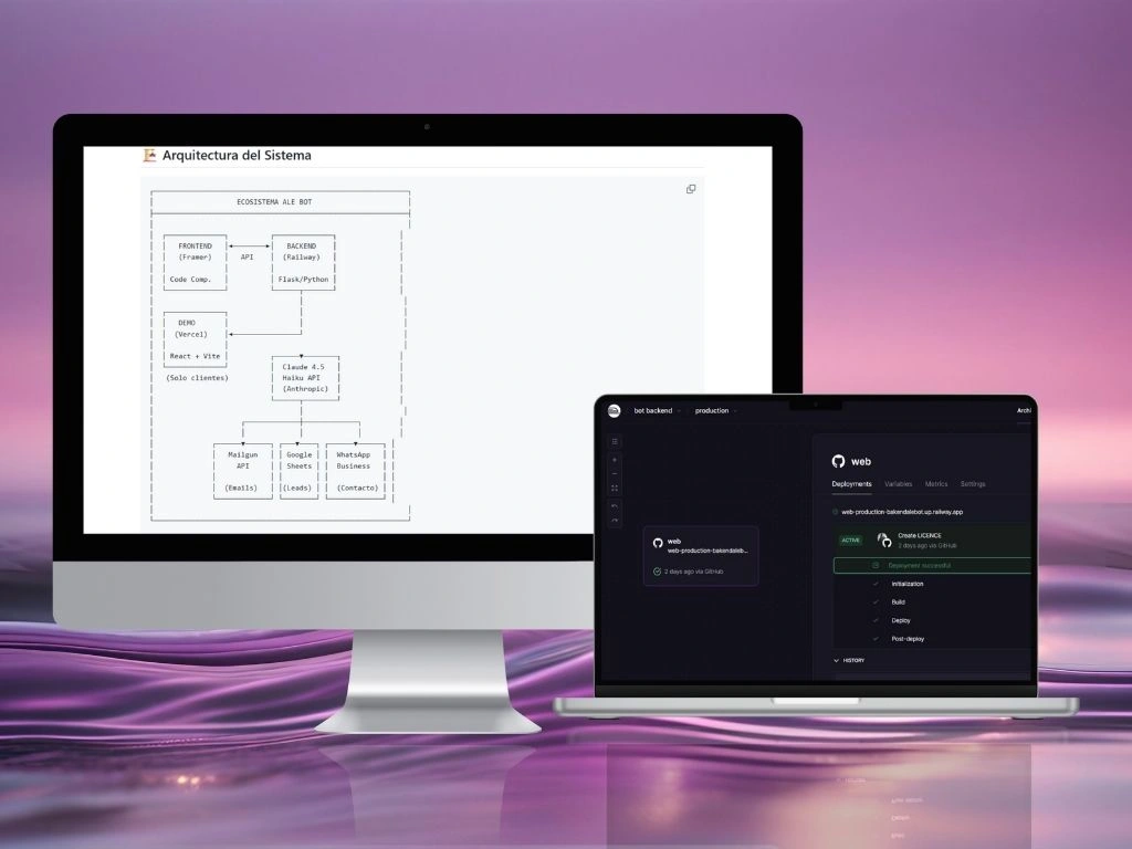 The assistant’s behavior is configured at the conversational level by setting context, boundaries, and operating rules to ensure coherent responses aligned with the business. The frontend is integrated as a native web component, maintaining a fluid and consistent user experience.