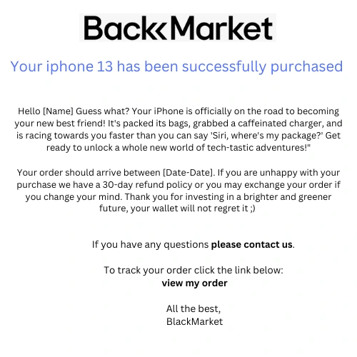 Brief: Write an email in BlackMarkets signature tone of voice: Notifying a user left something or to confirm their order.