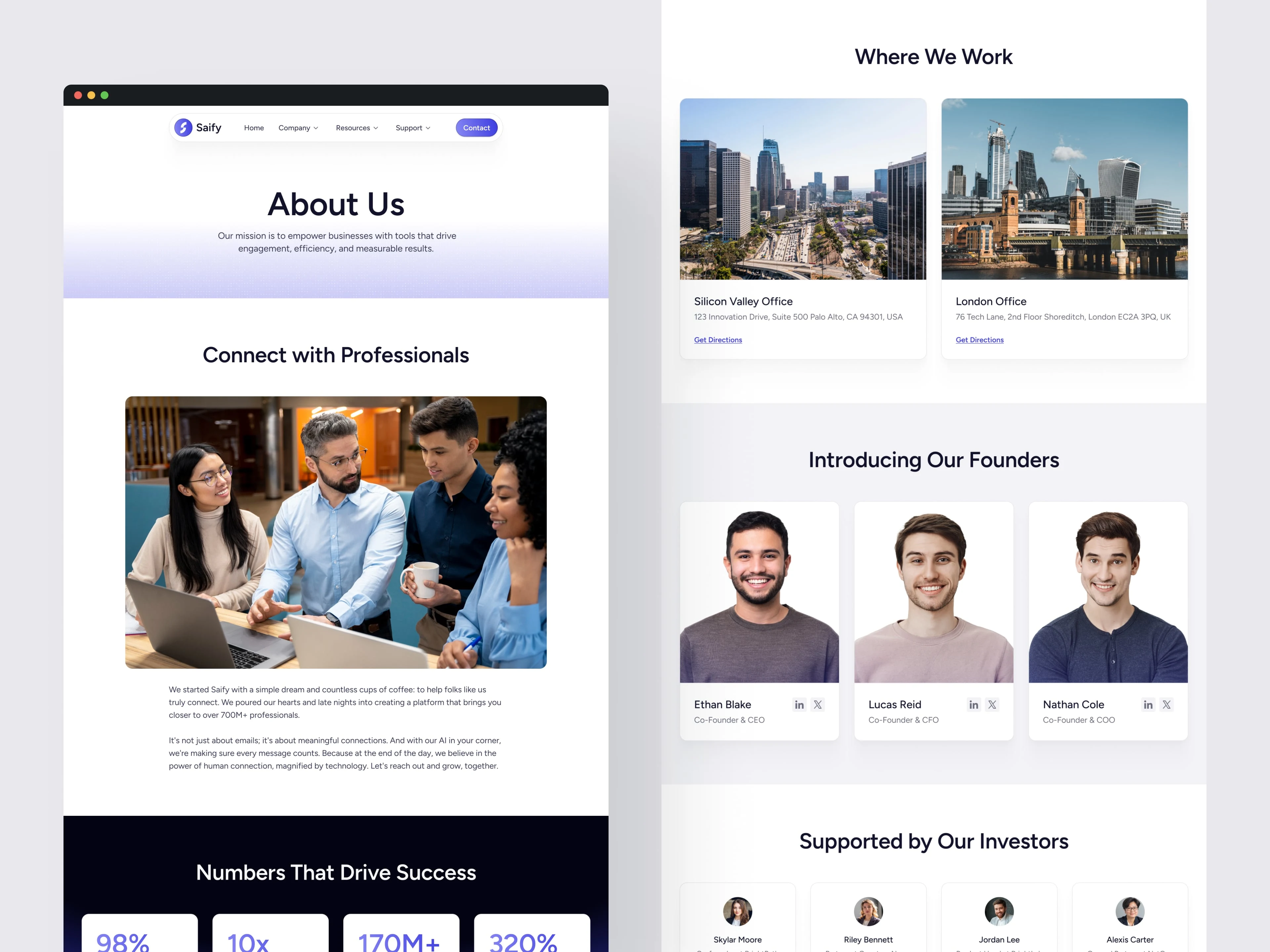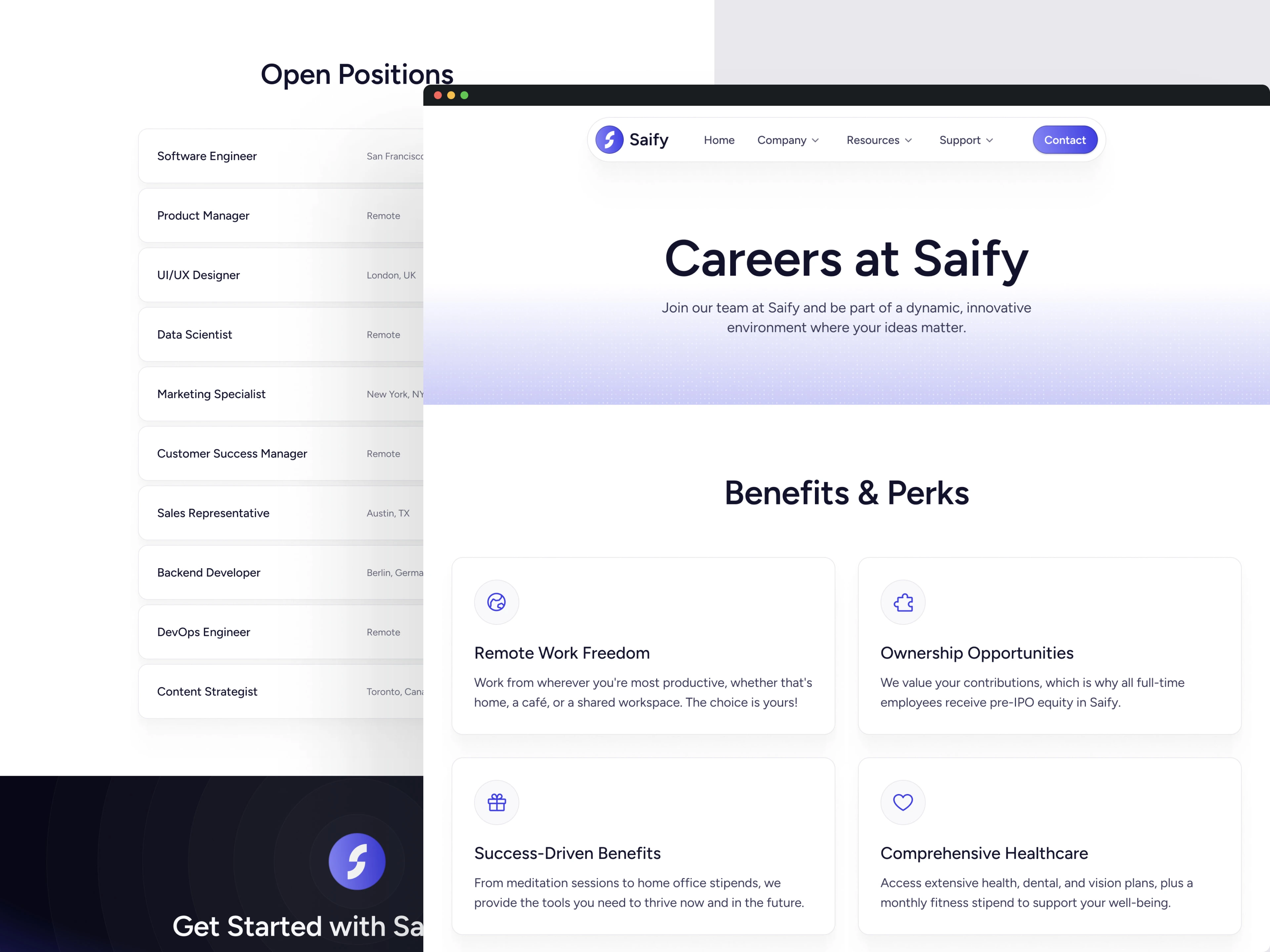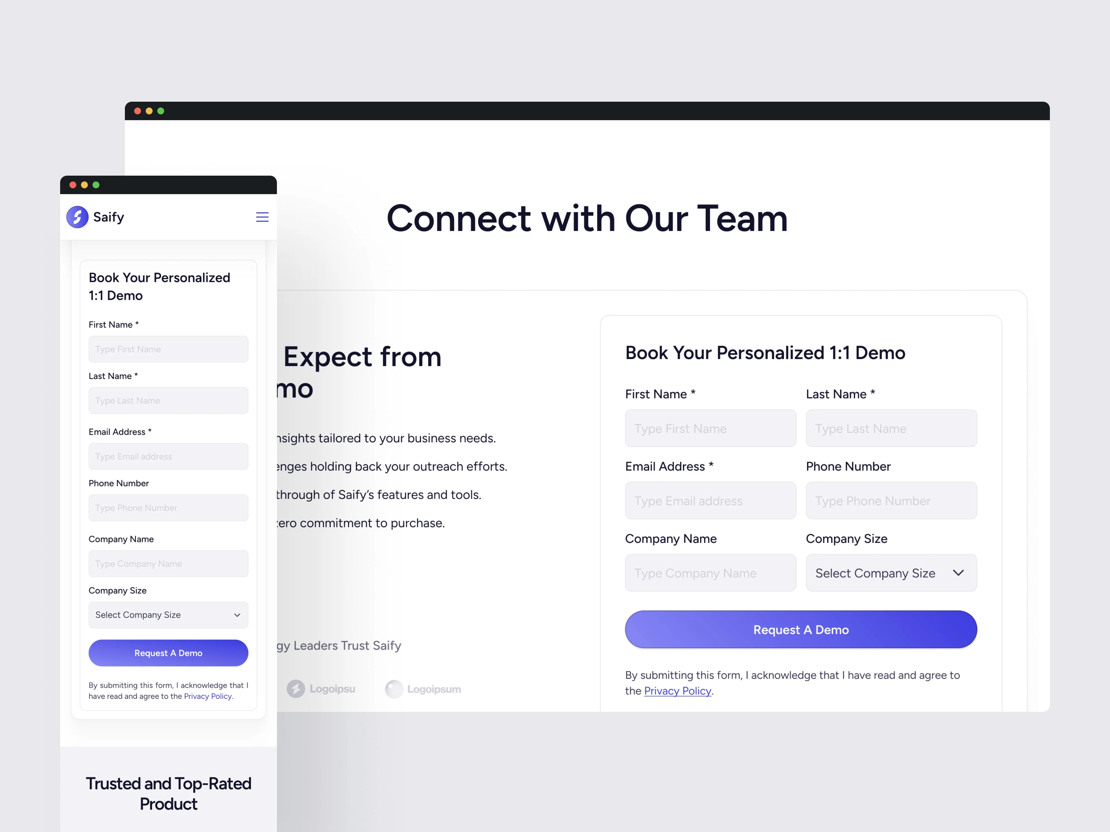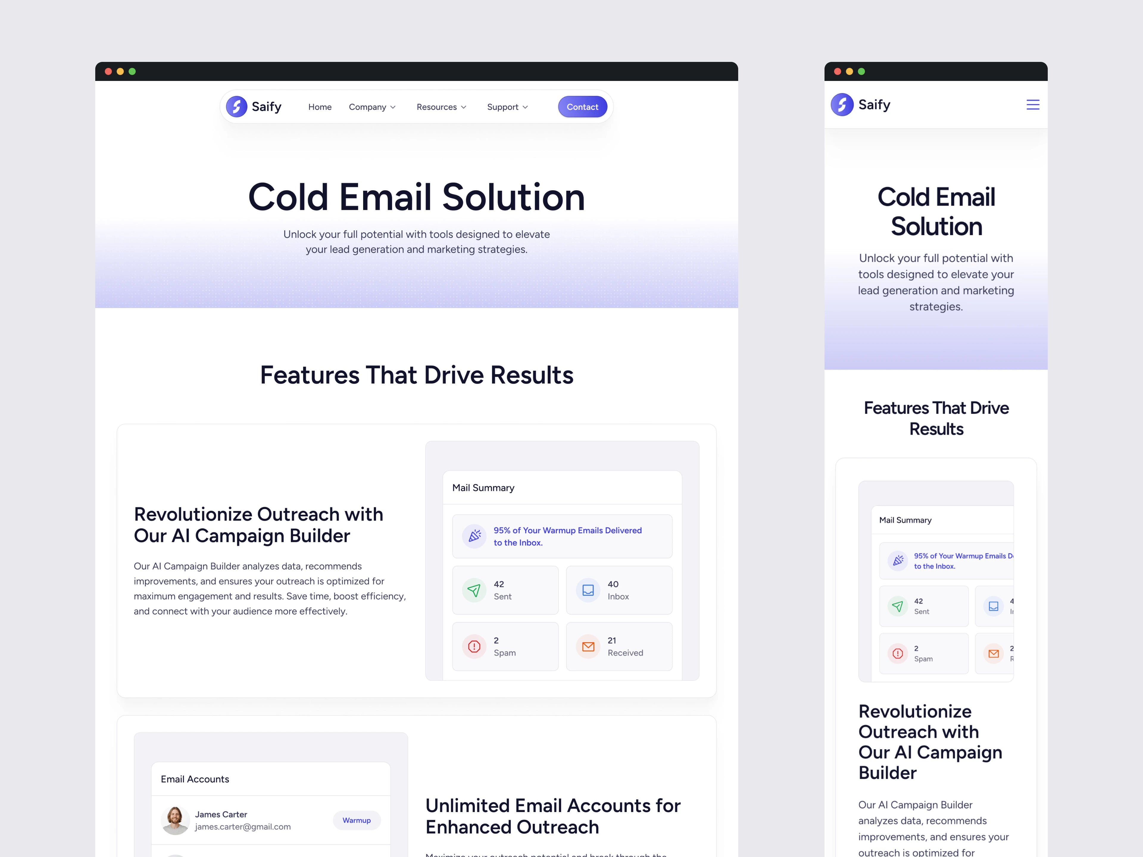 Saify delivers a conversion-optimized template ecosystem built specifically for email marketing SaaS credibility. First, a Comprehensive SaaS Architecture with 14 essential pages including Home, Solution, About Us, Pricing, Blog, Blog Single (CMS-enabled), Reviews, FAQ, Careers, Request Demo, Contact, Privacy Policy, Terms & Conditions, and 404—covering every touchpoint in the SaaS buyer journey.