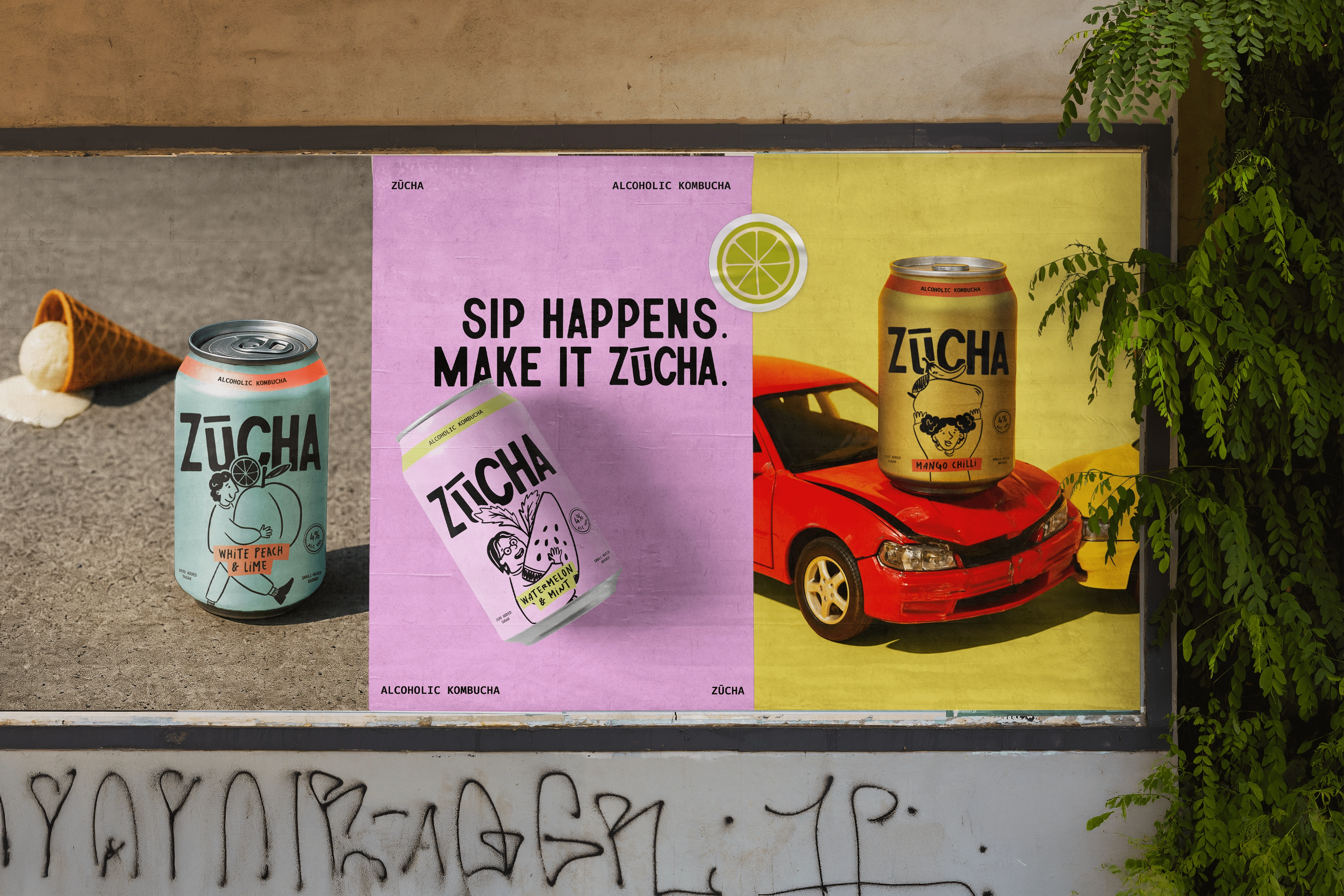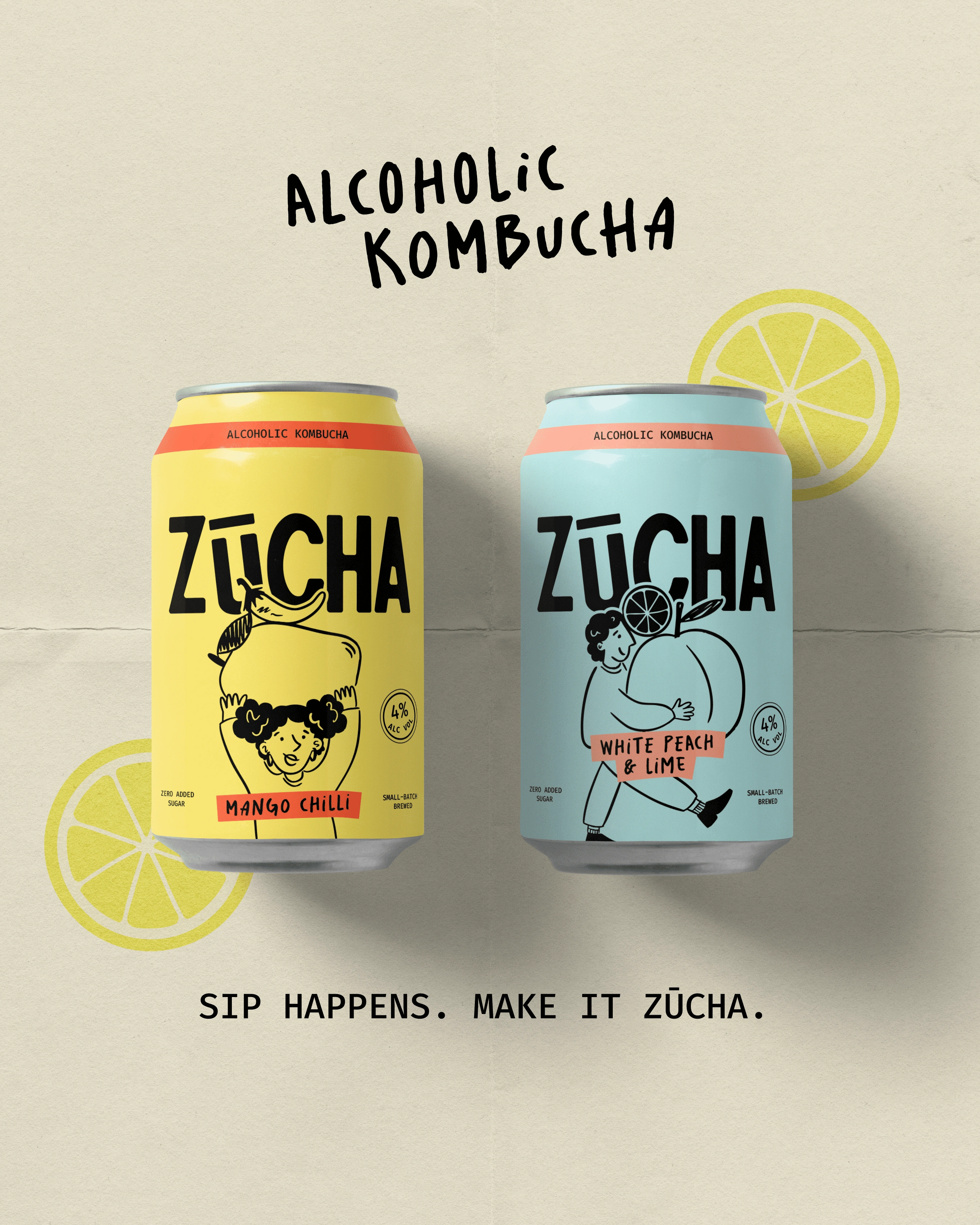 Zūcha is an alcoholic kombucha brand that’s playful, bright, and full of personality. With unique flavour combinations and a bold attitude, Zūcha brings a refreshing twist to the ready-to-drink market.