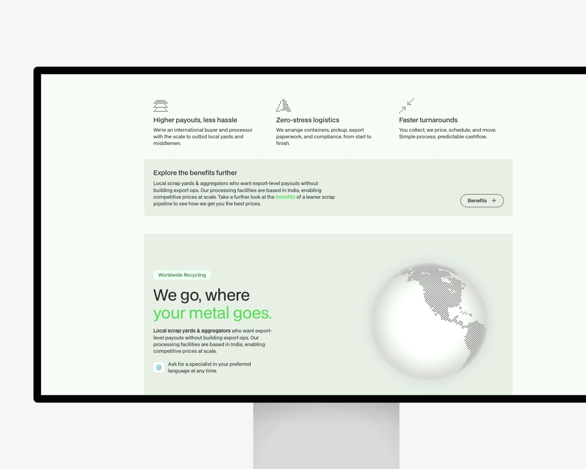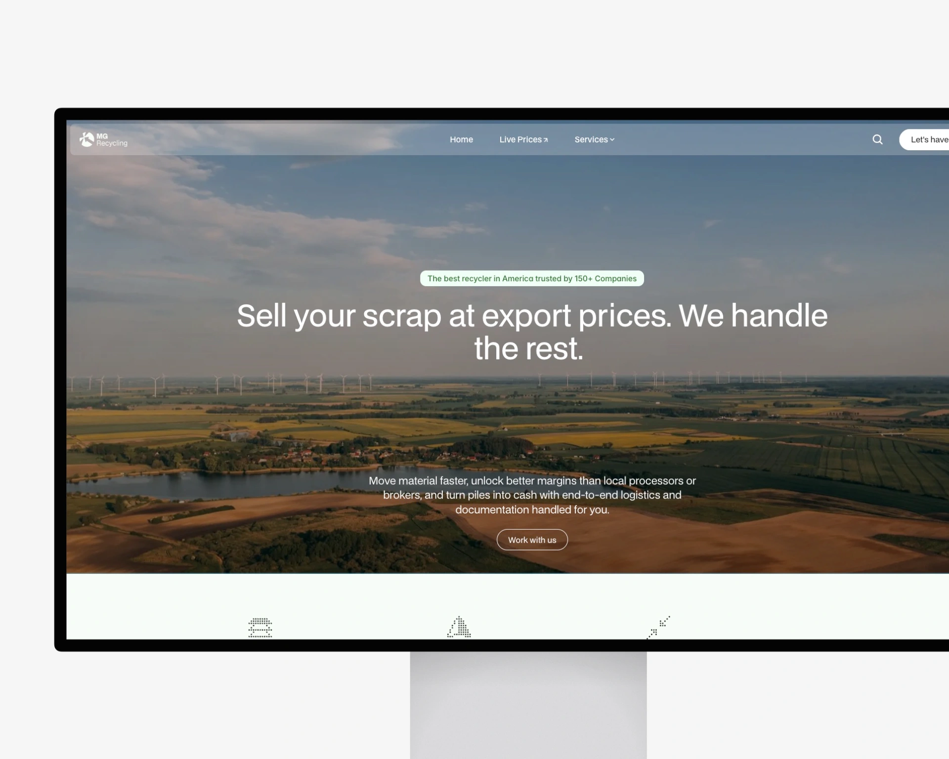 MG Recycling needed a modern brand presence to reflect their scale, credibility, and leadership in industrial recycling. We built their full digital identity — a cohesive brand system, a streamlined website, and a custom-built live webapp that updates daily scrap metal buying prices for the current trading day. The result is more than a website. It’s a digital platform that communicates professionalism, transparency, and sustainability to their clients — from small businesses to large-scale industrial partners.
