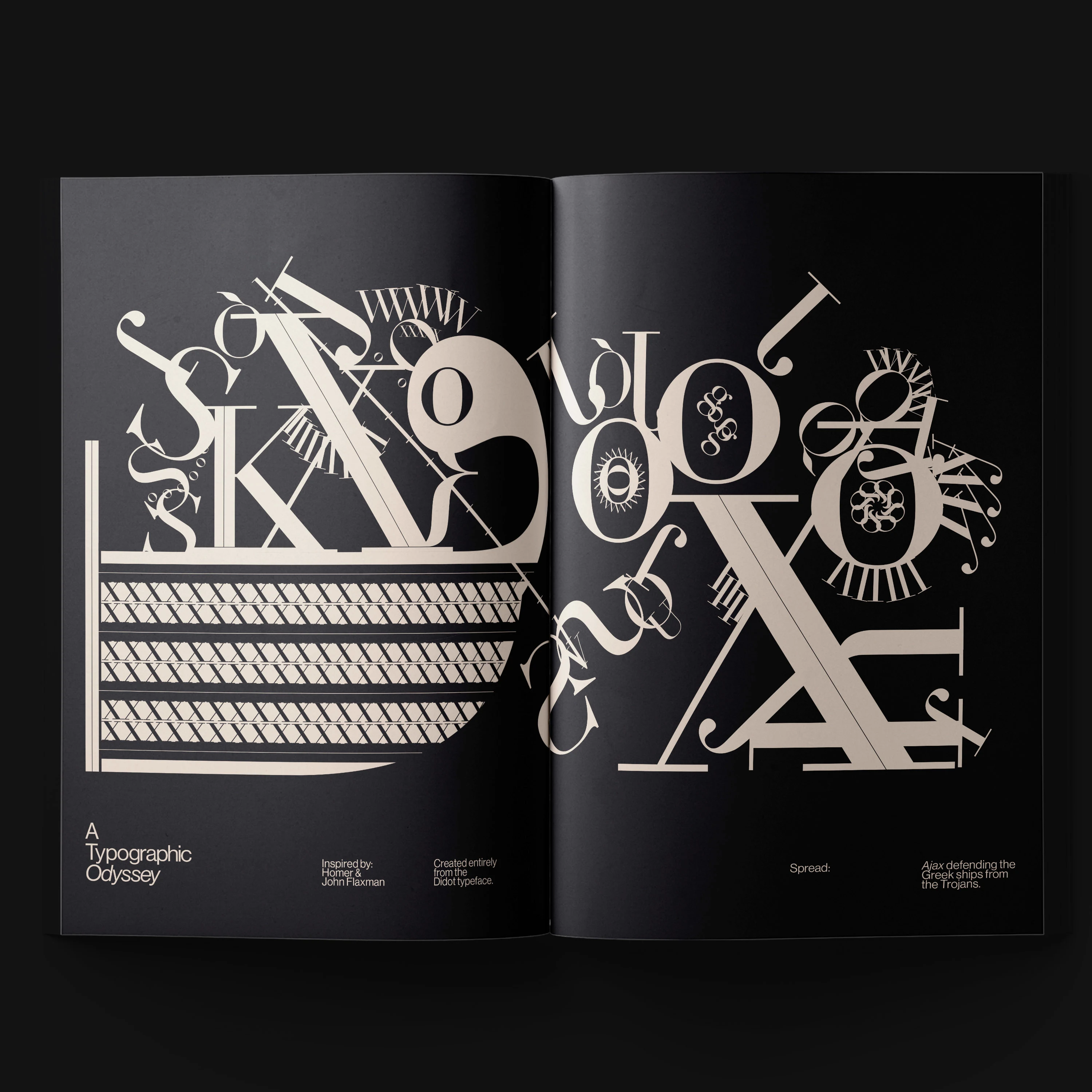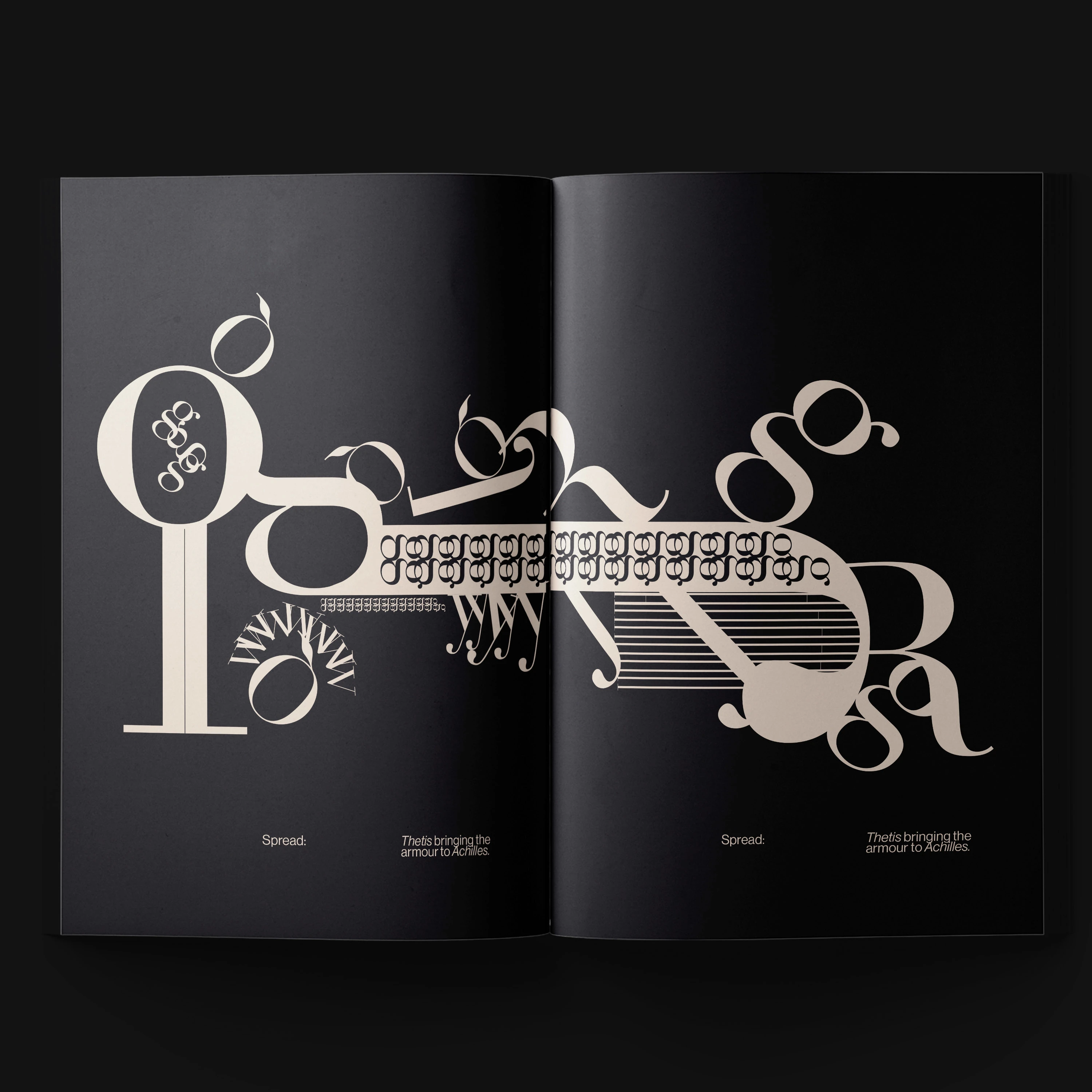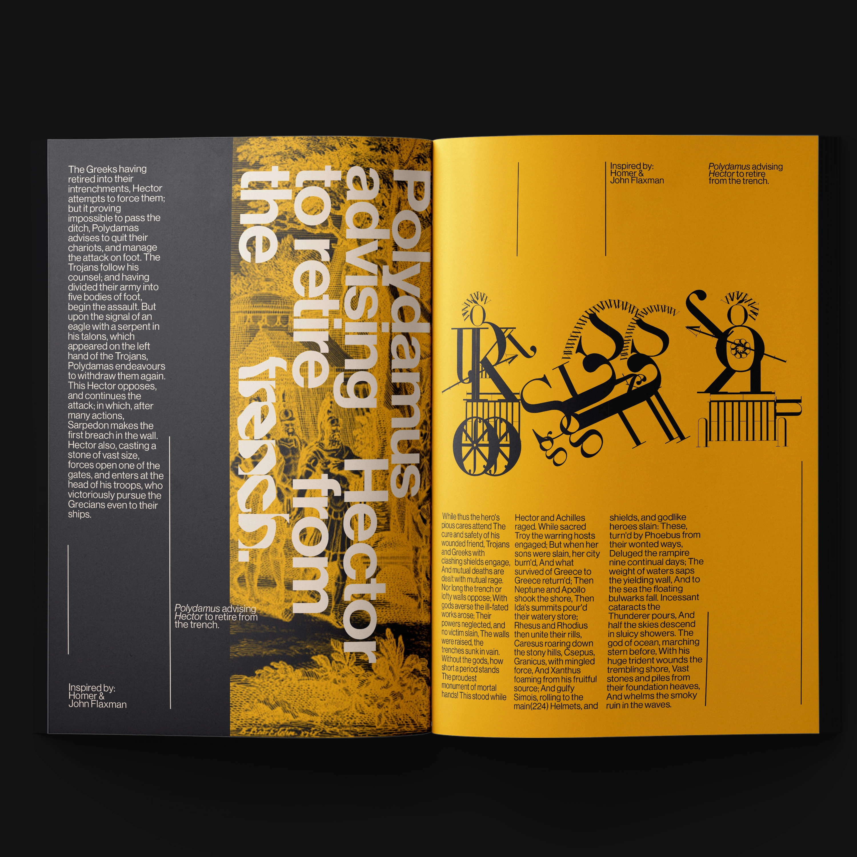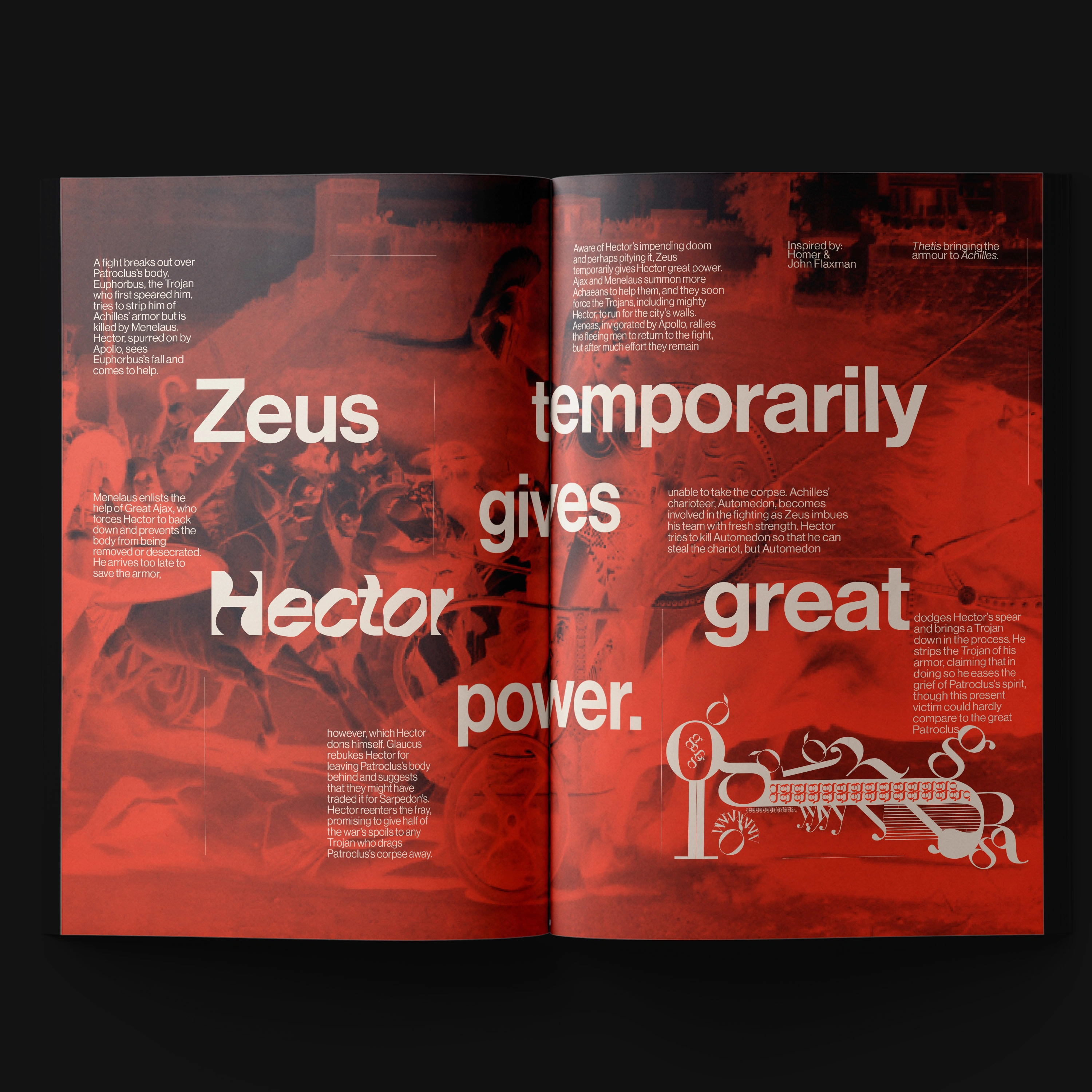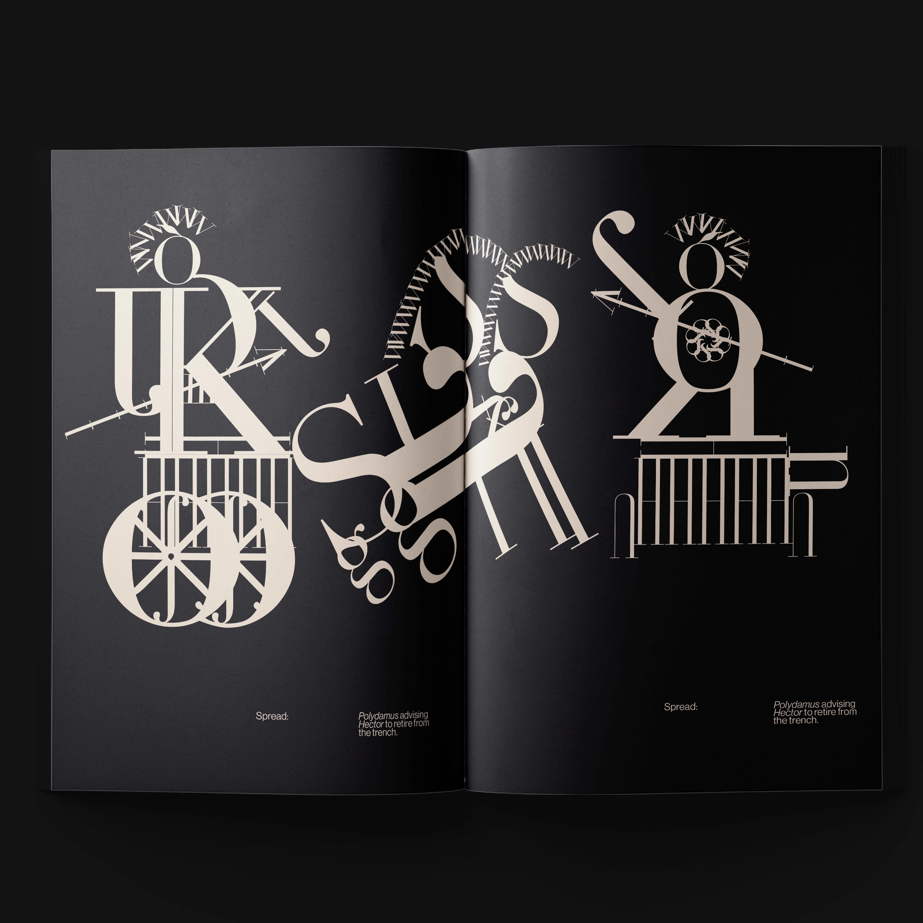 A magazine with scenes from The Iliad, created entirely from the Didot typeface.