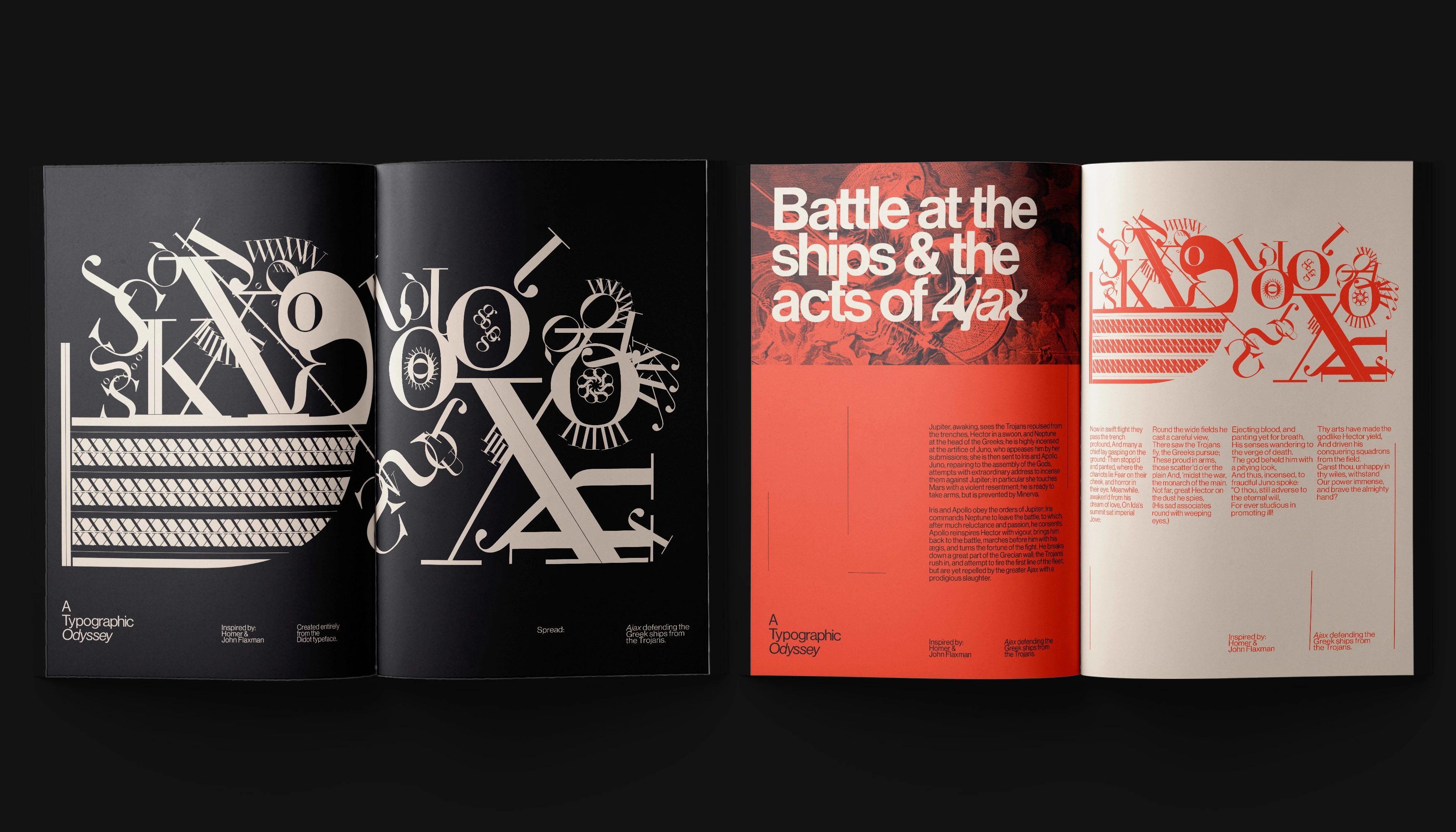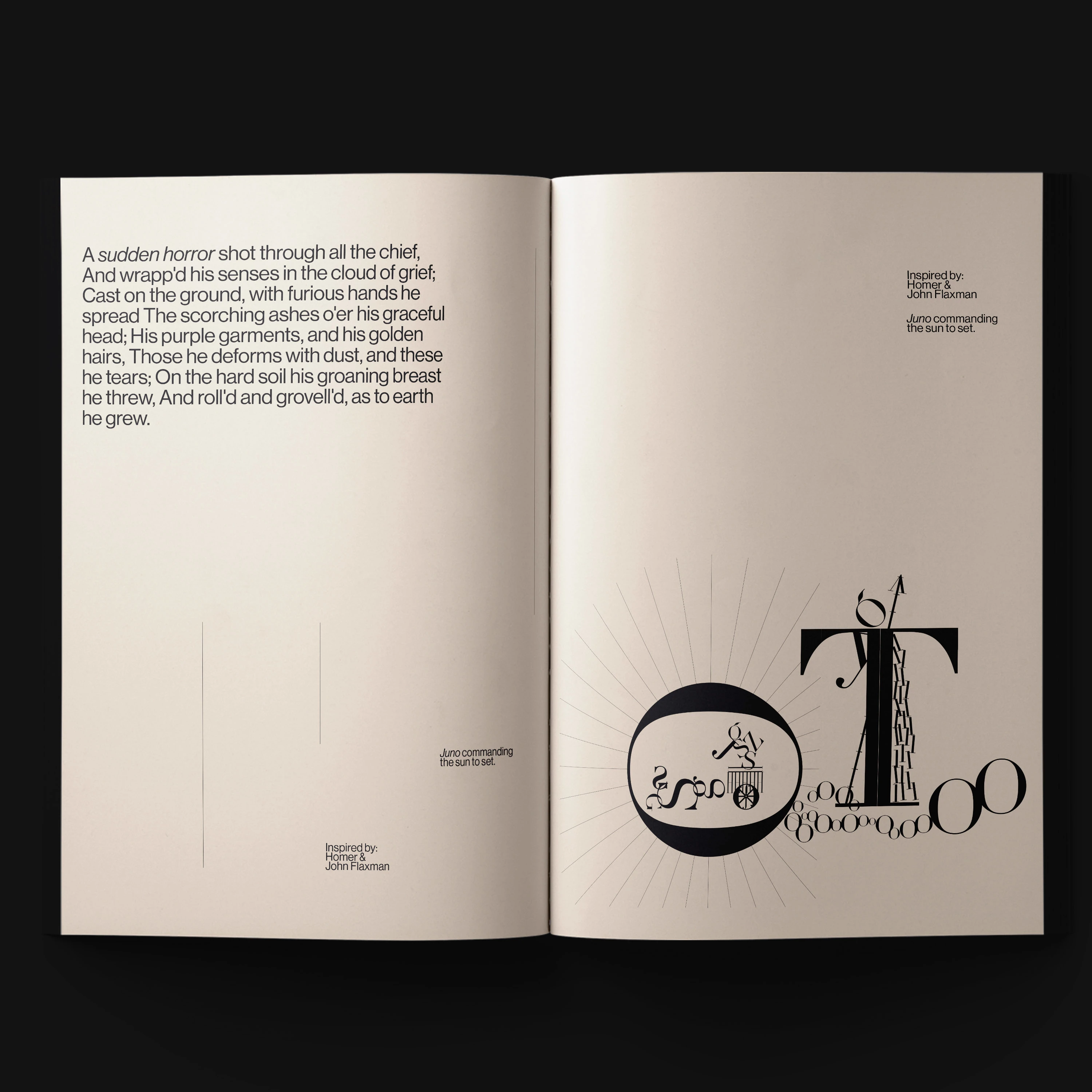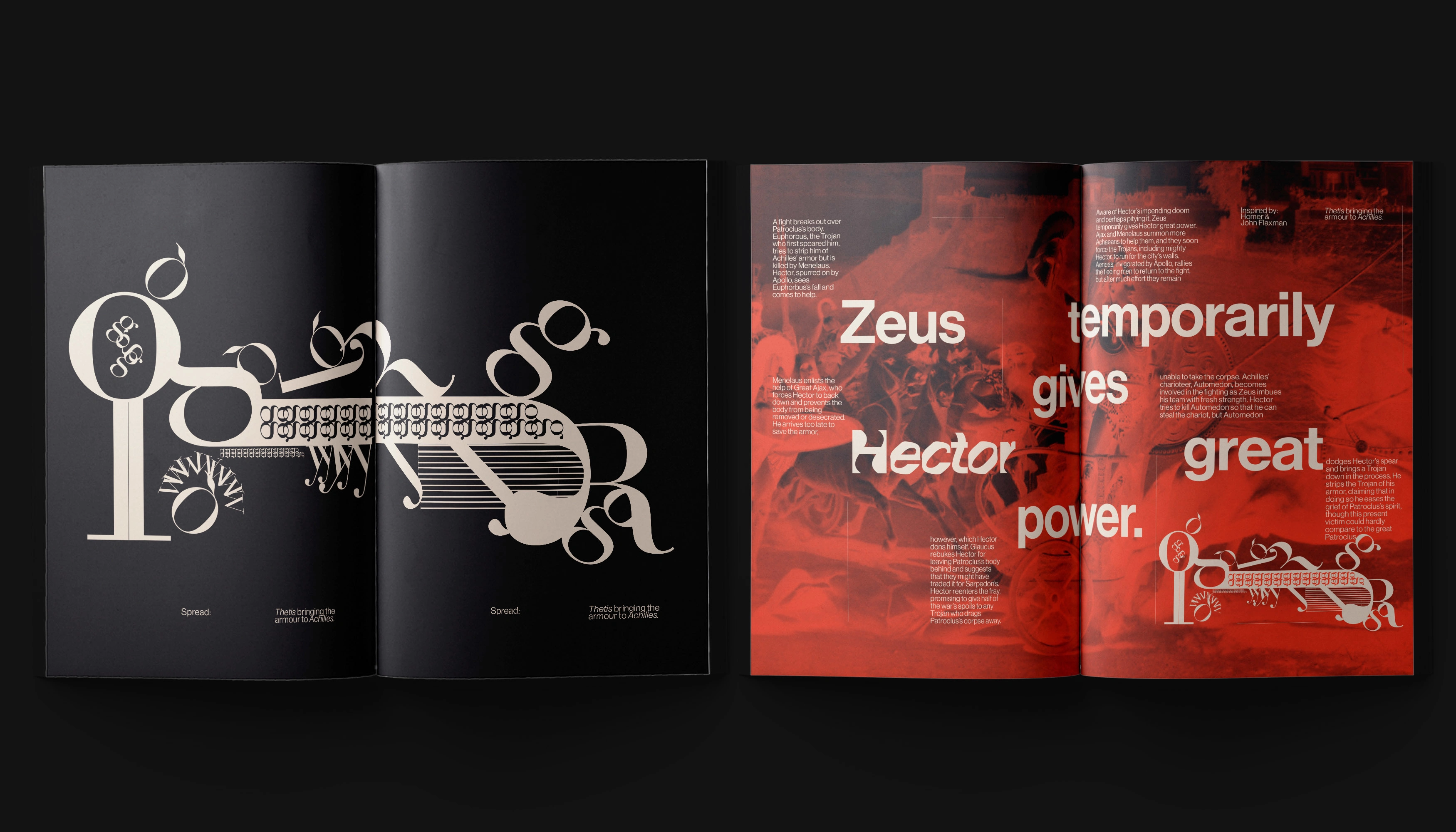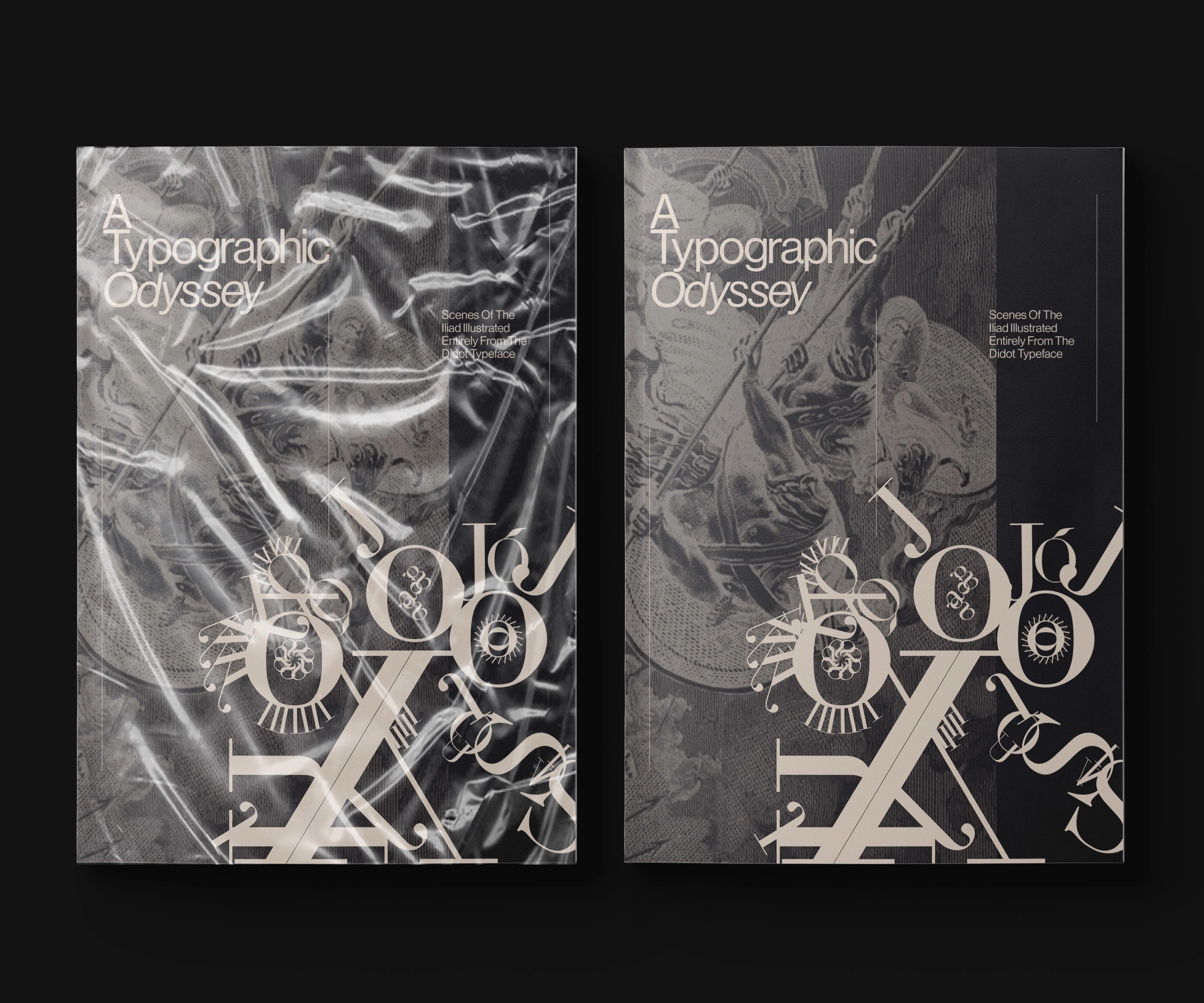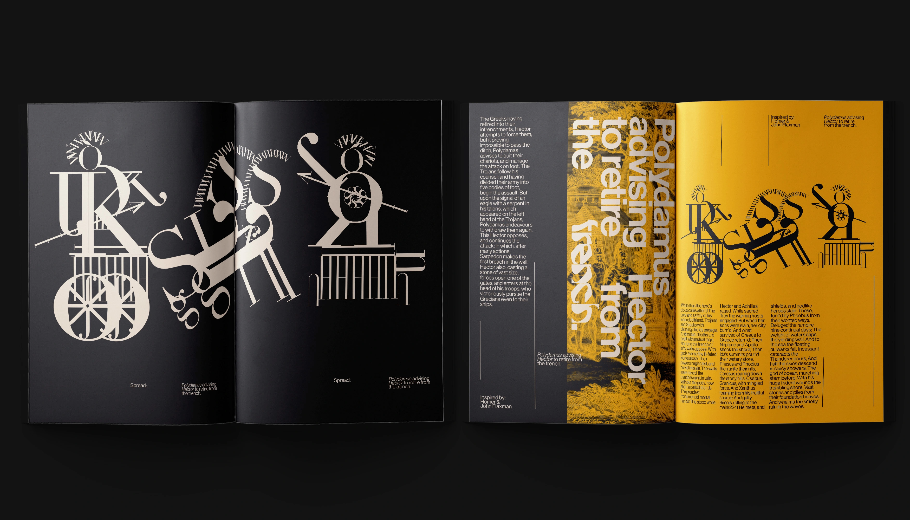 A magazine with scenes from The Iliad, created entirely from the Didot typeface.