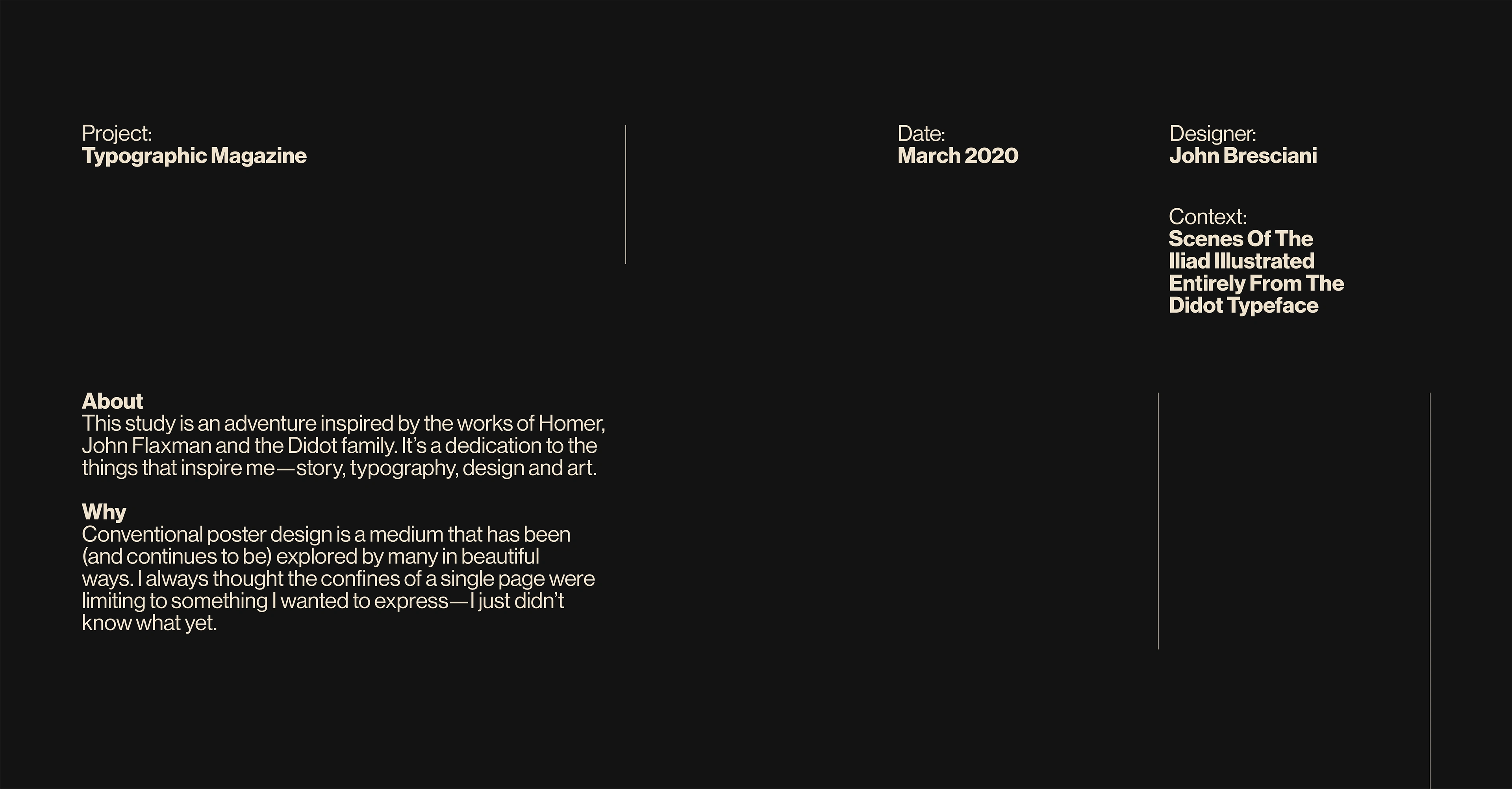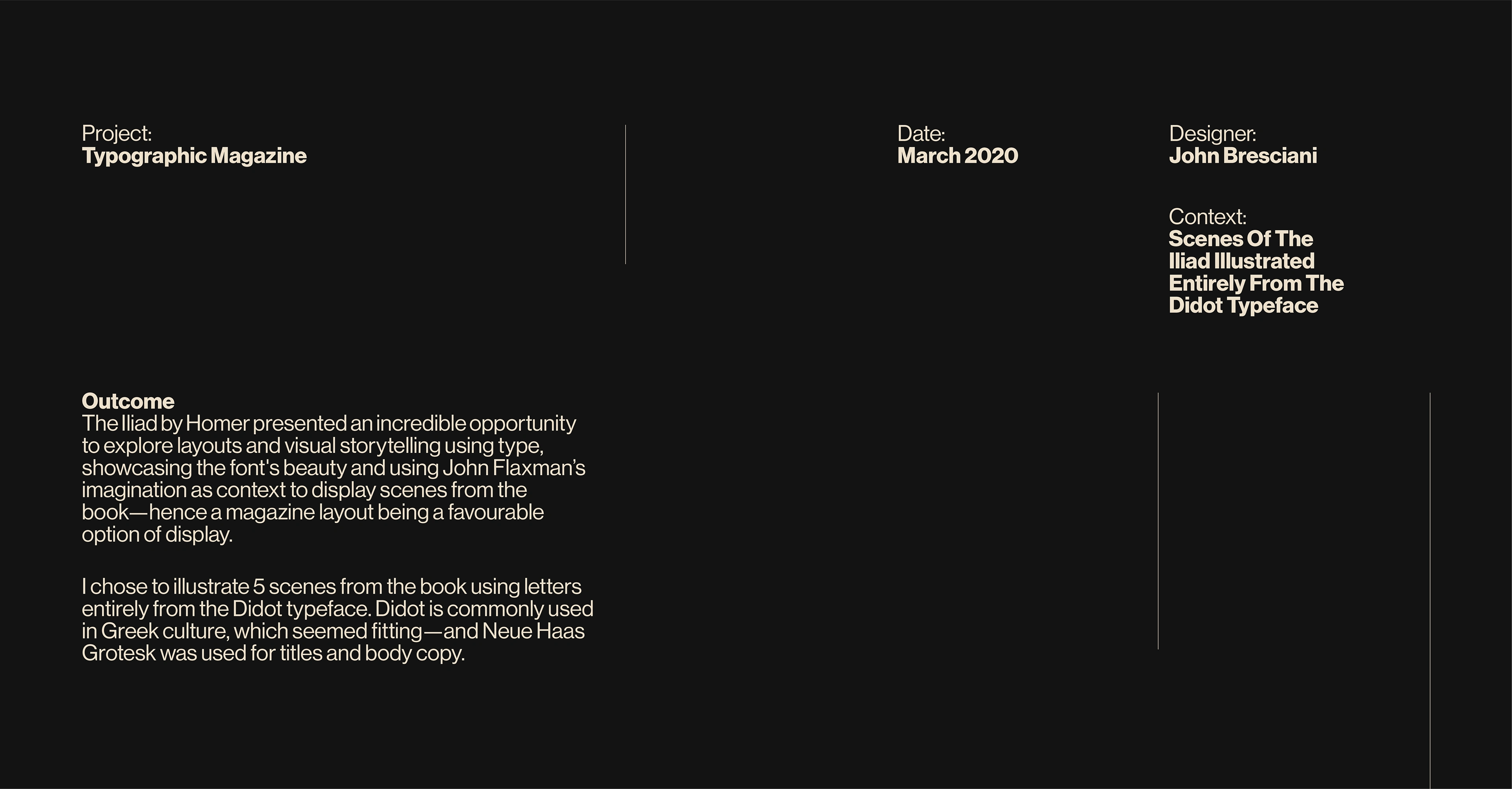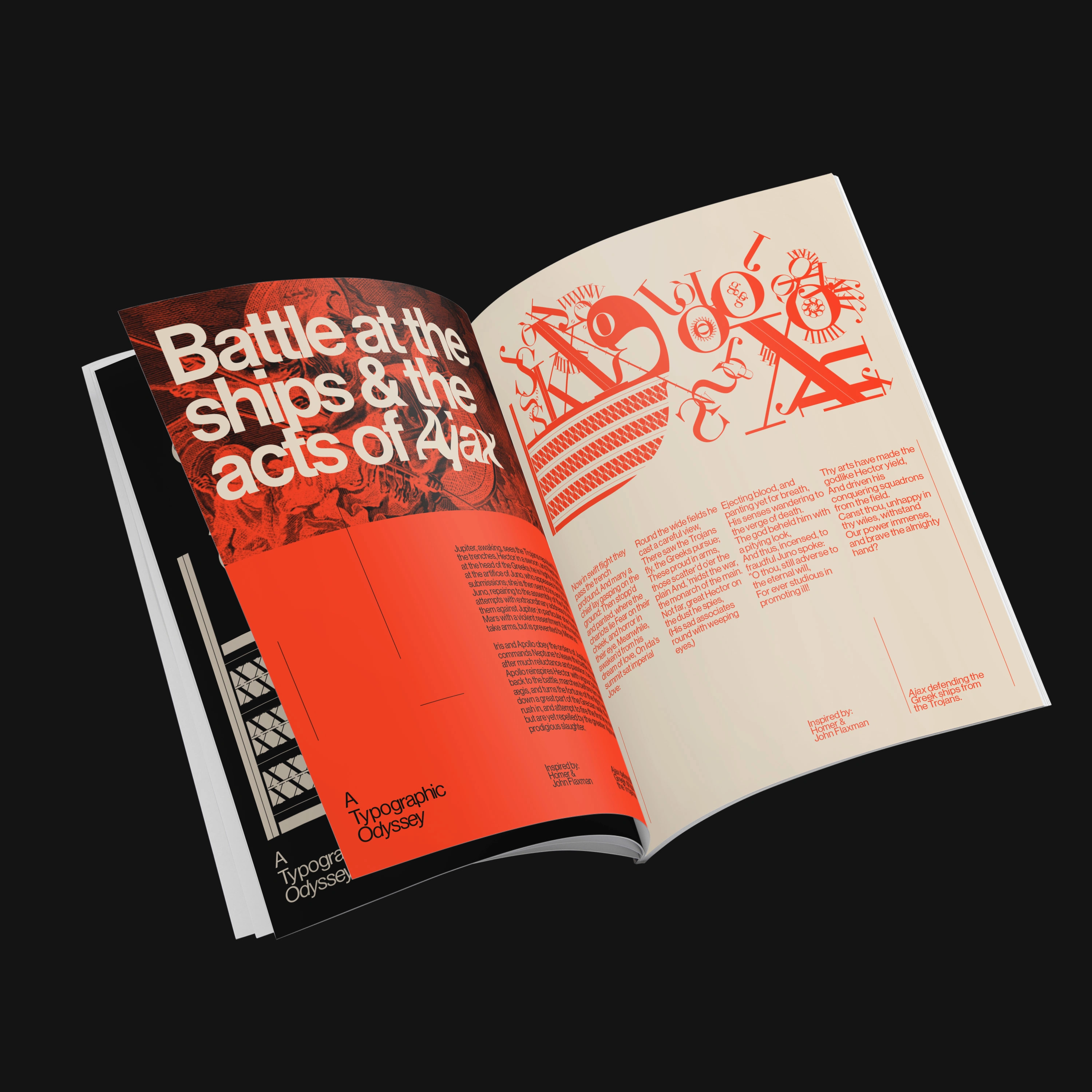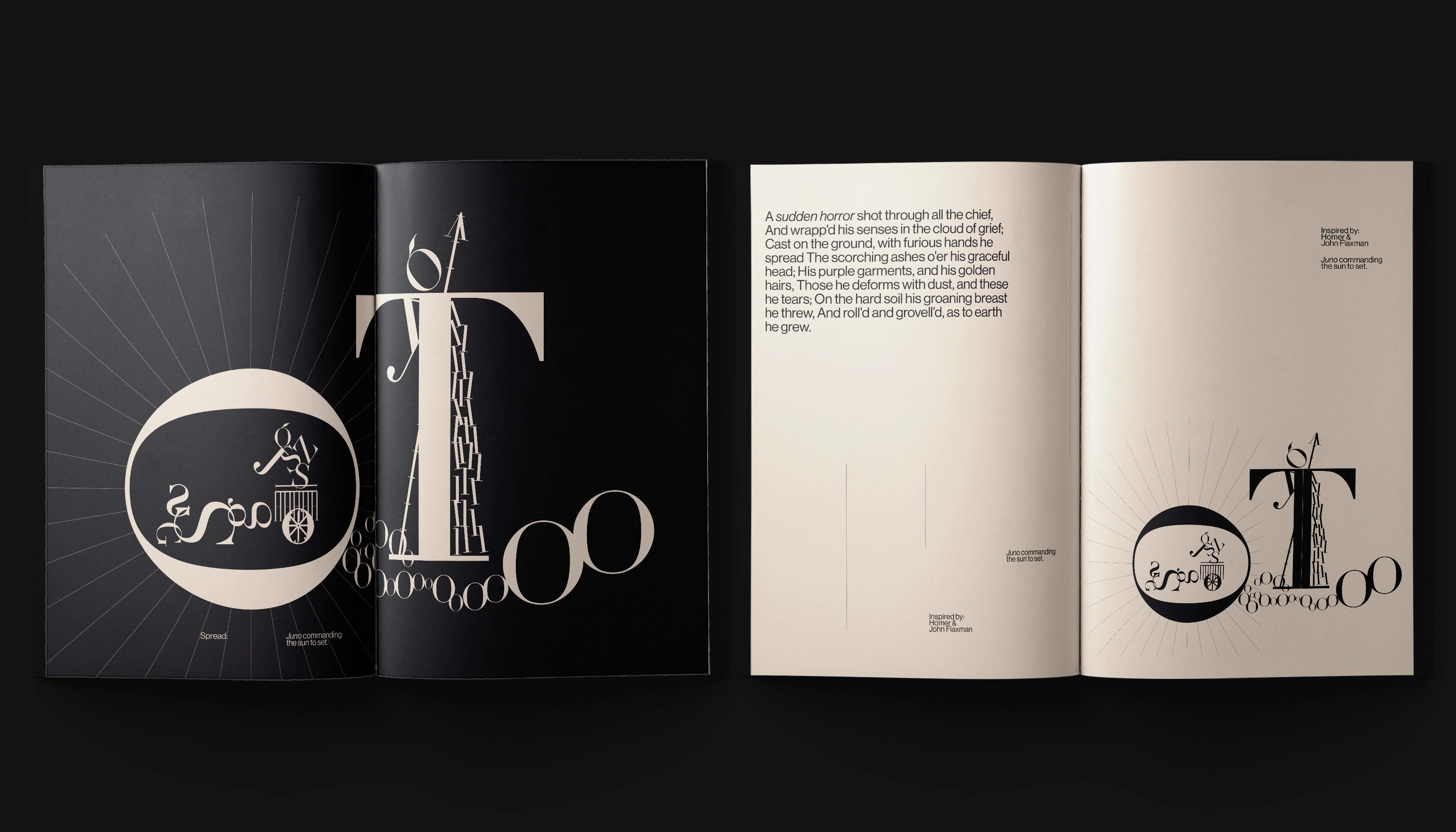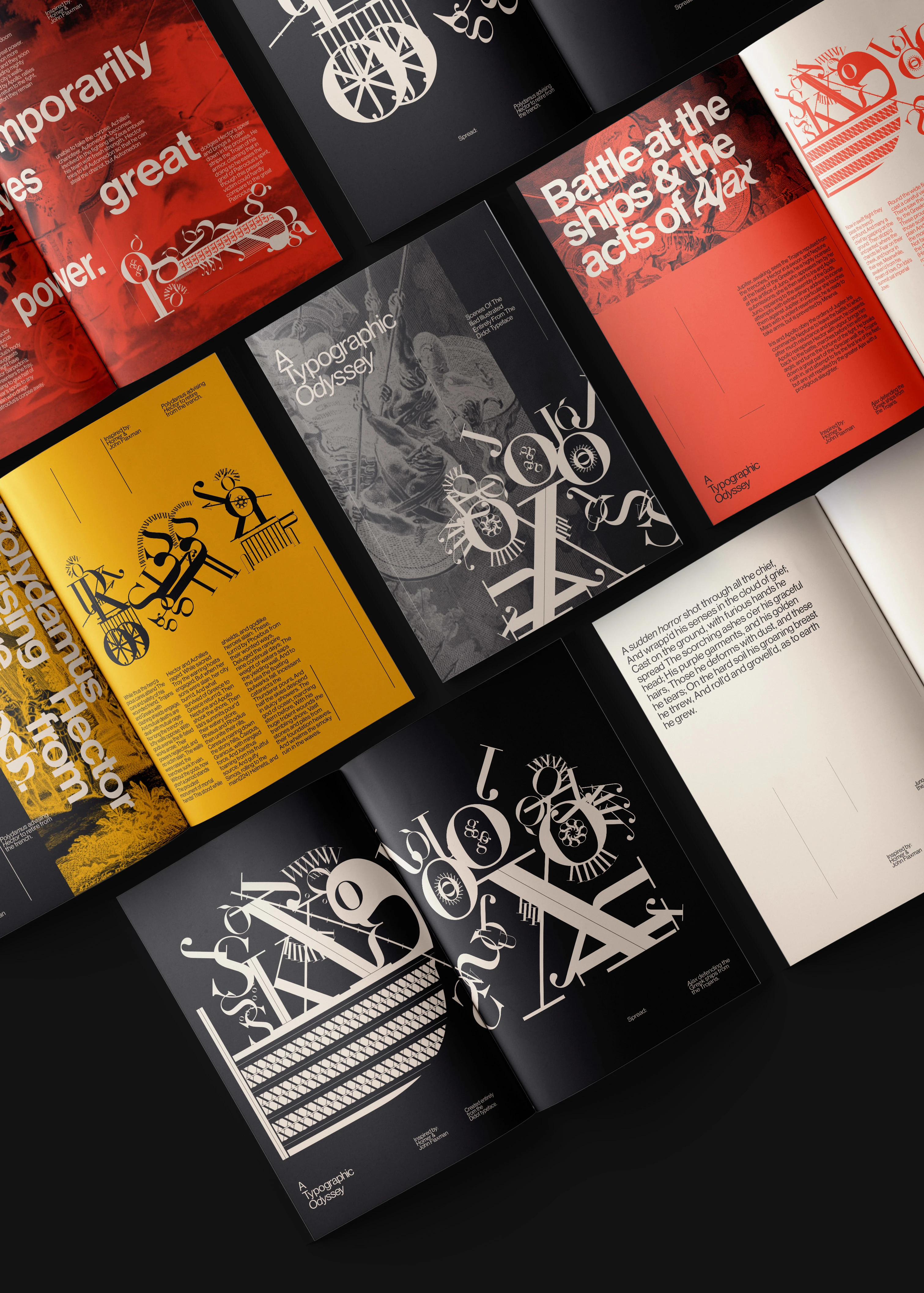 A magazine with scenes from The Iliad, created entirely from the Didot typeface.