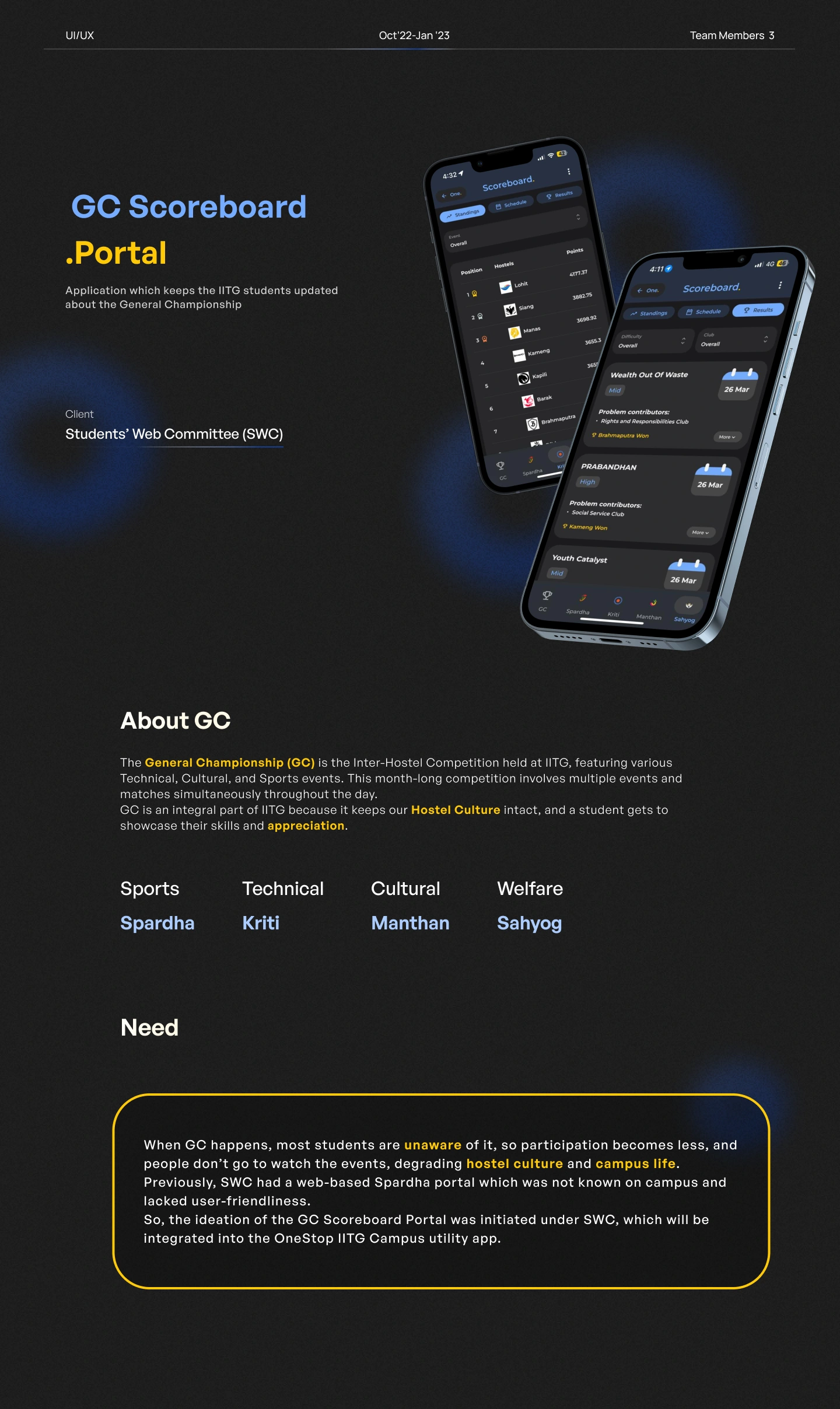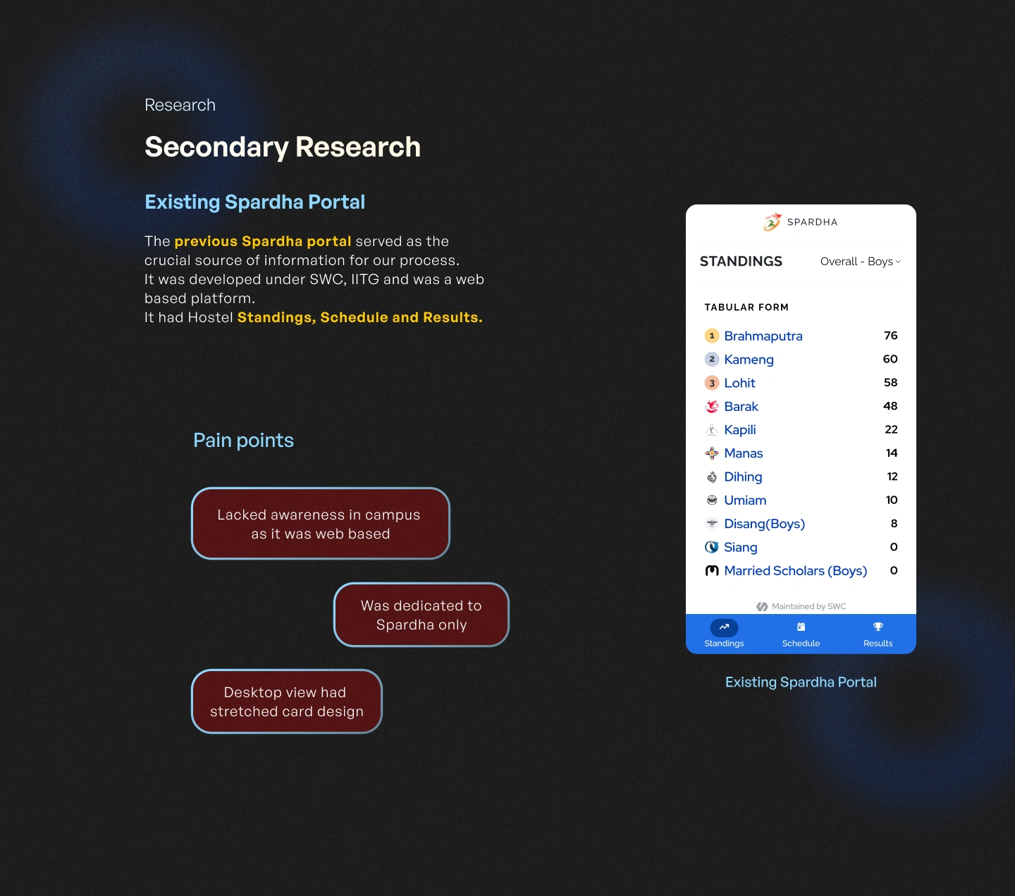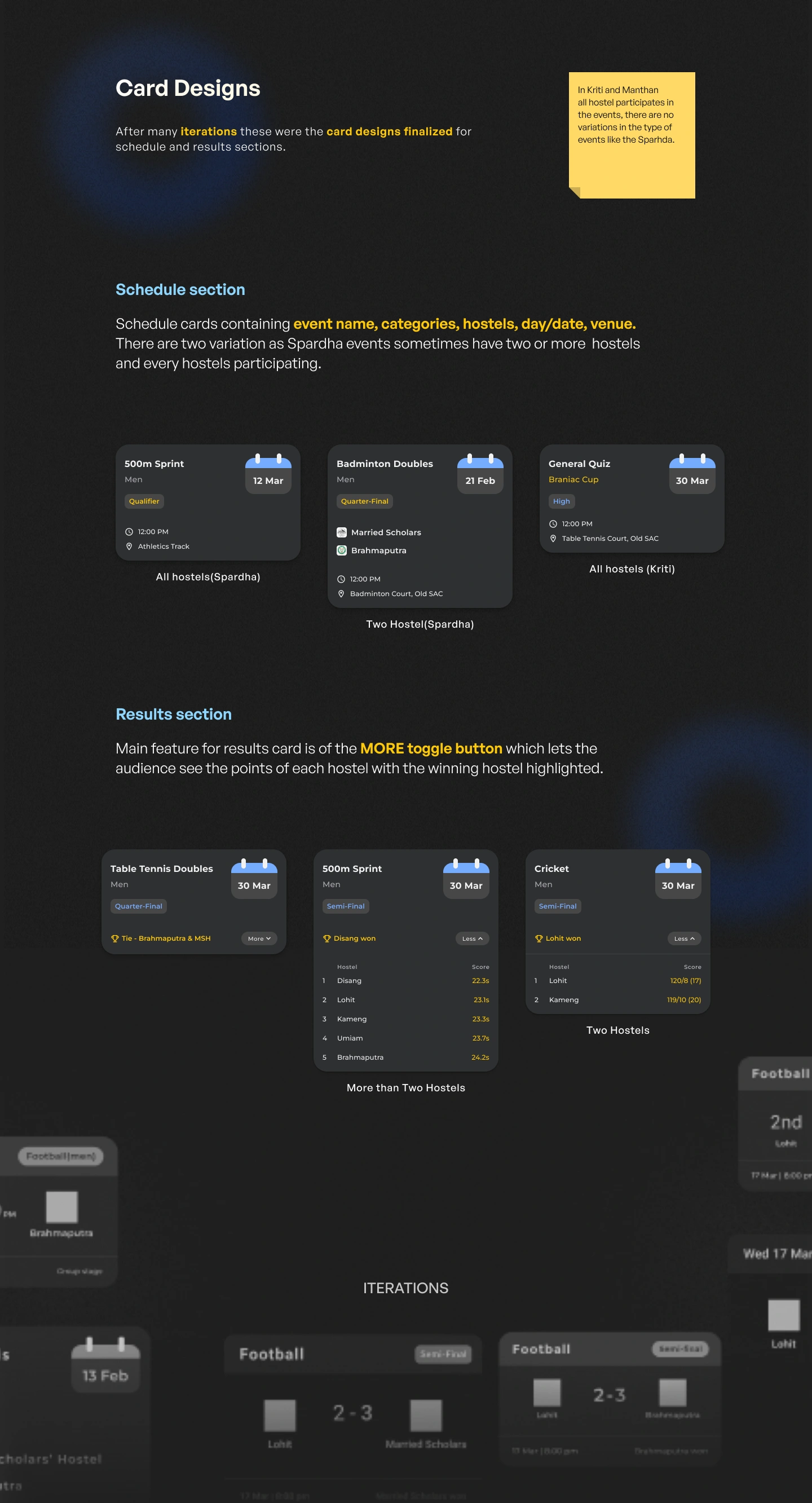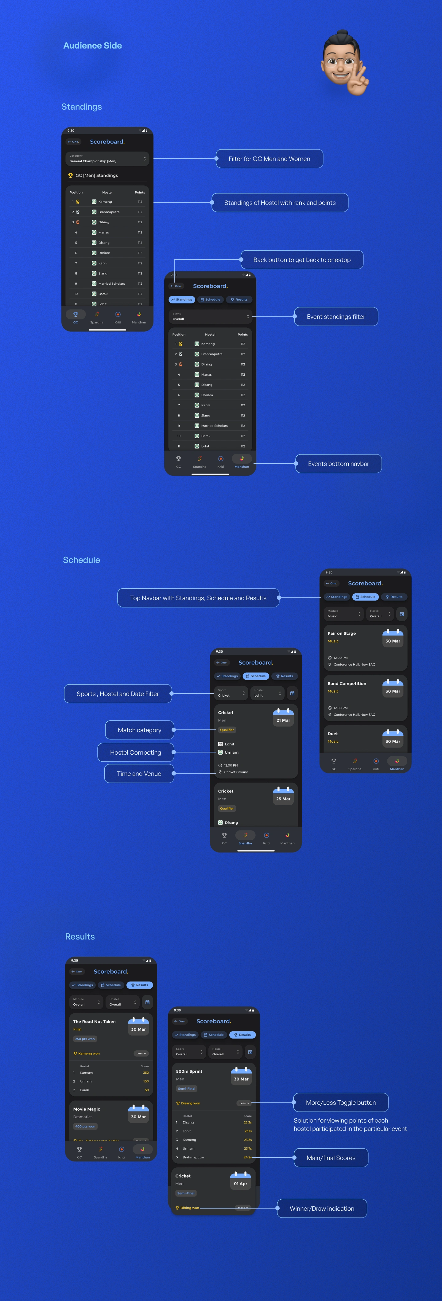Designed a scoreboard app for the inter-hostel competition of IITG, following the design thinking process and handing off to the developers.