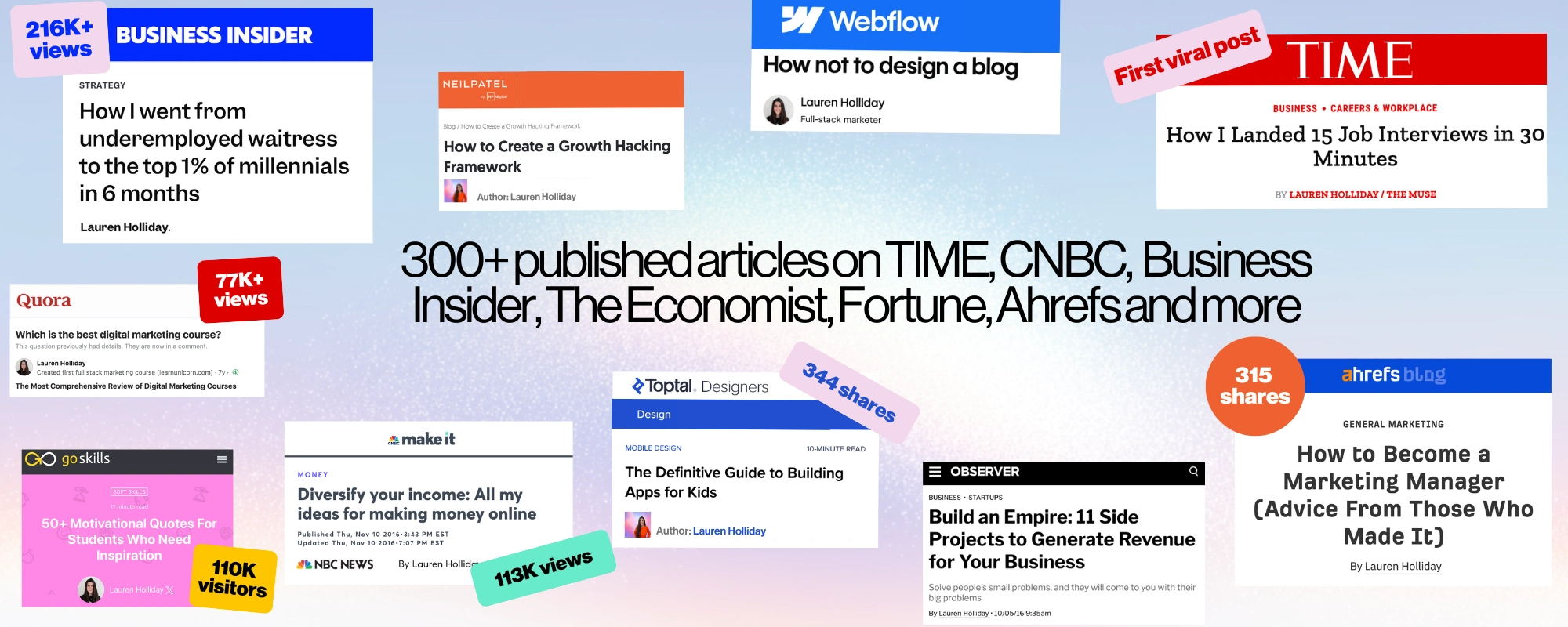 And I’ve also done a lot of ghostwriting for prominent CEOs, VCs, operators and founders, which I can’t share due to NDAs. I’ve also written about relationships/dating, but felt like most people viewing my portfolio wouldn’t be into that type of content.