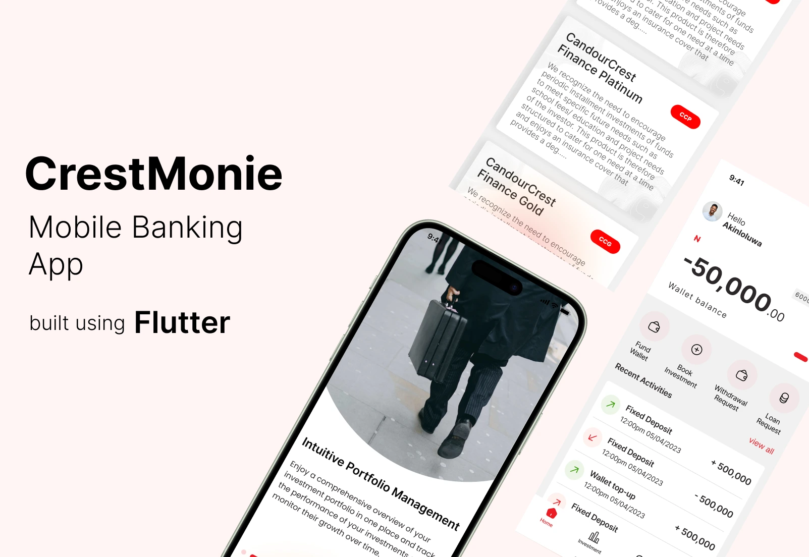 CrestMonie is a mobile banking app built with Flutter, designed to give users full control over their finances. From funding wallets to booking investments and tracking real-time transactions, it brings powerful financial tools into a clean, intuitive interface, making money management smart, secure, and incredibly easy.