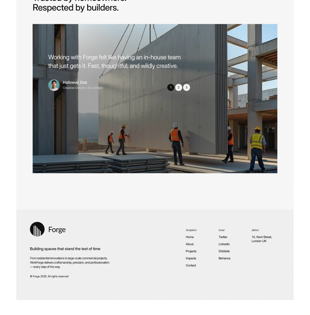 Forge is a modern building and renovation company that needed a clean, credible, and conversion-focused website to represent the quality of their work.