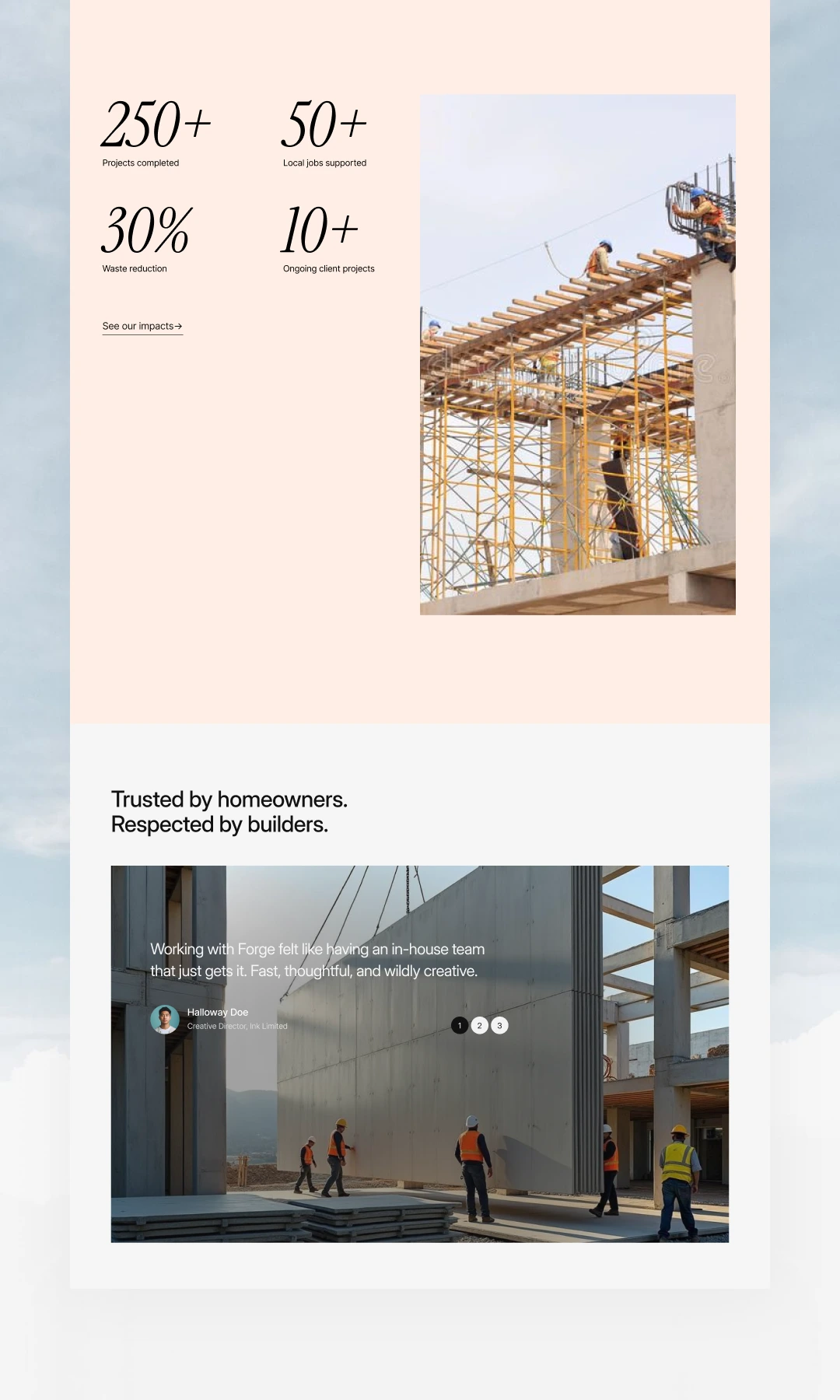 I wrote all headlines and key messaging to reflect Forge’s identity — honest, skilled, and dependable. The tone avoids generic construction clichés and focuses on clarity and credibility.