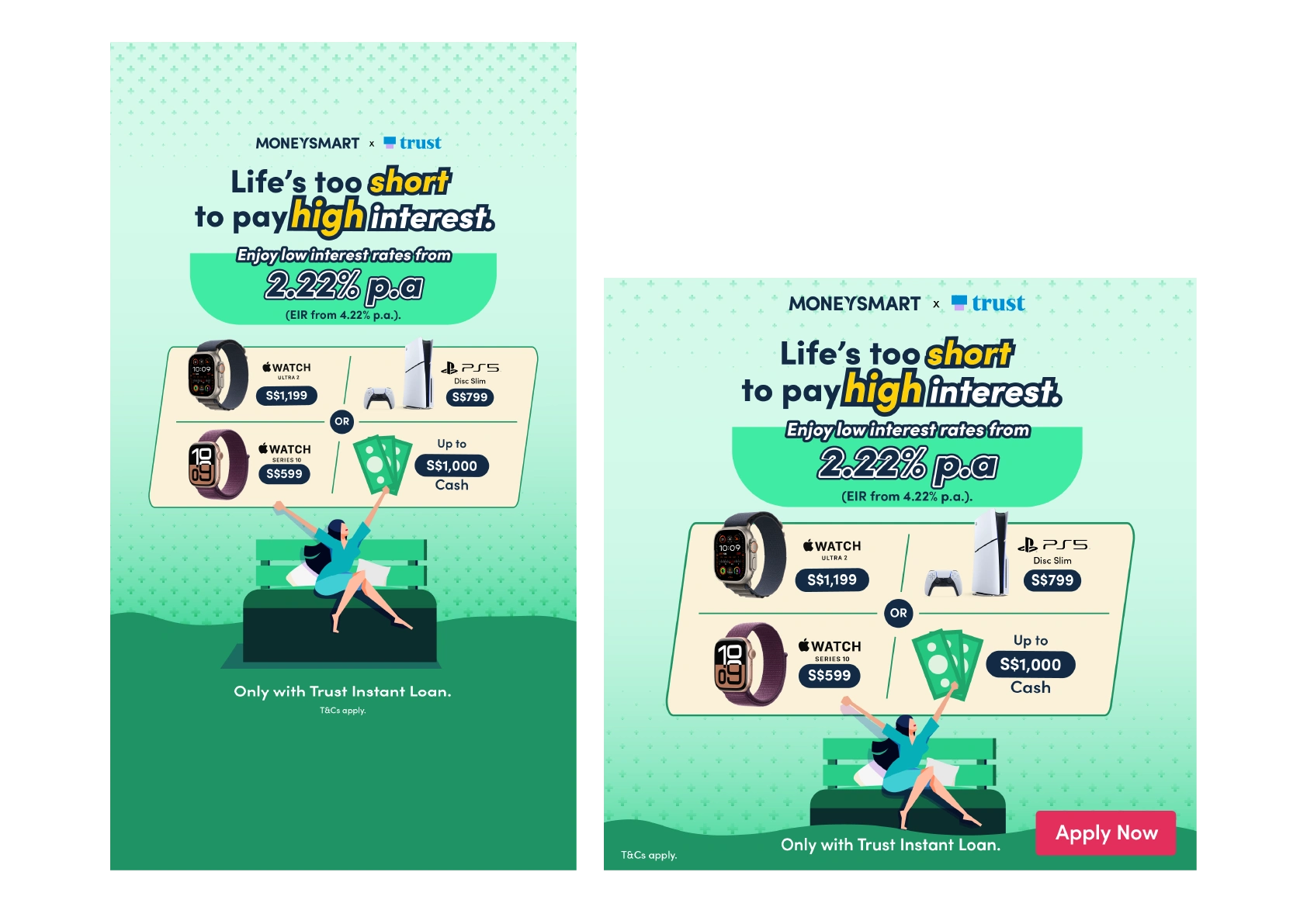 Designed Meta ads for Trust Bank's Instant Loan, boosting awareness and sign-ups.
