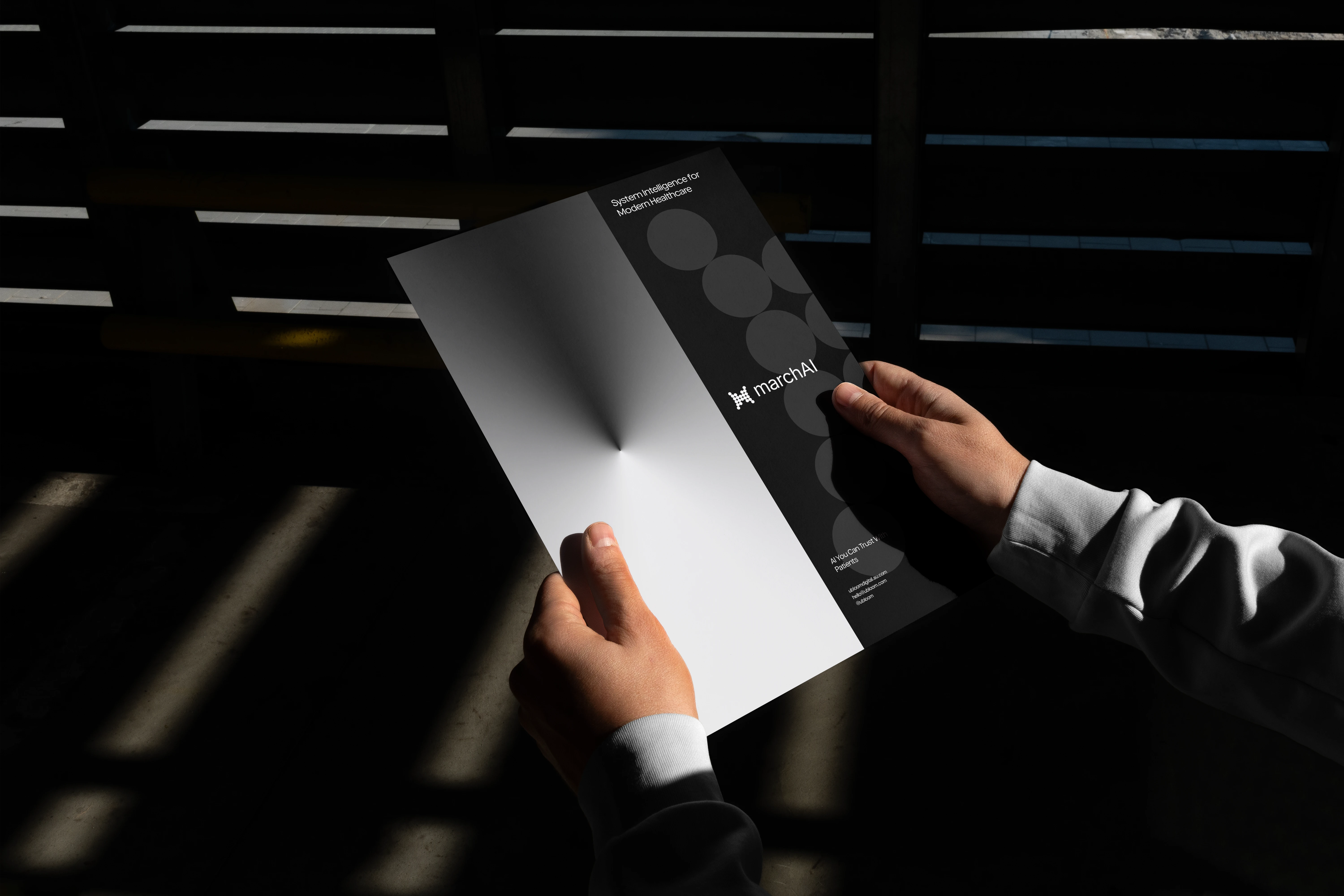 No AI clichés. No noise. Just structure and clarity. Building the identity for MarchAI — the intelligence layer for hospitals.