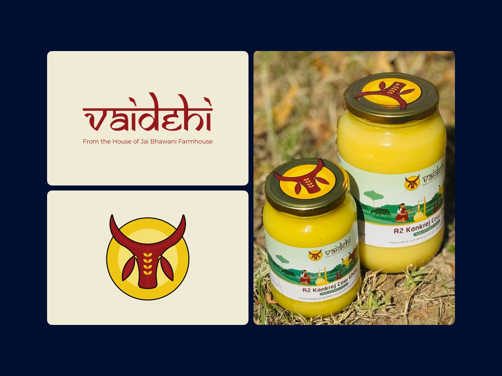 Vaidehi Ghee aimed to revive the essence of Indian ghee-making, slow-crafted, pure, and rooted in culture. The challenge was to translate that authenticity into a modern brand identity that felt premium yet grounded in tradition. Every design element, from logo to label, had to communicate trust, heritage, and warmth while standing strong in a competitive retail space.