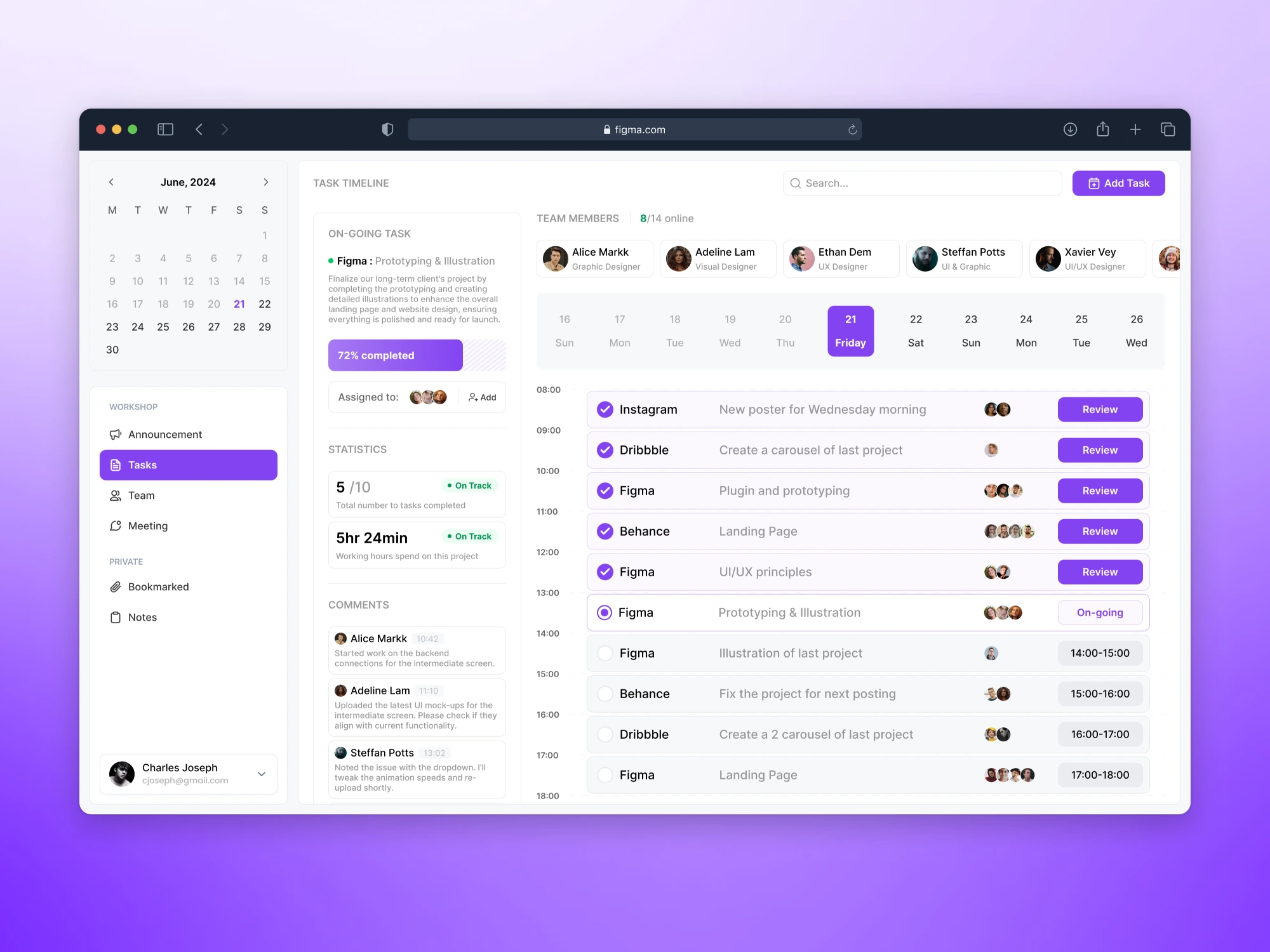 Check out our latest explorations for a team scheduling dashboard designed for remote and async teams. Easily track your team's progress, sync up schedules, and plan ahead without worrying about schedule clashes. We'd love to hear your thoughts! Hope these designs inspire you. Enjoy! 😁