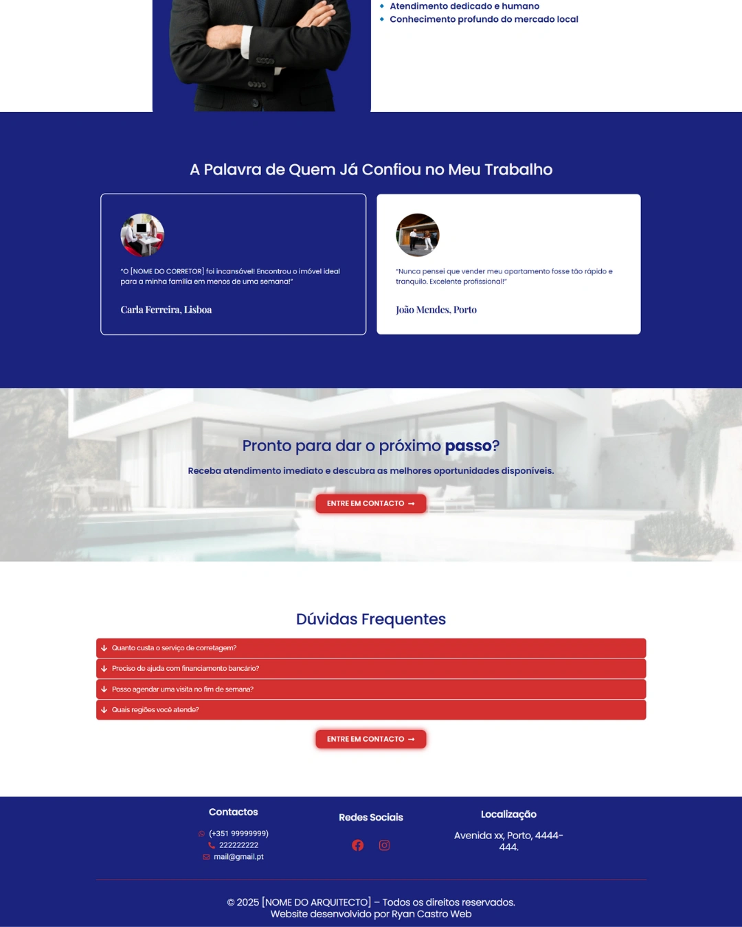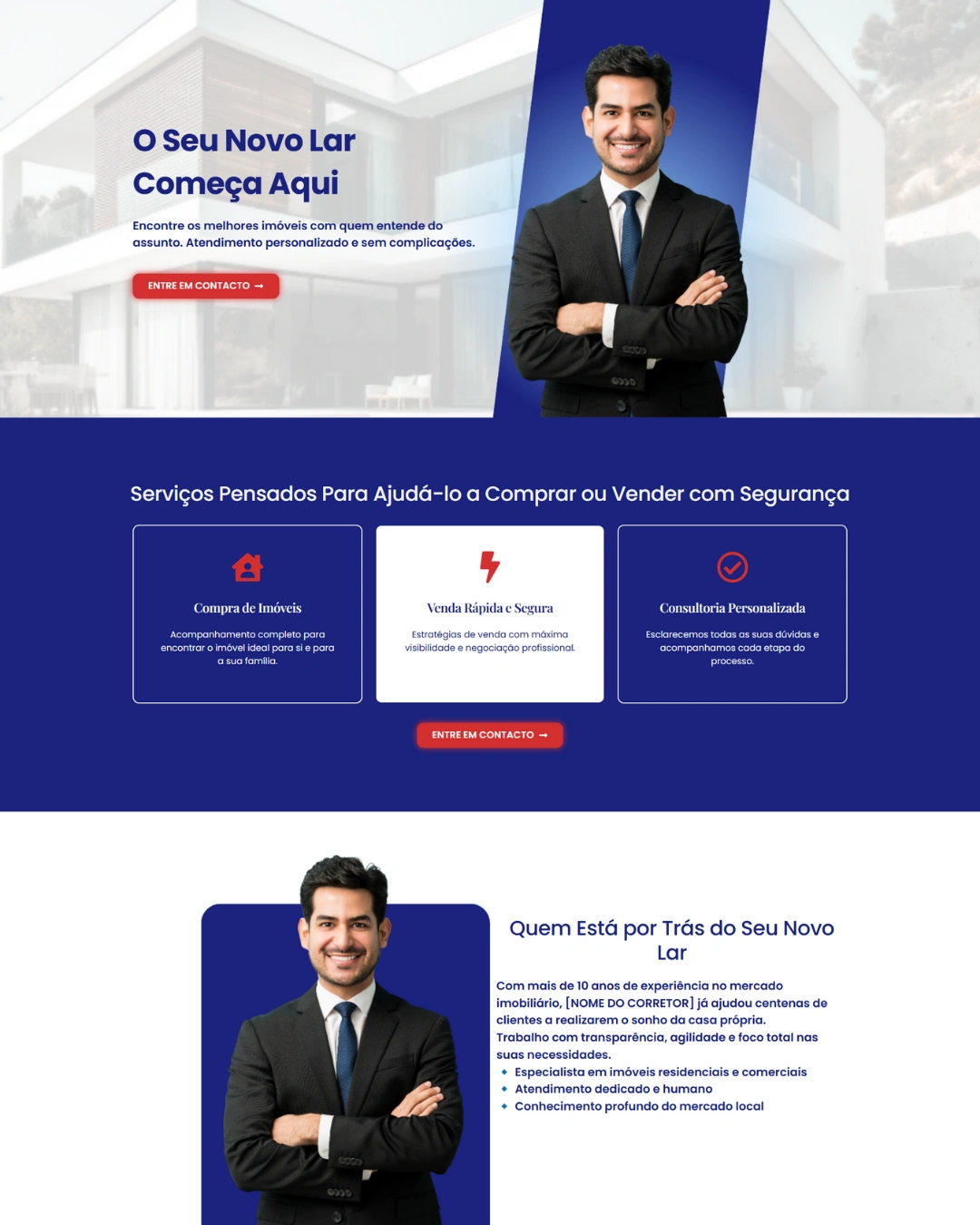 Real estate Landing Page model with clear communication, professional image, and trust-building structure to attract and convert clients online.