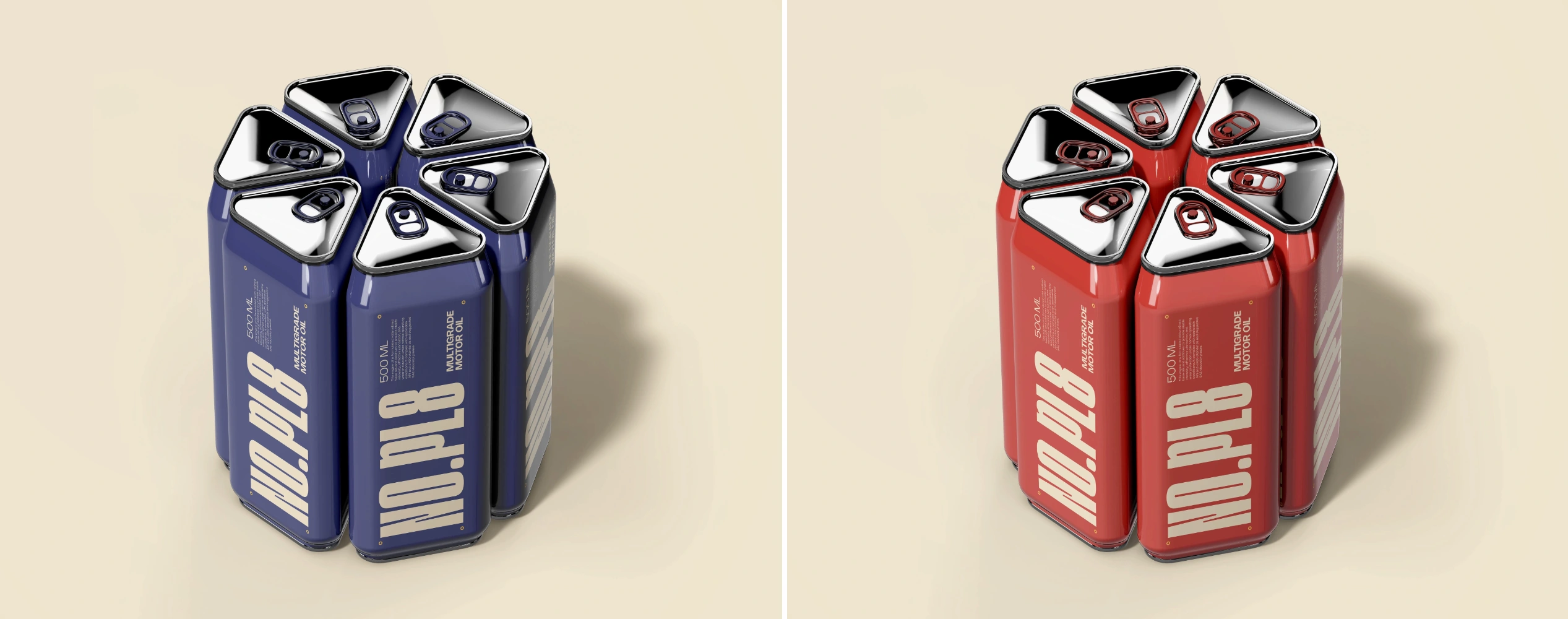 For the smaller packs, the design is directly inspired by number plates. The proportions, layout, and surface treatment reflect that reference closely, making the connection to the concept immediate and clear. As the format scales up, the approach shifts slightly. The mid-sized containers introduce striped graphics inspired by road dividers. This adds visibility and movement, while still staying rooted in the language of the road. For the larger containers, the focus becomes purely functional. These are treated as bulk storage units, where clarity and usability take priority over form-driven references.