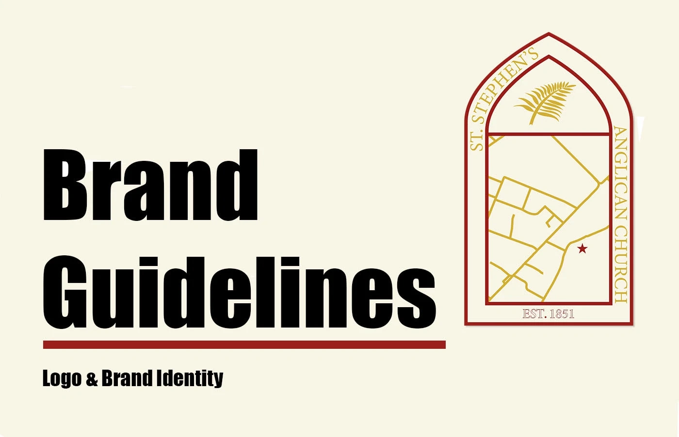 St. Stephen’s Anglican Church brand identity project: logo, colors, fonts, and symbolism capturing heritage, faith, and community since 1851.