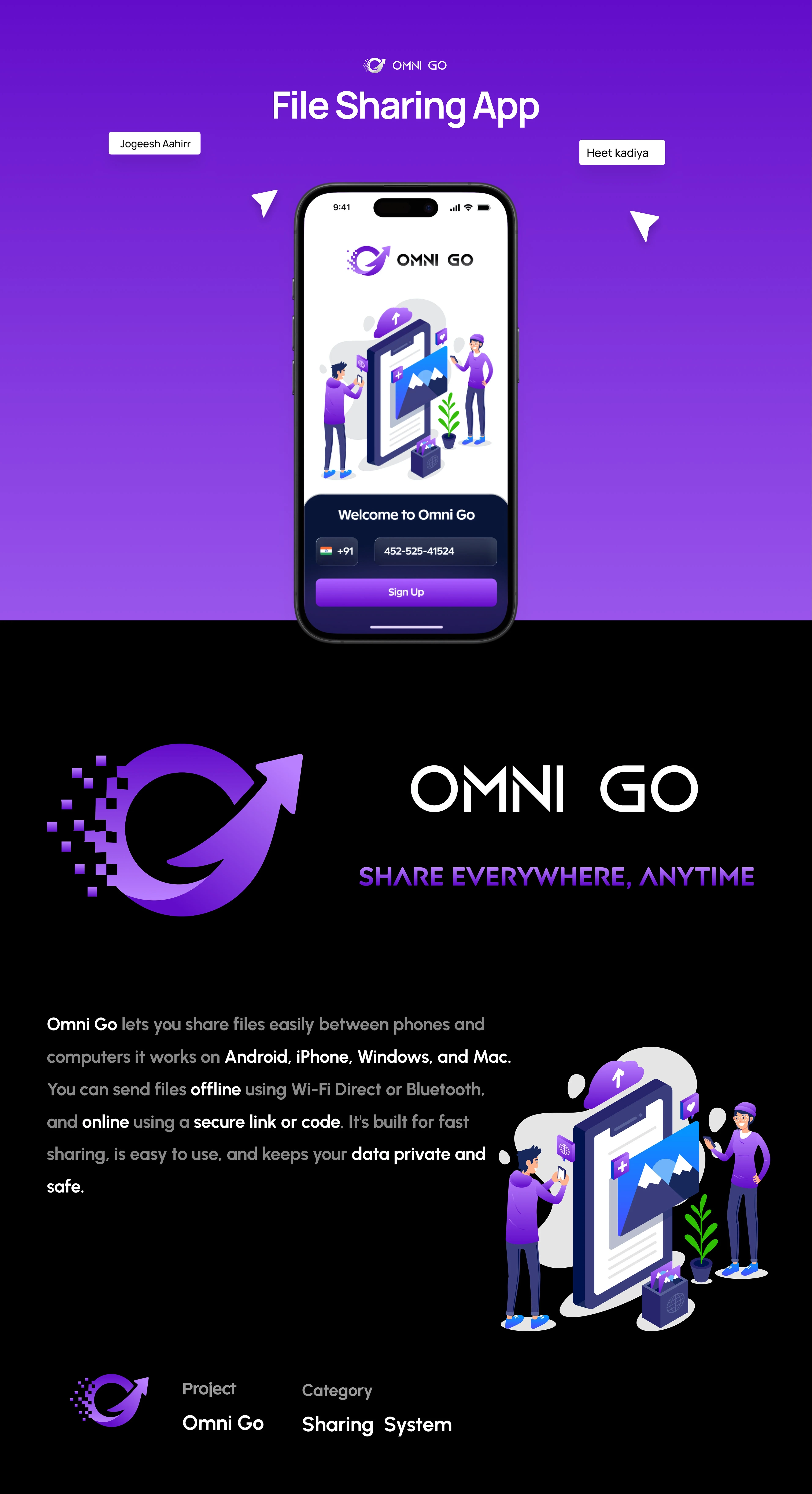 Omni Go lets you share files easily between phones and computers it works on Android, iPhone, Windows, and Mac. You can send files offline using Wi-Fi Direct o…