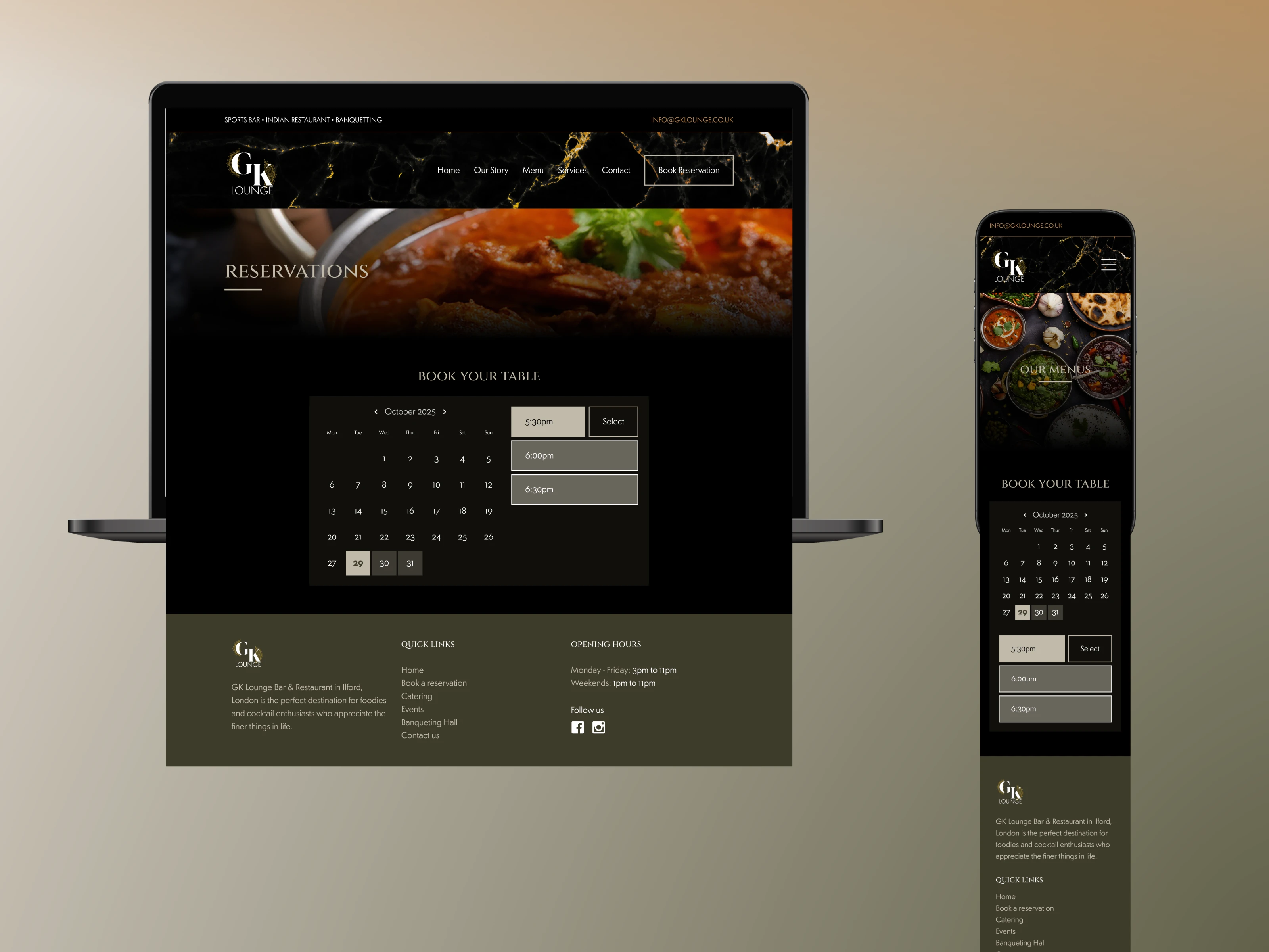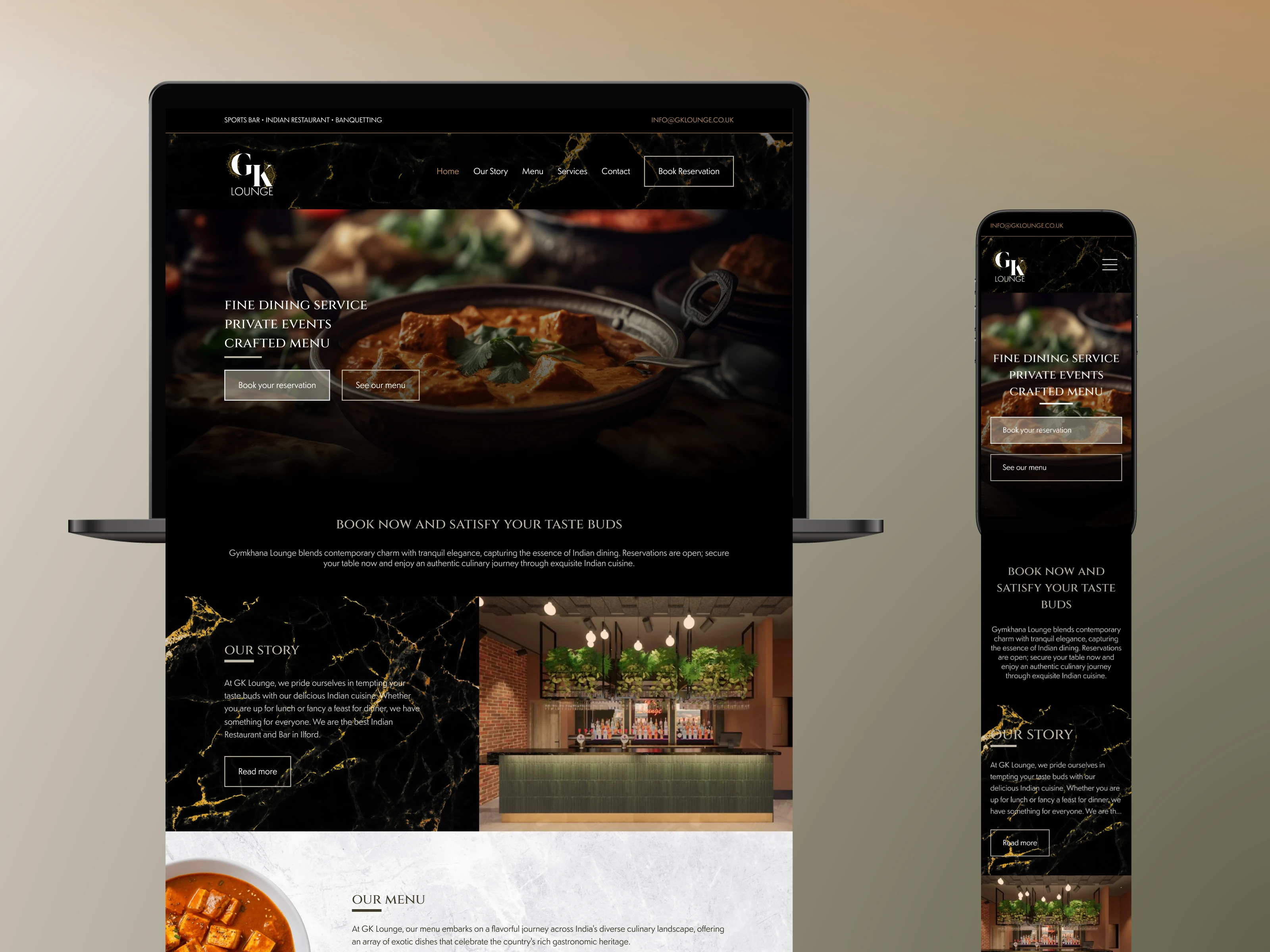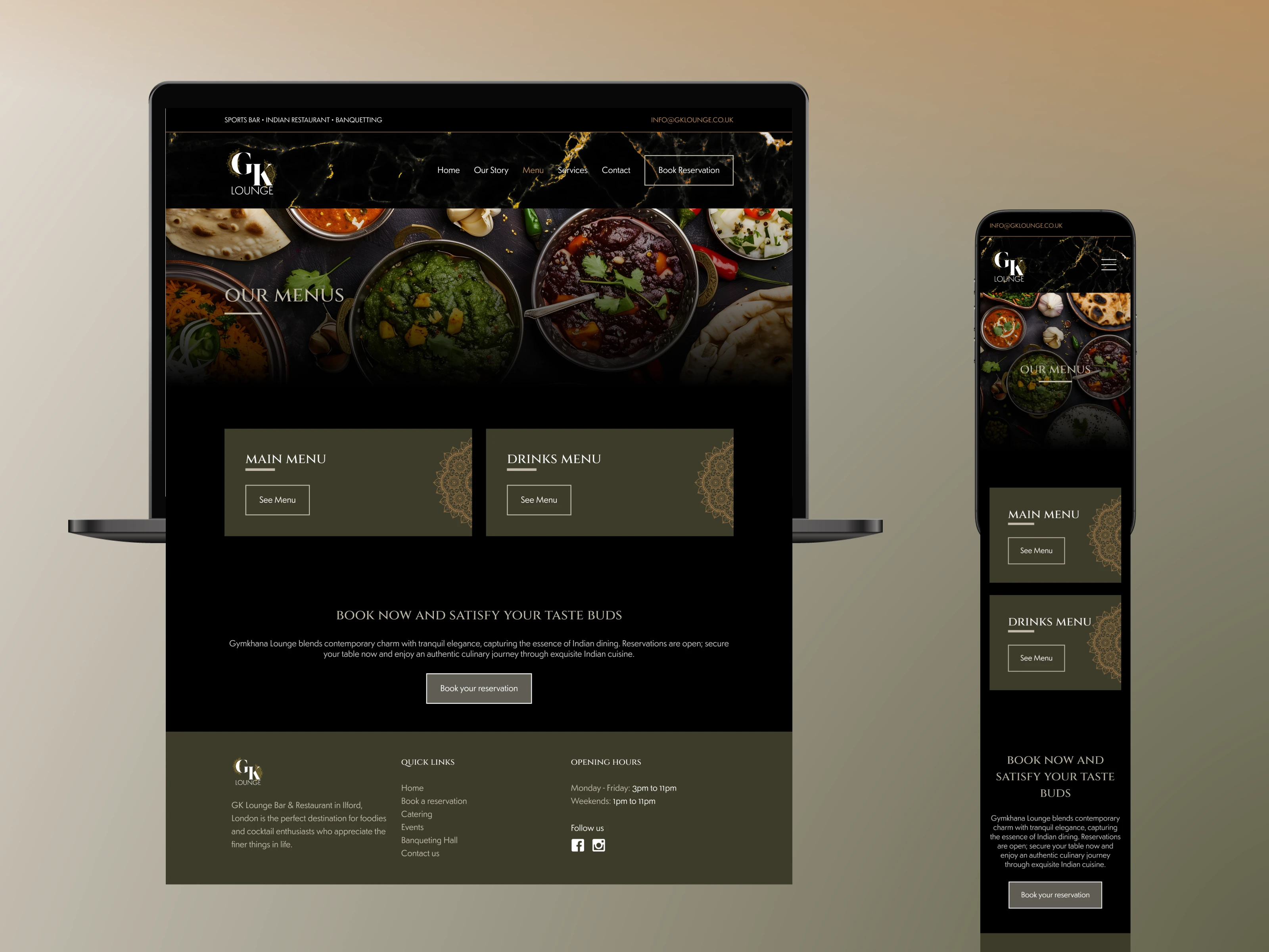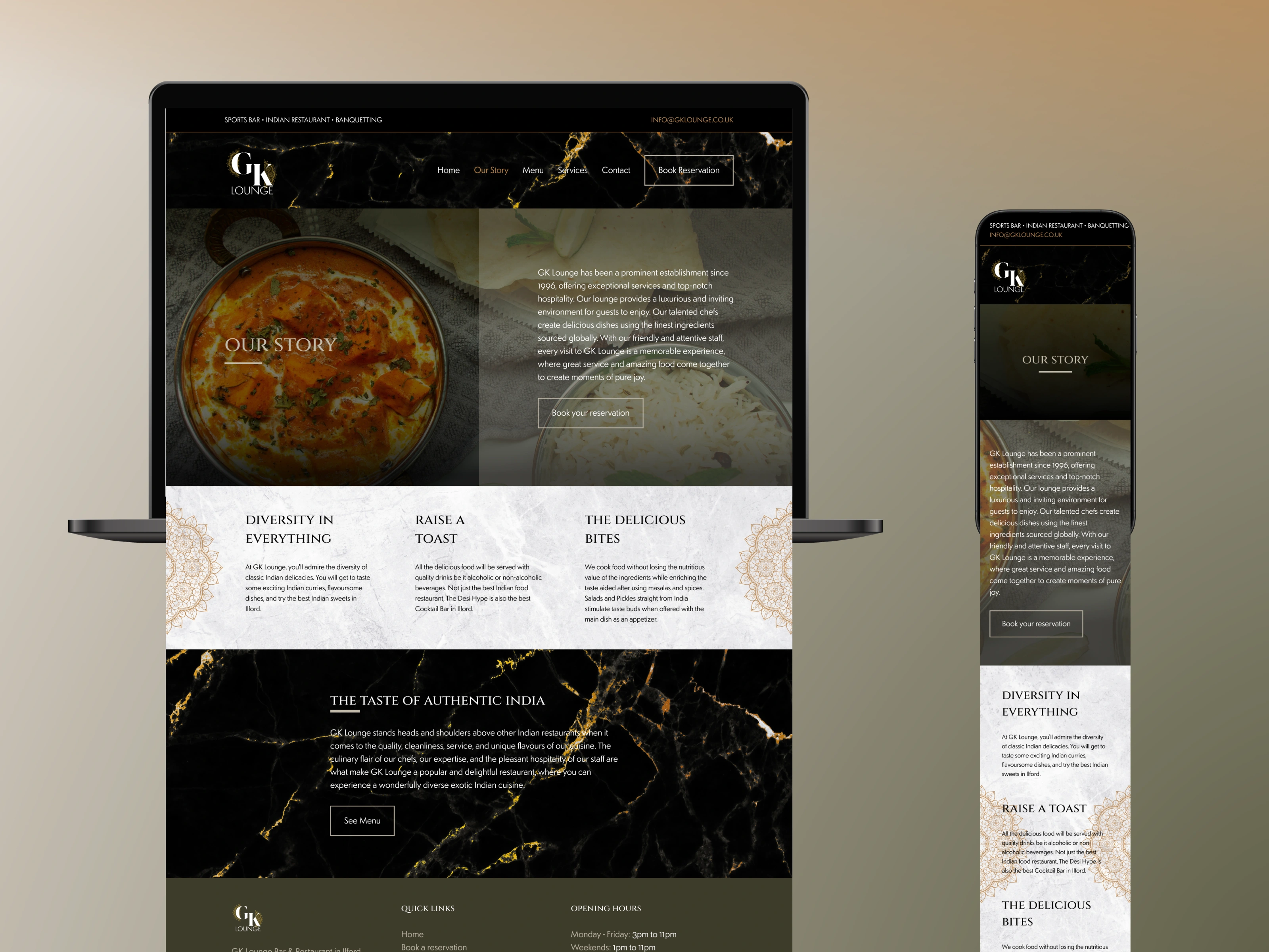 The GK Lounge website redesign aimed to elevate the restaurant’s digital presence by creating a more intuitive, modern, and conversion-focused experience. The existing site lacked clarity, structure, and engagement, making it difficult for users to browse menus, book tables, or learn about events. The redesign focused on improving navigation, introducing live reservations, enhancing visual storytelling, and ensuring the brand reflected the premium dining and social experience of GK Lounge. The result was a responsive, high-impact website that improved usability, trust, and online bookings.
