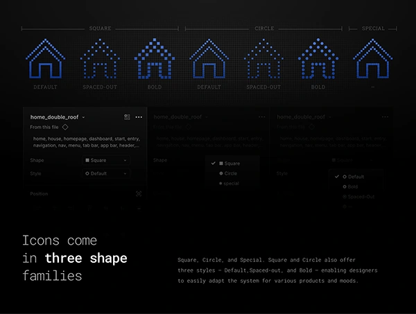This icon library was built to serve designers who want pixel-accurate, grid-consistent, multi-style iconography that scales across enterprise interfaces, product design systems, and future content like LED dashboards, smartwatch UI, dot-matrix displays, and more.
