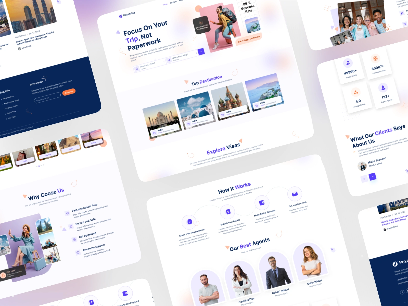This website design has a fresh, clean look perfect for a visa agency, making the whole experience feel approachable and stress-free. It’s easy to find your way around, with everything laid out clearly so users can quickly get the information they need. The soft colour scheme and gentle gradients give it a professional yet friendly vibe, making the site feel trustworthy and inviting.