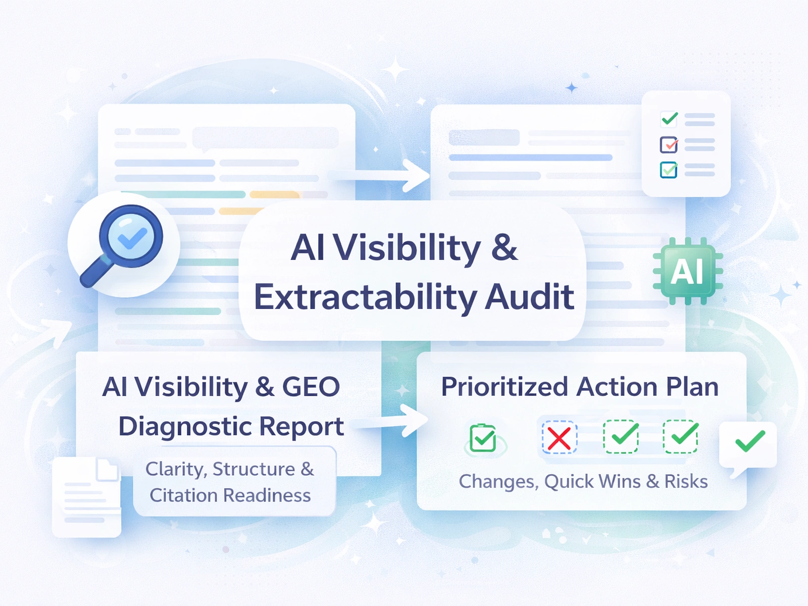 Demo case study on a public SaaS page (no affiliation). Original deliverables: 1-page AI visibility/GEO diagnostic + prioritized action plan (PDFs).