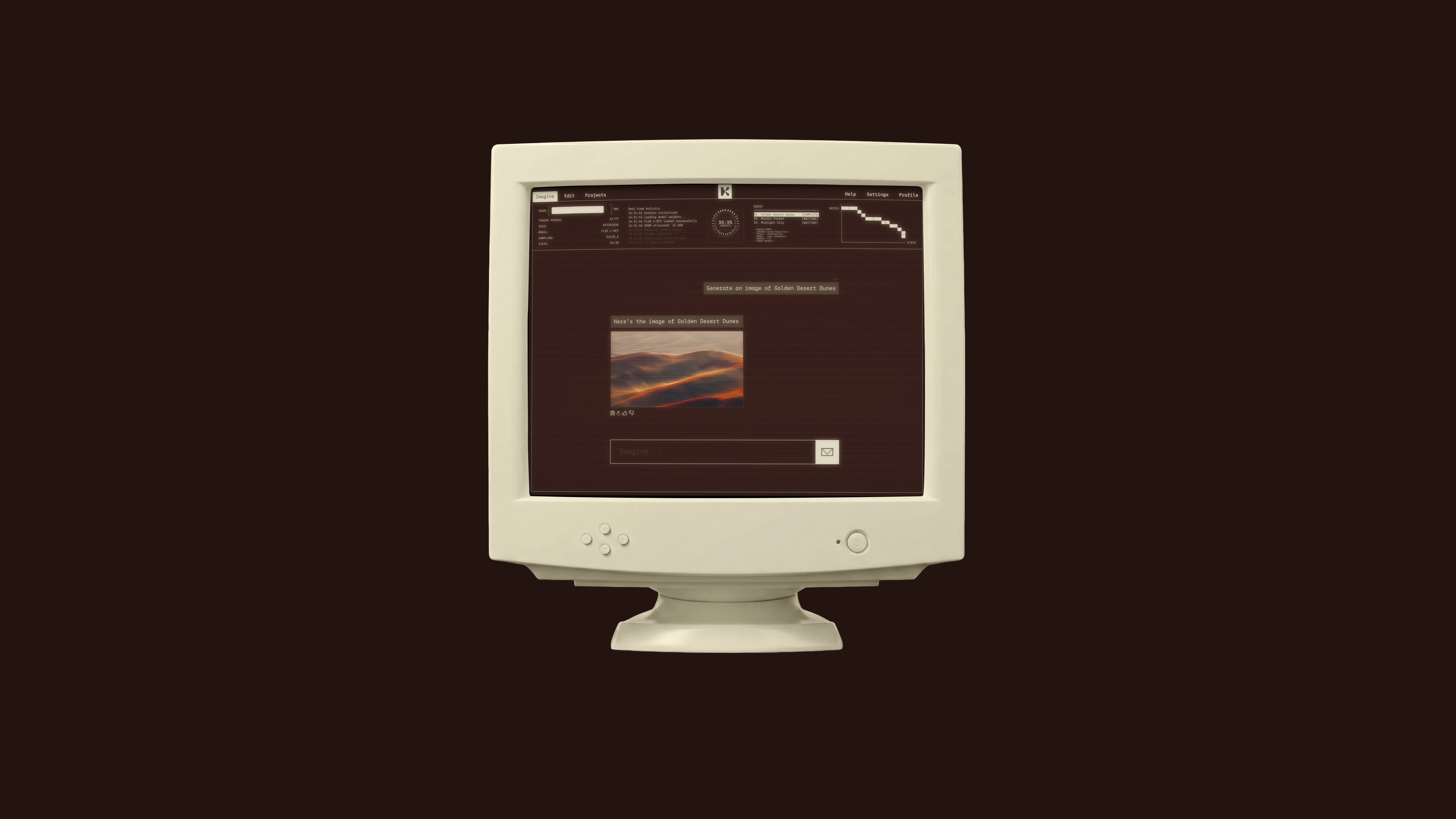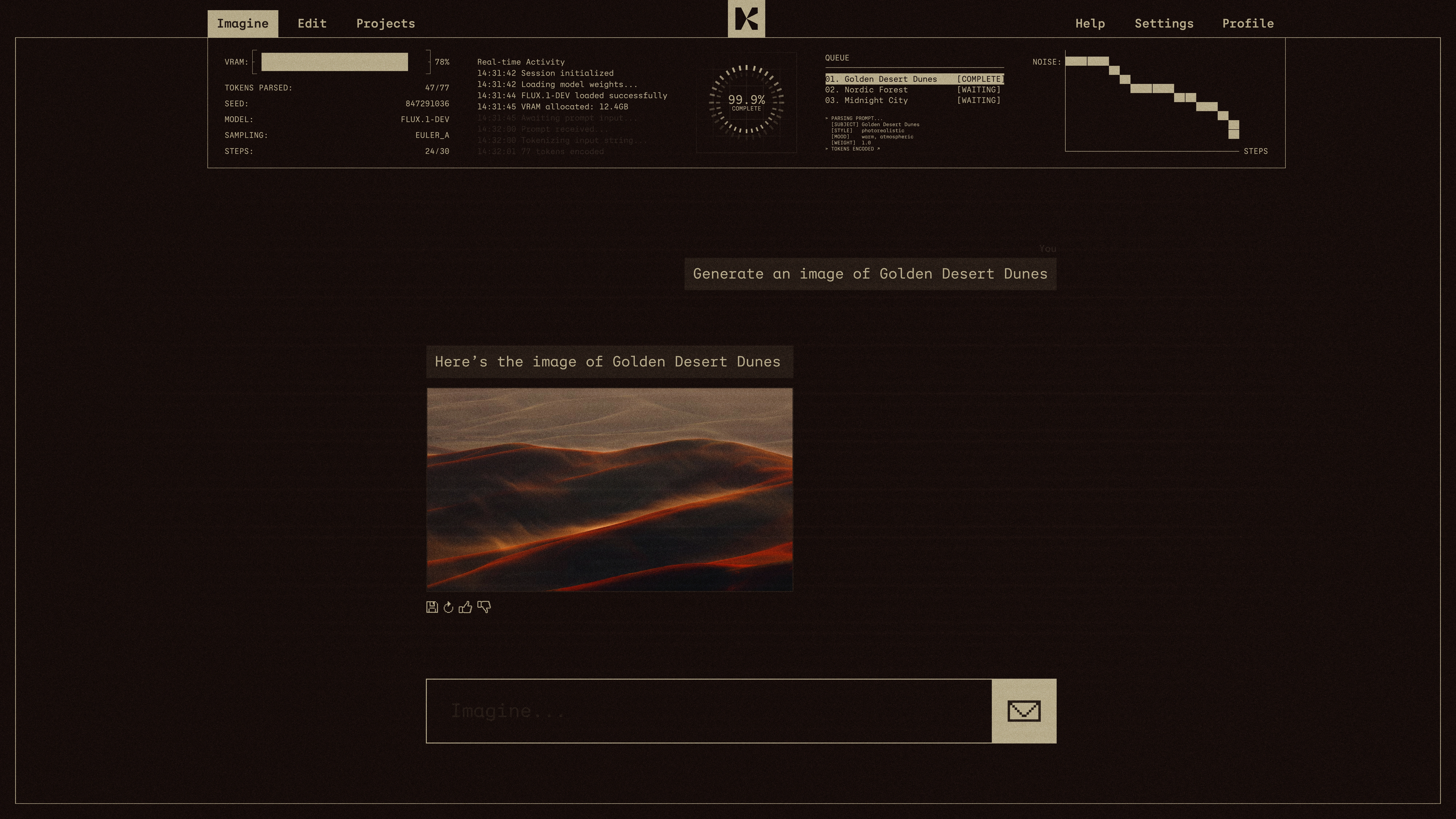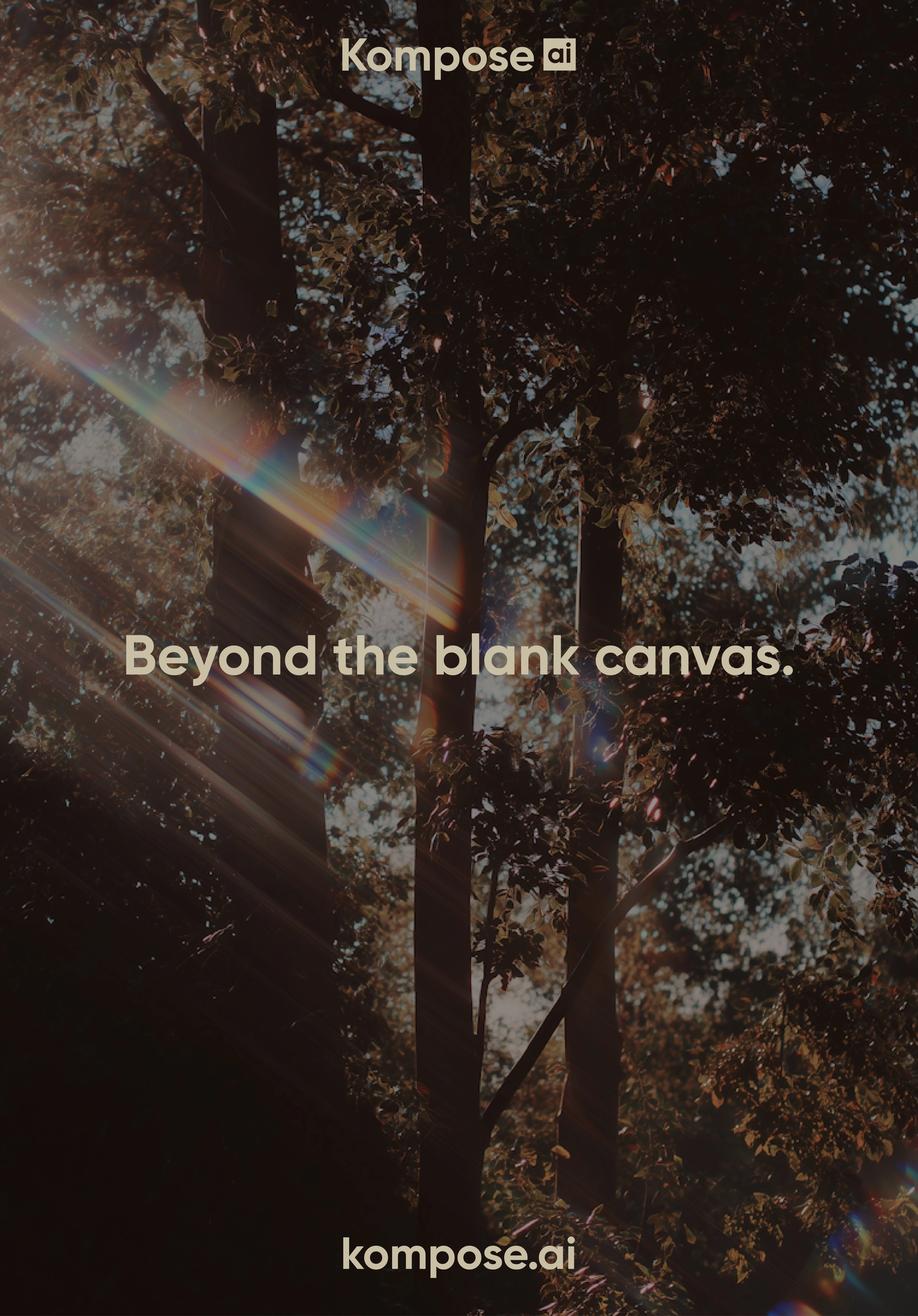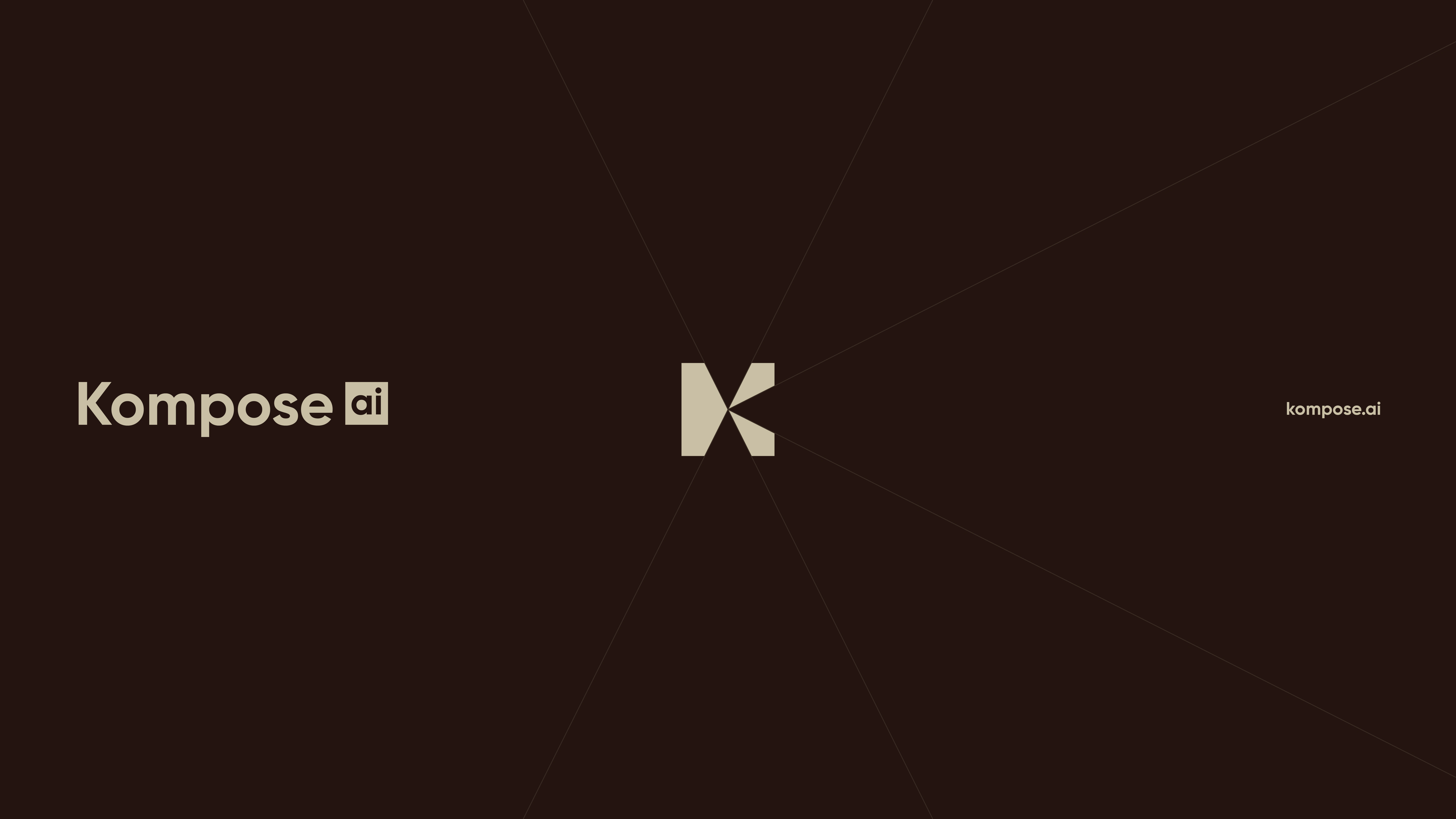 A restrained, almost editorial palette. Deep espresso brown as the base, warm bone as the counterweight. No neon, no gradients, no AI-cliché iridescence. The system is built to feel closer to a fashion publication than a tech product. The K-mark frames every image, turning each render into something seen through a lens, not generated in a tab. Type is a clean geometric sans, set tight and confident. Imagery does the emotional work. Cinematic light, real grain, soft motion, faces in shadow. The product is AI. The feeling is film.