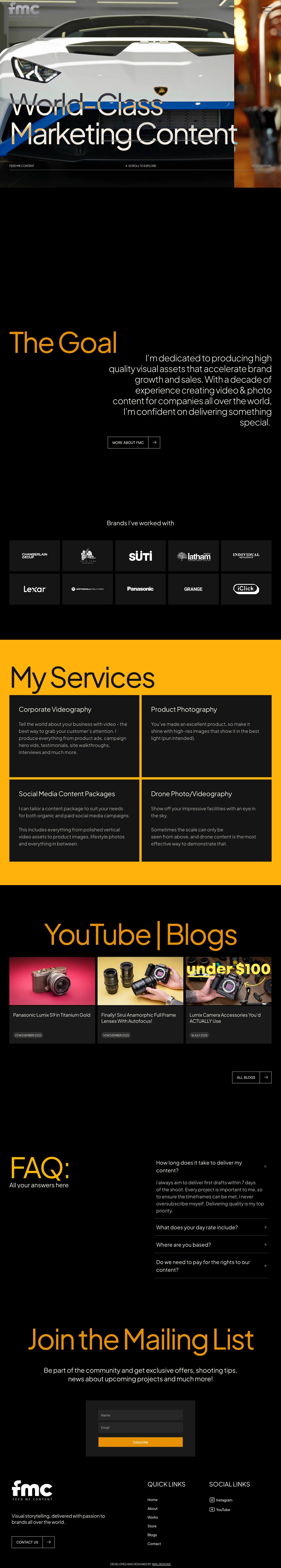 I designed and developed the Feed Me Content website on Framer, showcasing Josh’s videography, photography, YouTube content (30k subscribers), and online store.