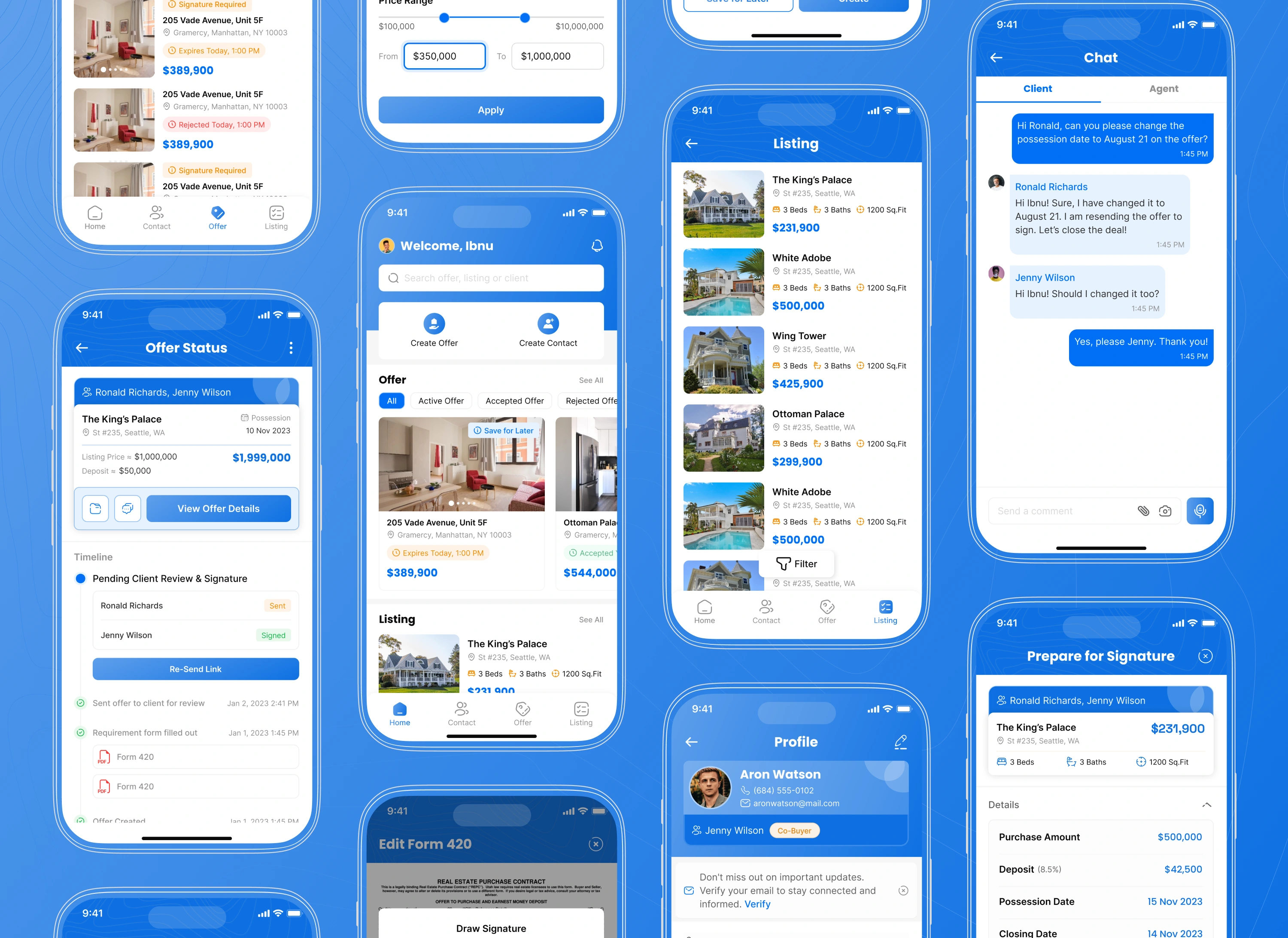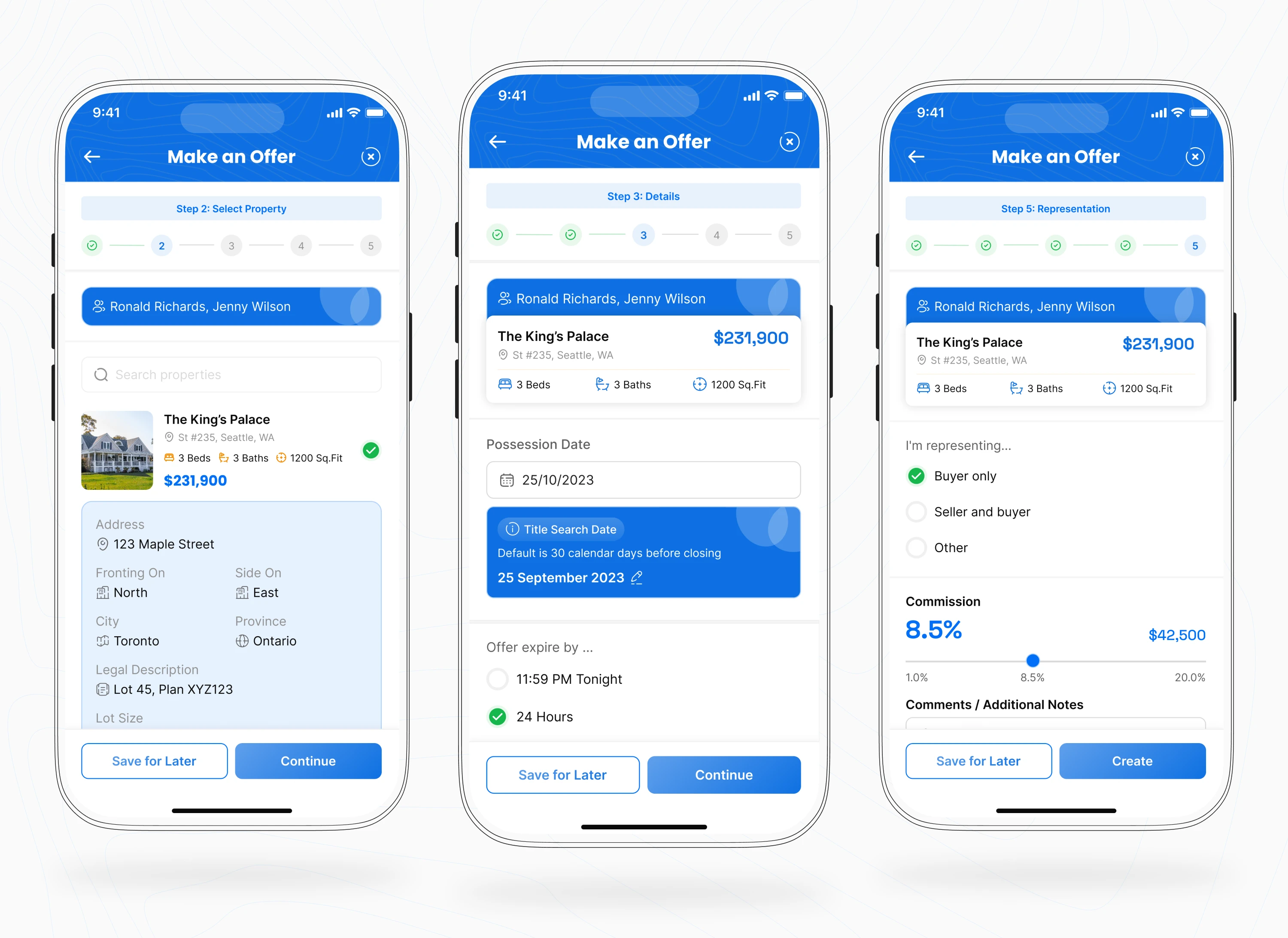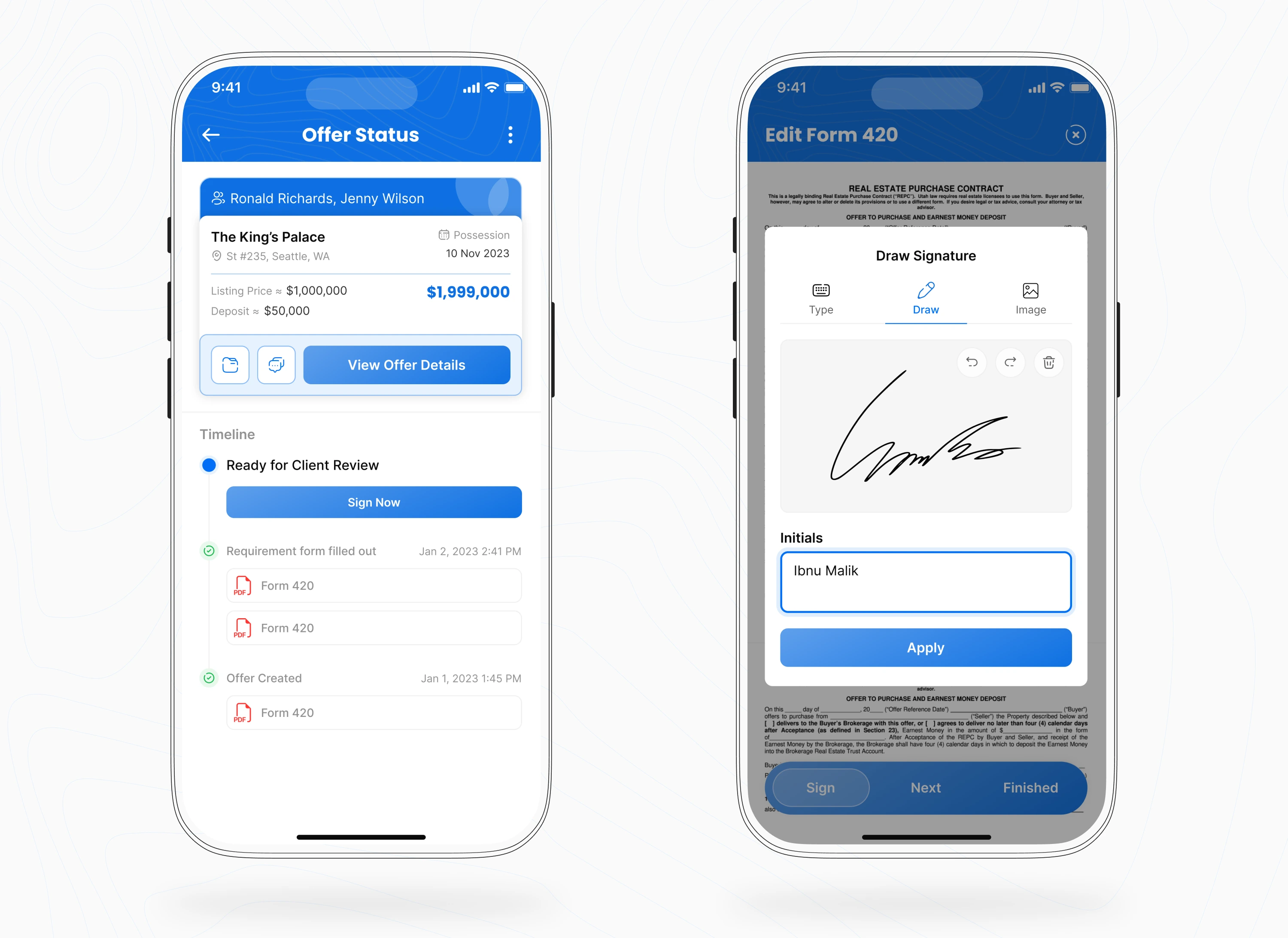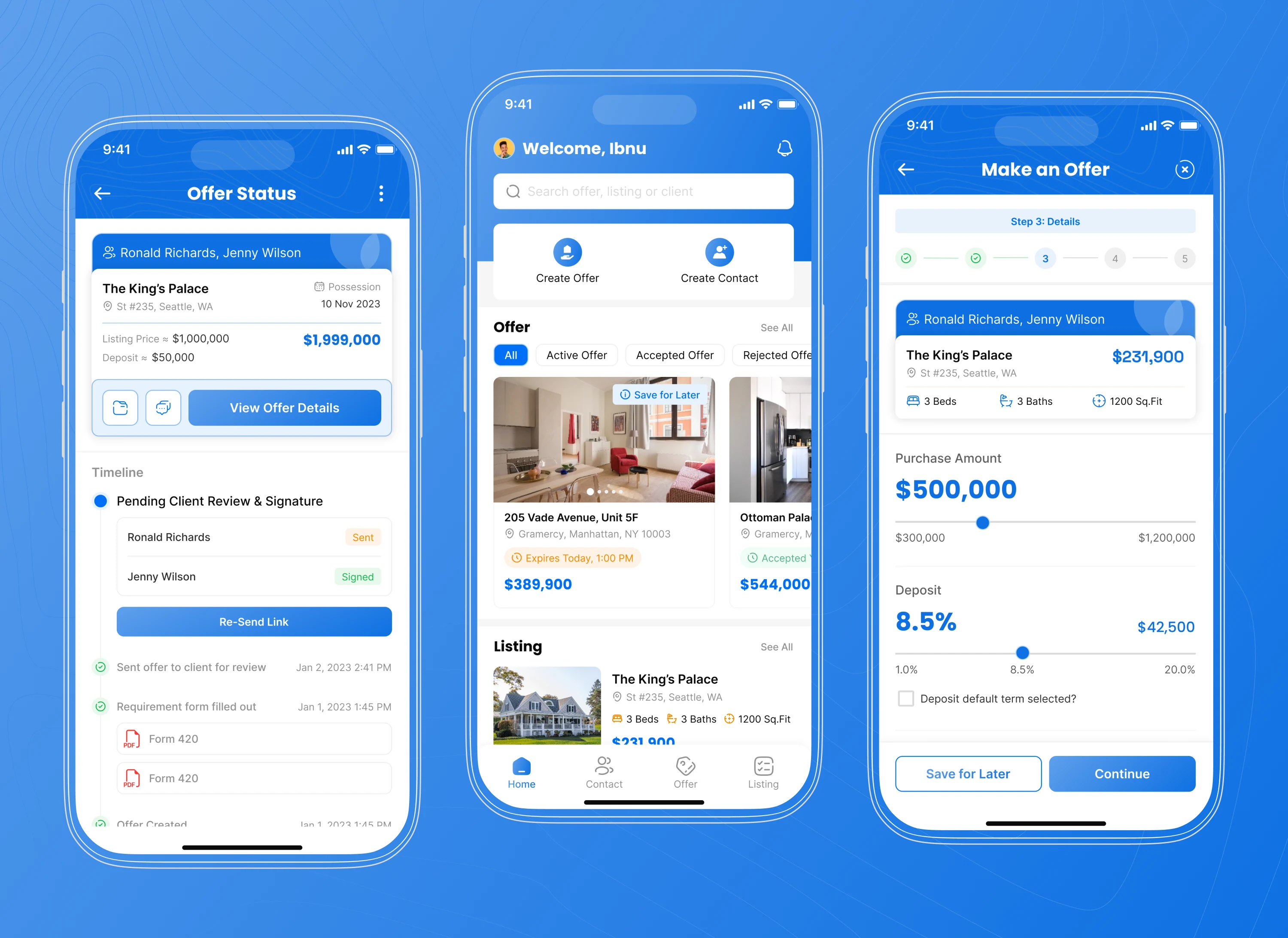 OfferNow aims to revolutionize the real estate industry by addressing key pain points such as signing delays, inefficient back-office workflows, and the lack of transparency in real estate transactions. The mobile app is designed to support two distinct user types—Agents and Clients—each with their own set of tools to manage offers, contracts, communication, and transaction status updates.