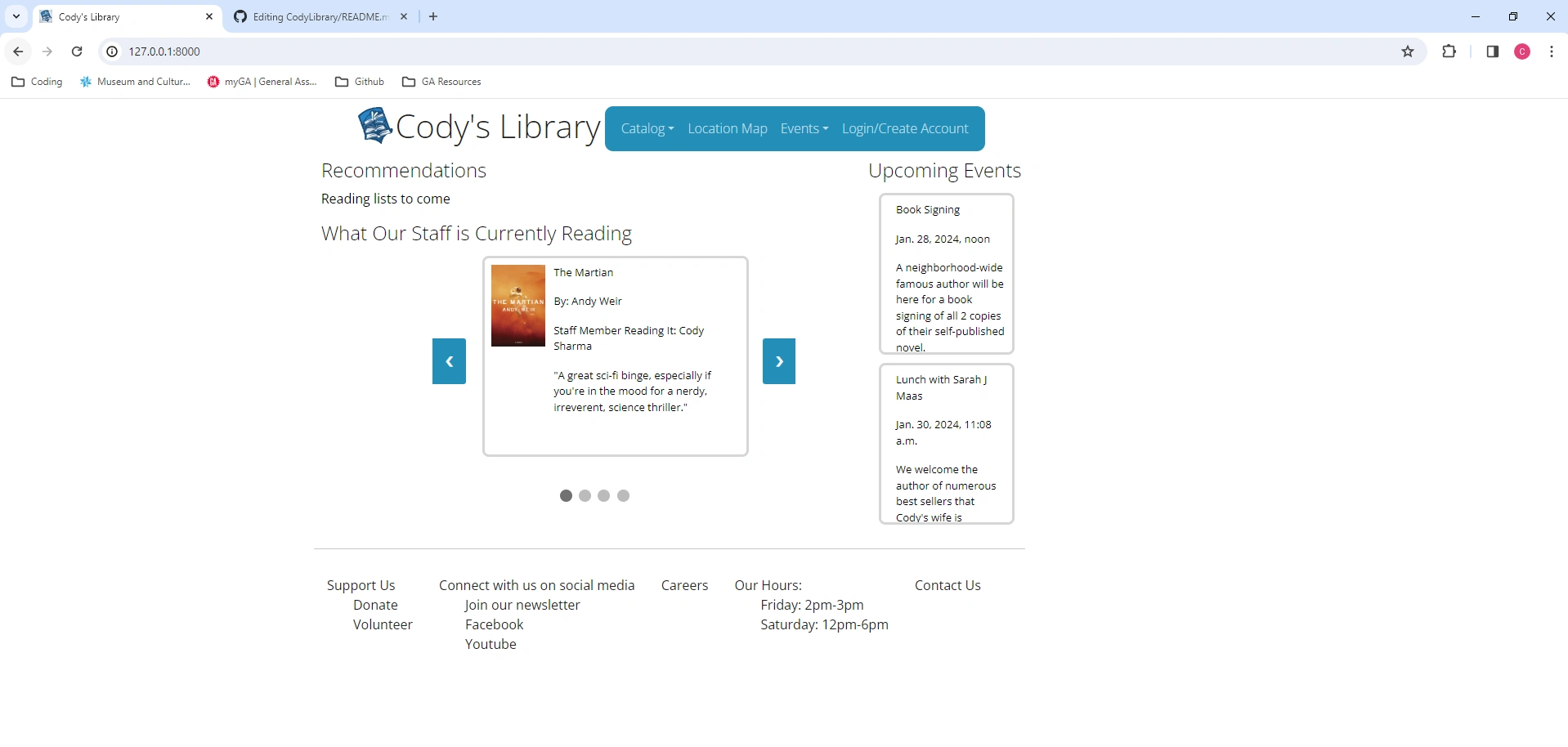 I modelled this website on the Denver Public Library site, centering on a book collection database as well as events.