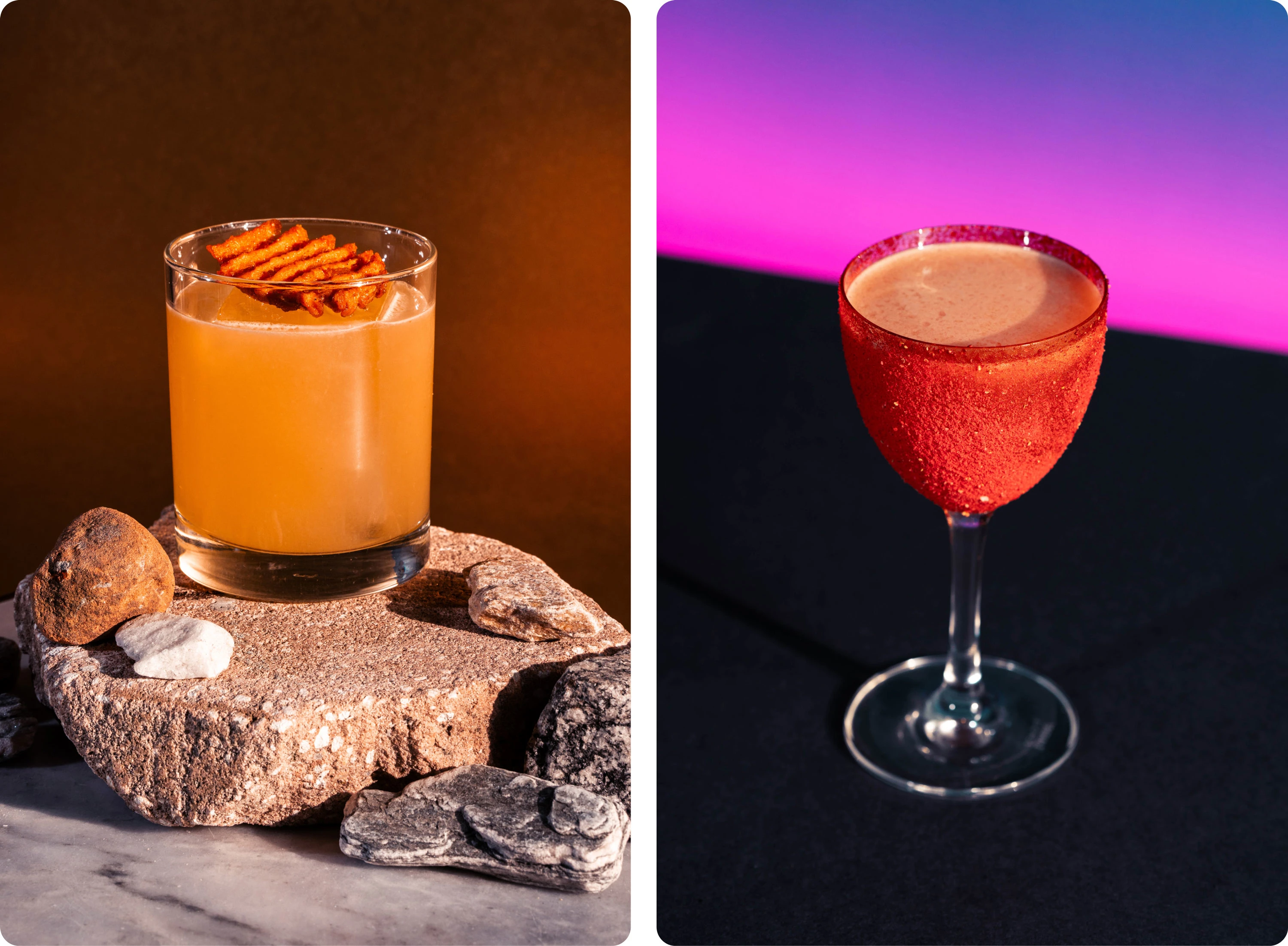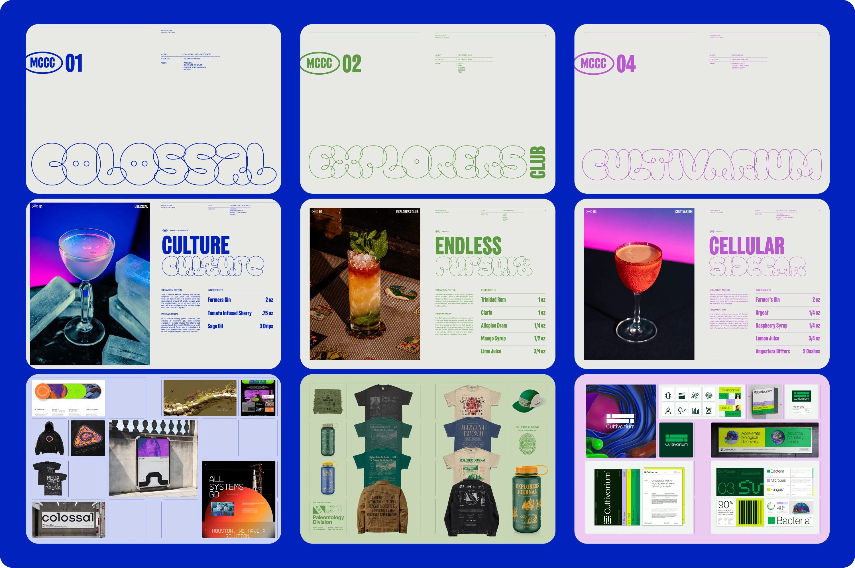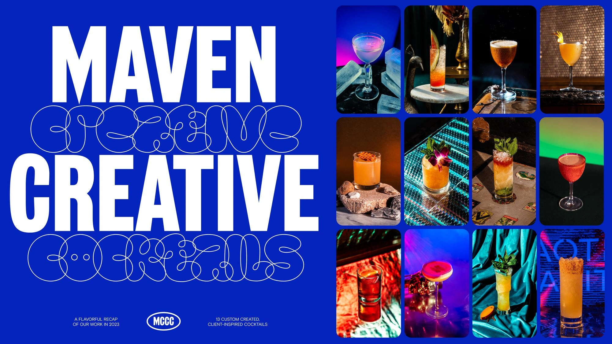At Maven, I concepted and led the creation of our 2023 cocktail book, celebrating the partnerships we built throughout the year. Each client was paired with a custom cocktail crafted to reflect their brand’s personality, alongside a curated showcase of the work we created together. I handled all photography and design for the project, producing 13 photoshoots across two locations in just one month and moving the book from idea to print. It was a crafted, personal thank-you to the clients who trust us to build meaningful work together.