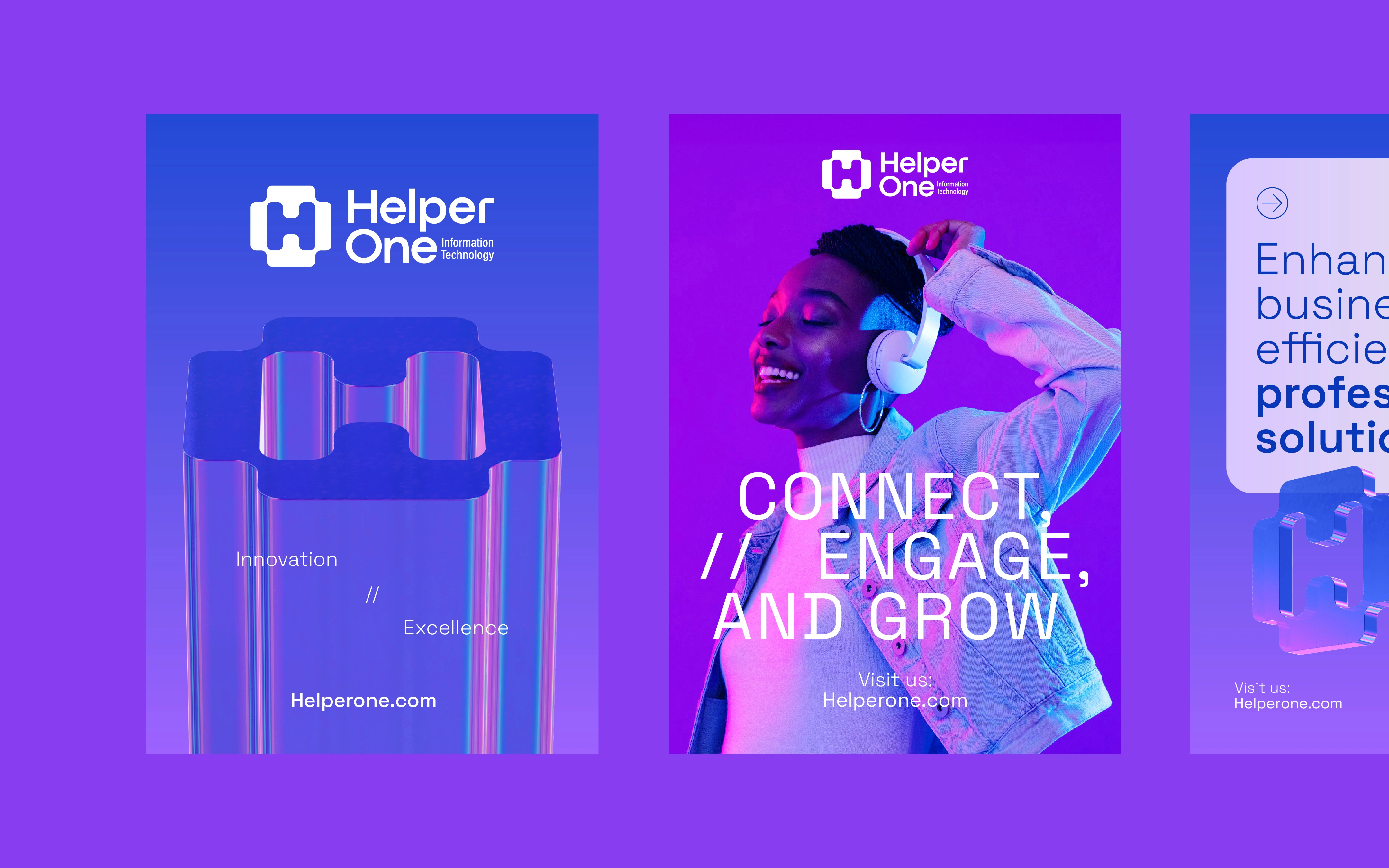 Helper One – Branding & 3D Art DirectionHelper One is a futuristic IT solutions, software development, and digital marketing brand that required a bold and inn…