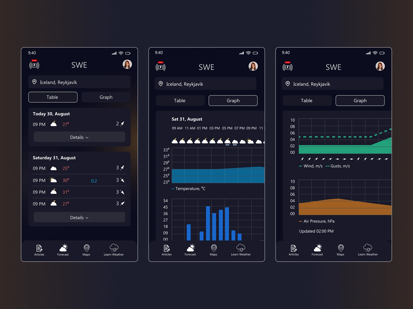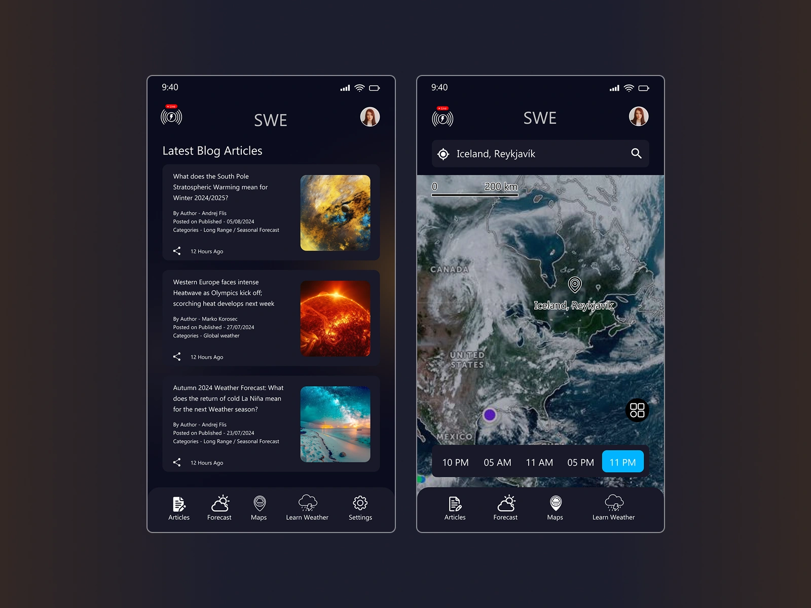 Crafted a modern, responsive UI/UX for the SWE App, delivering real-time alerts and forecasts with a clear, user-friendly design for quick weather updates.