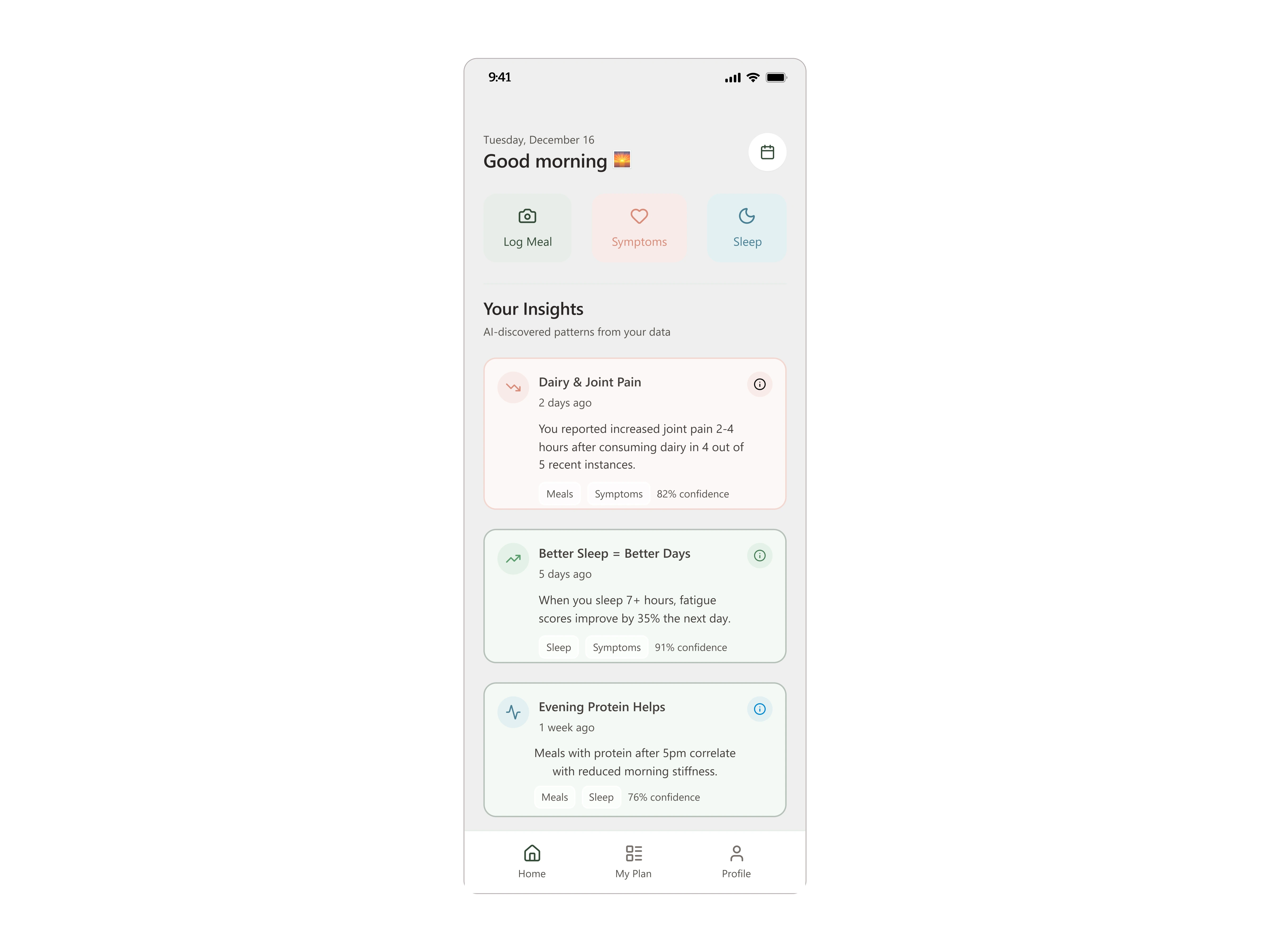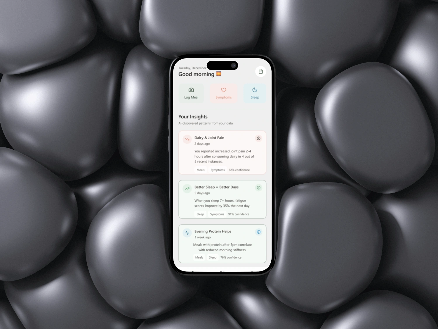 Hi Honey is a mobile-first wellness companion designed for people living with Sjögren’s syndrome, a chronic autoimmune condition affecting millions globally. The app helps users log meals, track symptoms, understand AI-generated health patterns, and share meaningful insights with their care team — all through a calm, supportive, non-clinical experience.