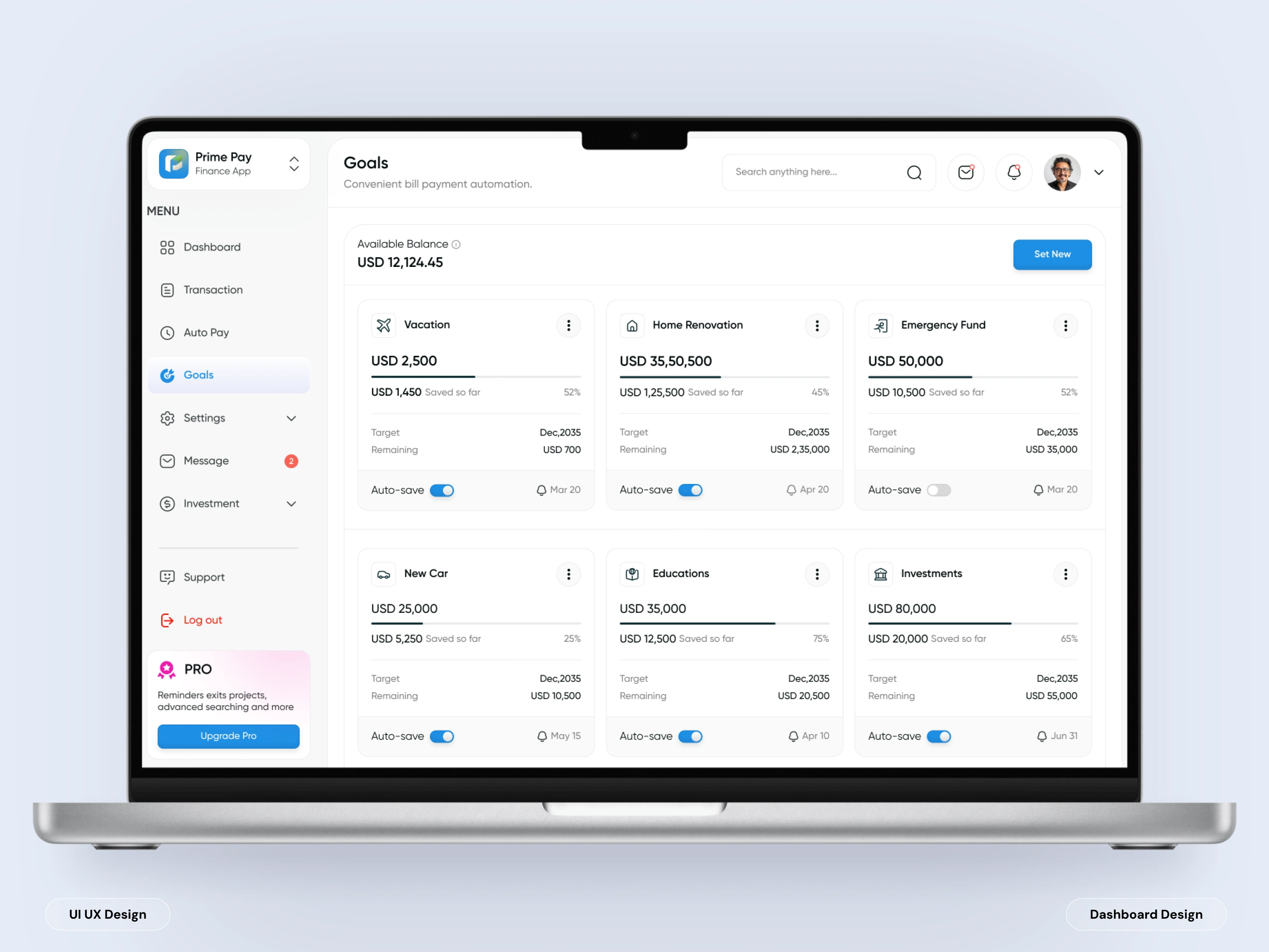 Designed for simplicity and focus, the Goal Page empowers users to define, track, and reach their financial targets—whether it's saving for a big purchase, reducing debt, or building an emergency fund. With a clean, intuitive layout, users can monitor progress in real time, stay motivated, and make smarter financial decisions every step of the way.