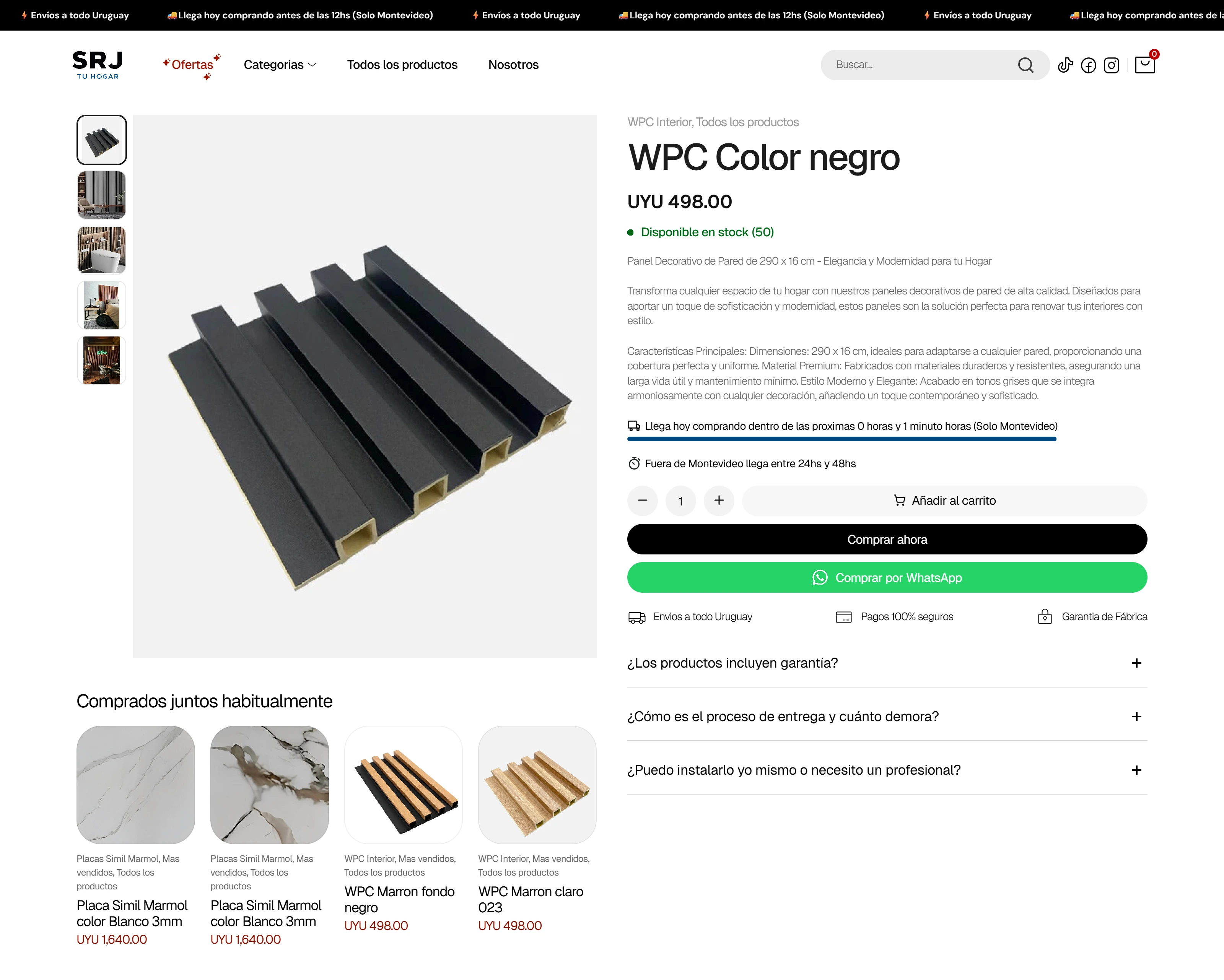 SRJ Tu Hogar is an e-commerce brand focused on high-quality home renovation materials such as WPC panels, SPC flooring, and marble-look surfaces that don’t require construction.