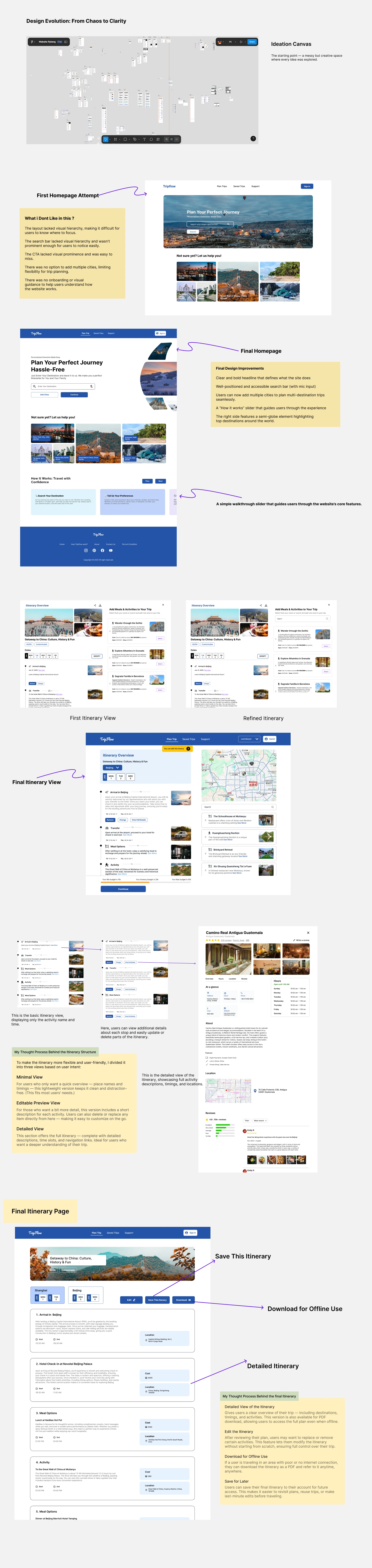 Travel itinerary platform made trip planning easier and more user-friendly. solved problems in planning steps, poor offline access, and sharing features.