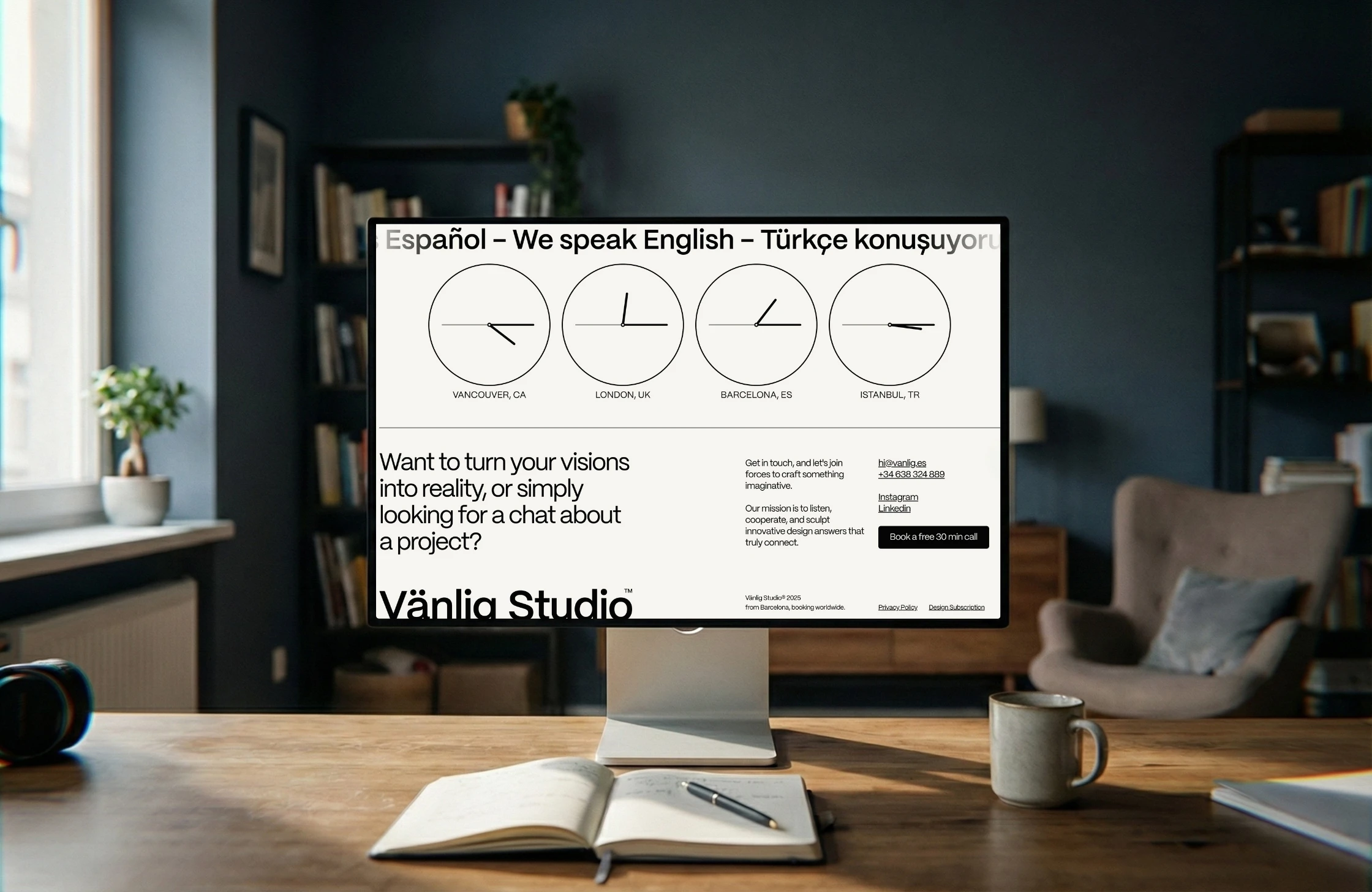 Vänlig Studio is a Barcelona-based, remote-first branding and digital product studio working with clients worldwide. They approached me to design and develop a website that reflects their core philosophy: elevating brands with simplicity and originality.
