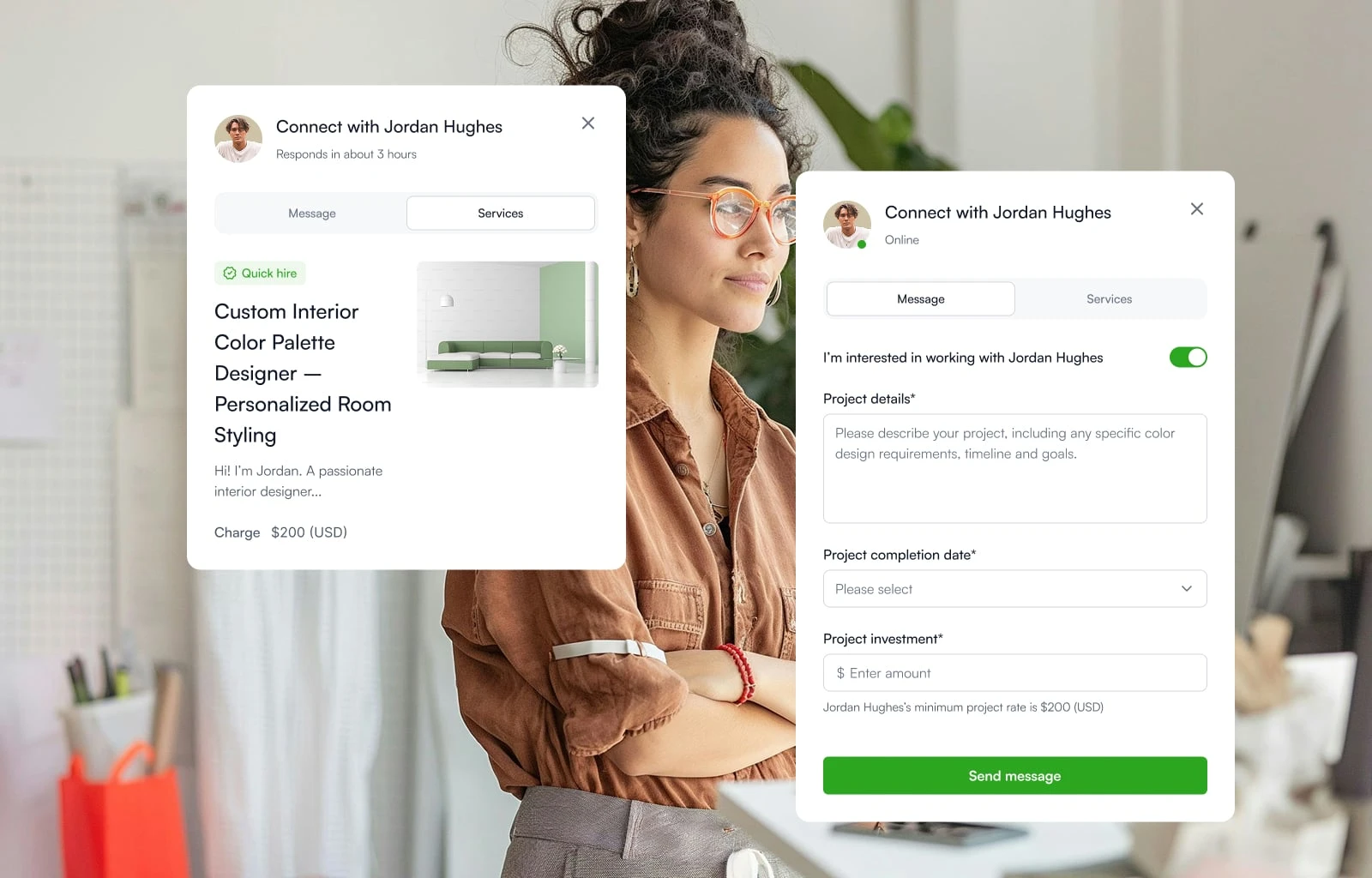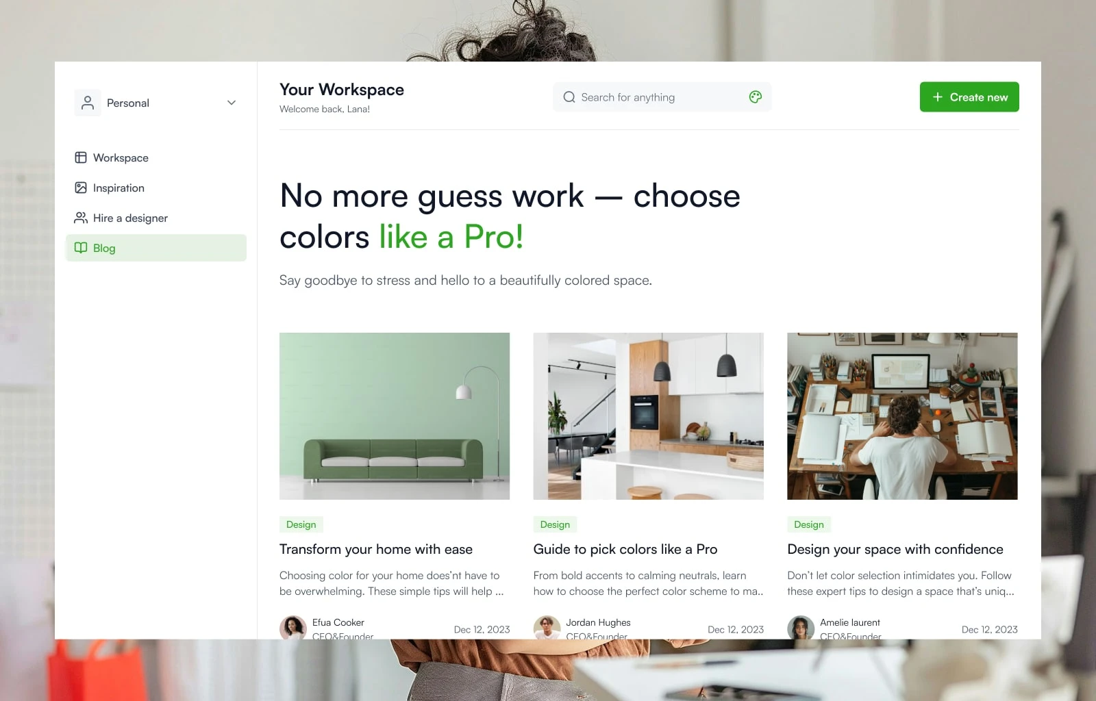 I designed a user-friendly platform that allows users to upload photos of their rooms and experiment with different color palettes in real time—eliminating guesswork and helping them visualize their dream space. In addition to the color tool, the site features an option to hire experienced home decorators for personalized design help.