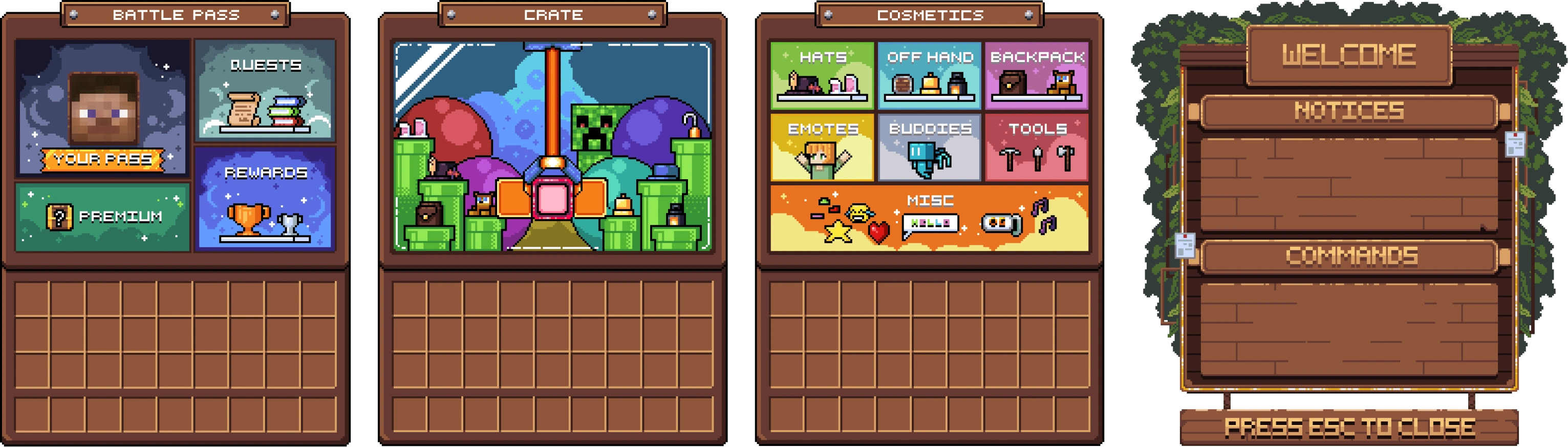 In "Summit Realms," I contributed to the design of the graphical user interface (GUI) elements to enhance the user experience. This involved creating intuitive and visually appealing interfaces for menus, inventory systems, and interactive elements within the game. The design focused on ensuring clarity, accessibility, and ease of navigation, allowing players to interact with the game seamlessly. The GUI elements were crafted to align with the pixel art style of the game, maintaining a cohesive visual theme while providing an immersive and functional user interface.