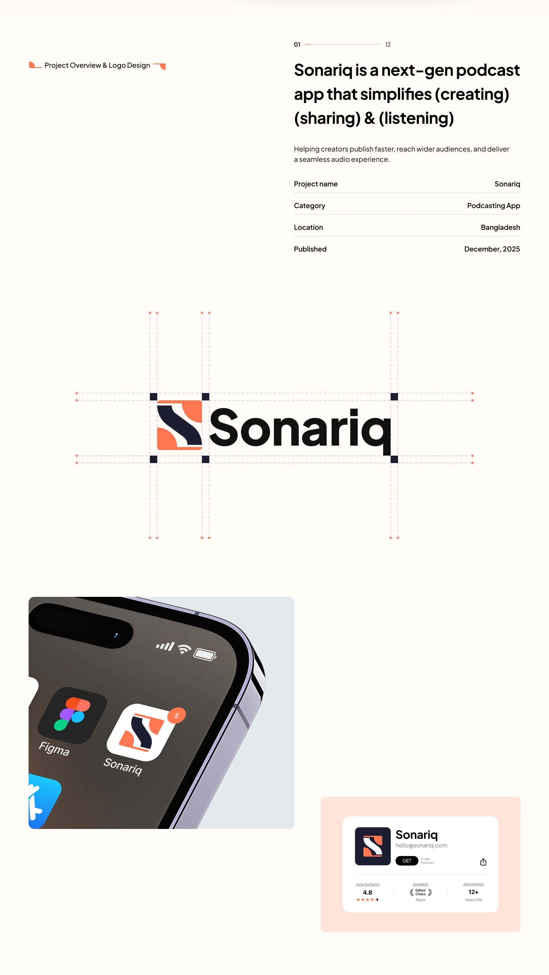 Sonariq focuses on removing friction from both sides: listeners discover faster, and creators publish with fewer steps. The result is a calm, modern experience built to scale across mobile + branding.